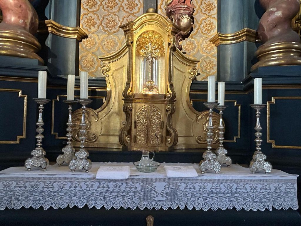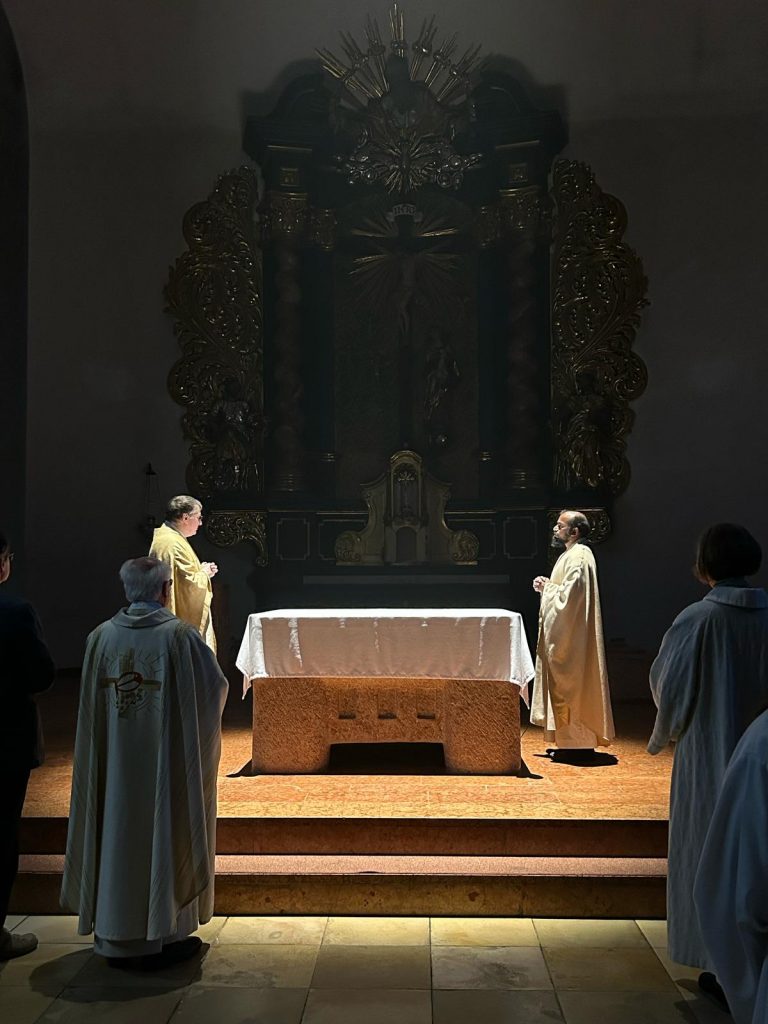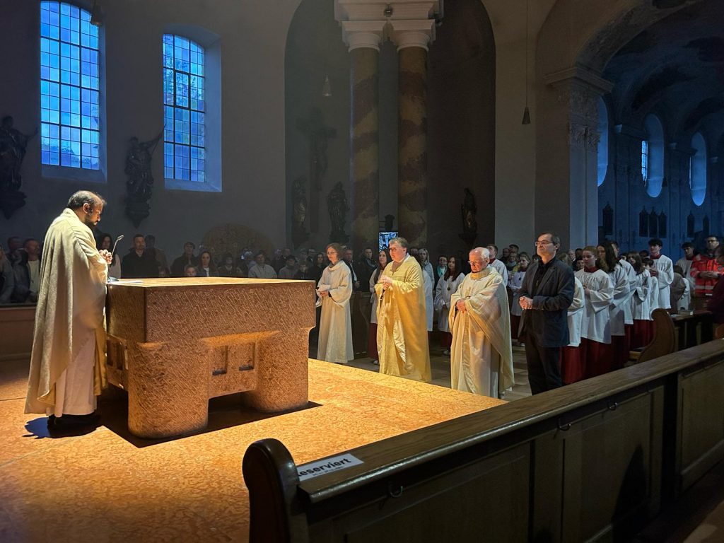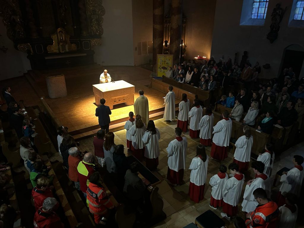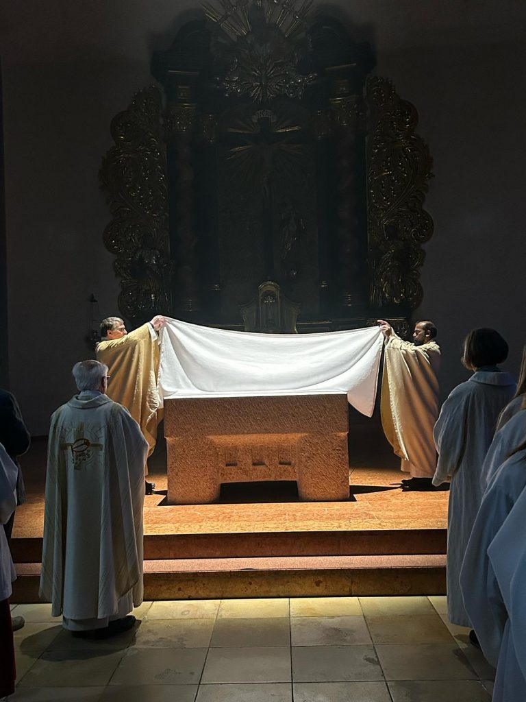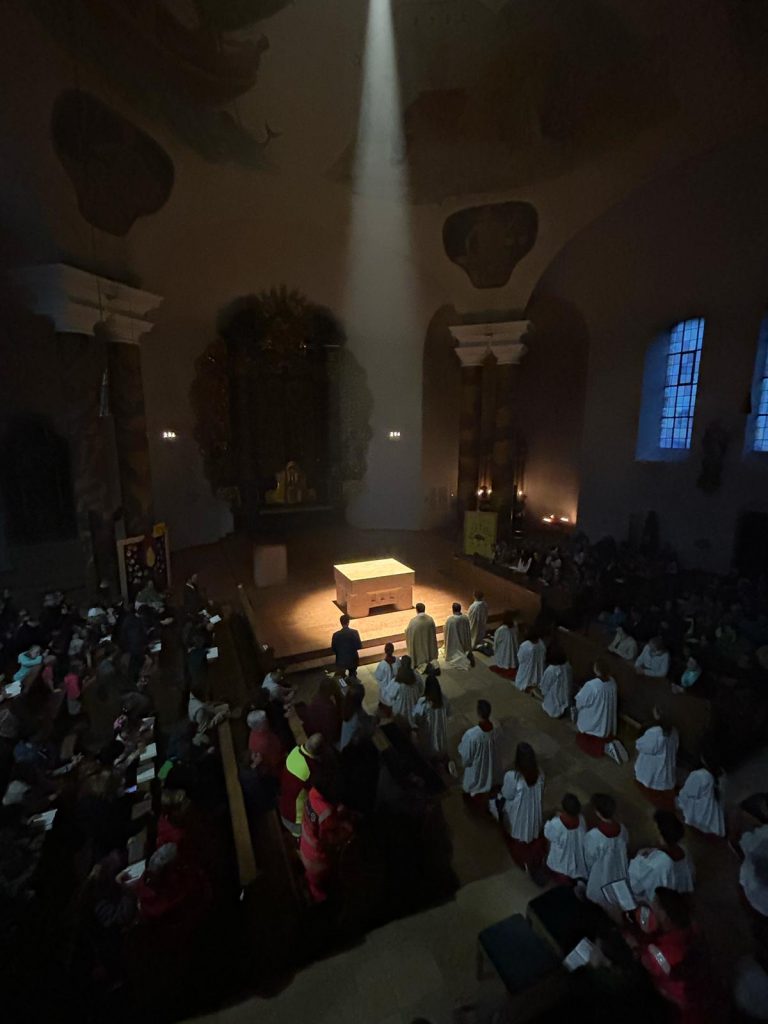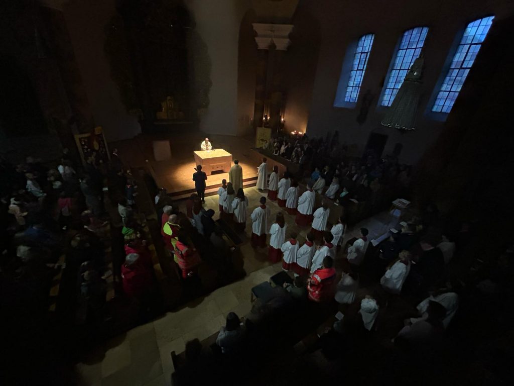 Am Ende des Gottesdienstes verdunkelte sich die Kirche, als das Allerheiligste auf einem Seitenaltar überführt wurde. Der Altarraum wurde leergeräumt, der Altar entblößt