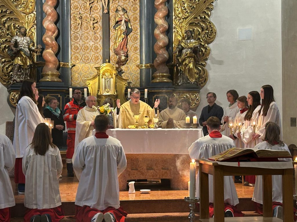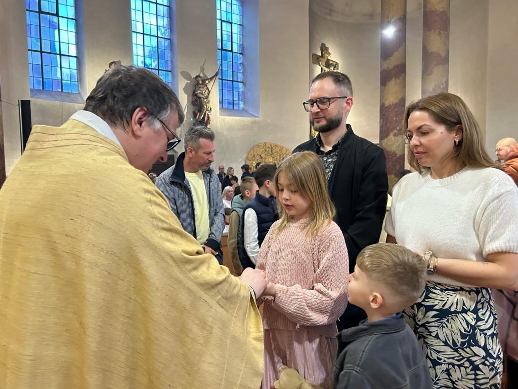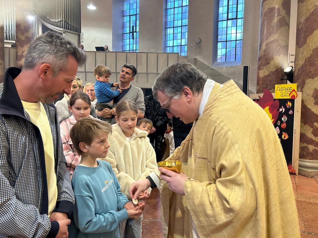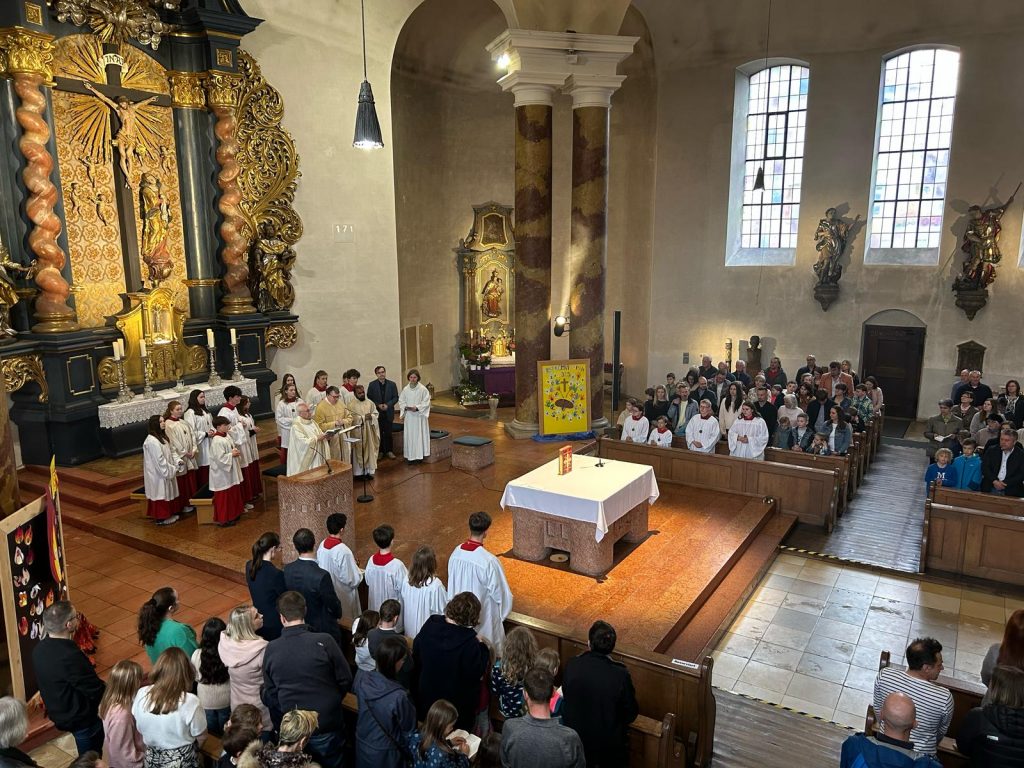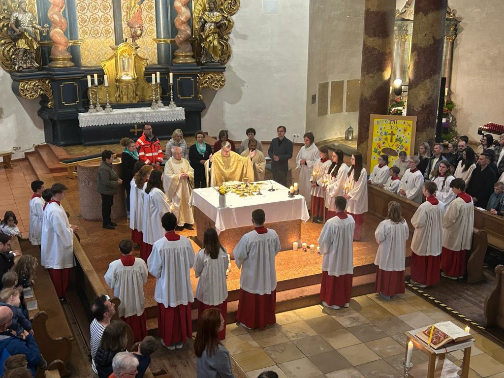 In der zweiten Lesung konnte man hören, wie Paulus berichtet, dass Jesus am Abend von seinem Leiden Brot und Wein in seine Hände genommen hat und diese Zeichen auf seinen Leib und sein Blut bezogen hat. Katholische Christen halten seitdem an diesem Herrenmahl fest, nennen es Eucharistiefeier und definieren es als „Quelle und Höhepunkt“ allen christlichen Lebens und Glaubens. Entsprechend feierlich wurde die Eucharistie in der Vituskirche zu Burglengenfeld gefeiert. Eingeladen waren vor allem die Kommunionkinder, die erstmals mit ihren Familien den „Leib Christi“ empfangen konnten.