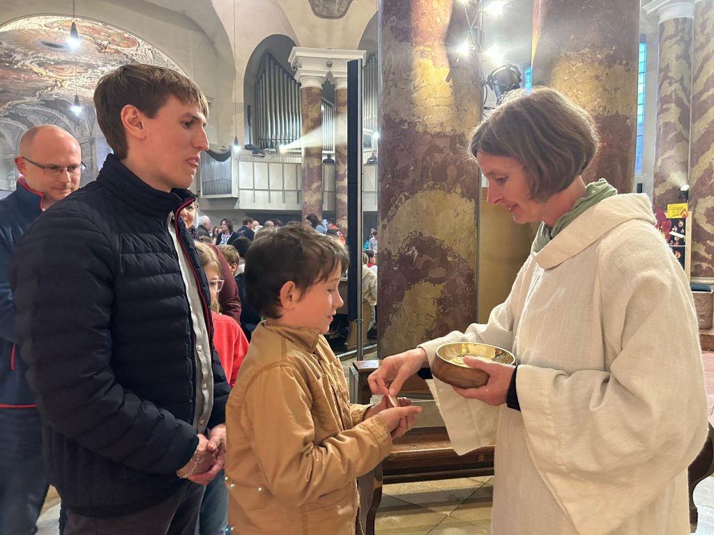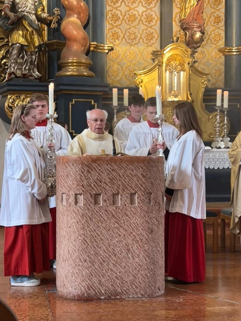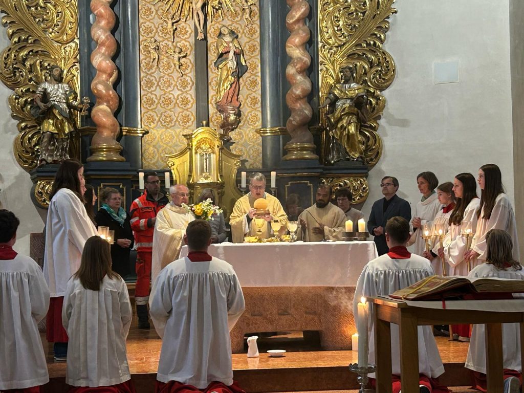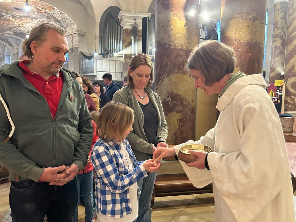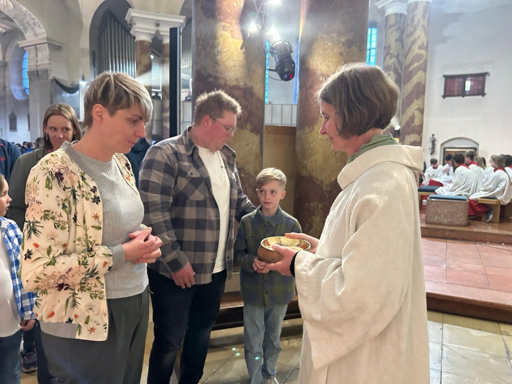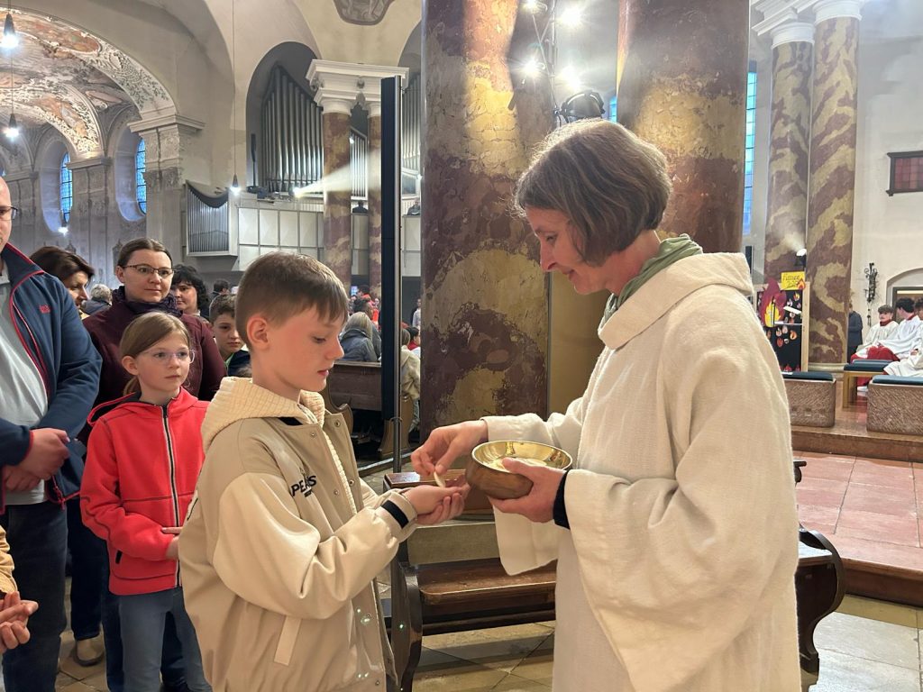 In der zweiten Lesung konnte man hören, wie Paulus berichtet, dass Jesus am Abend von seinem Leiden Brot und Wein in seine Hände genommen hat und diese Zeichen auf seinen Leib und sein Blut bezogen hat. Katholische Christen halten seitdem an diesem Herrenmahl fest, nennen es Eucharistiefeier und definieren es als „Quelle und Höhepunkt“ allen christlichen Lebens und Glaubens. Entsprechend feierlich wurde die Eucharistie in der Vituskirche zu Burglengenfeld gefeiert. Eingeladen waren vor allem die Kommunionkinder, die erstmals mit ihren Familien den „Leib Christi“ empfangen konnten.