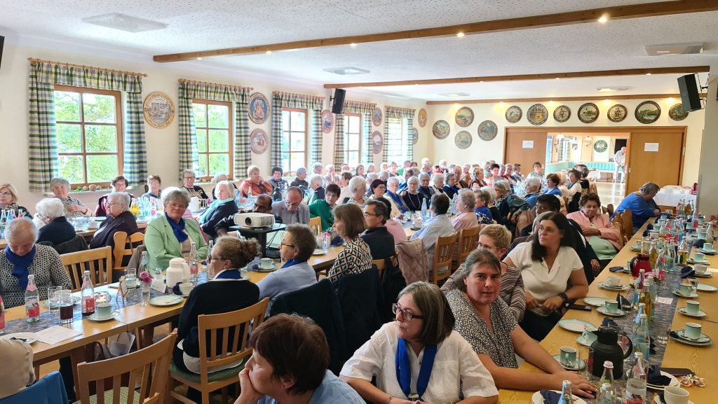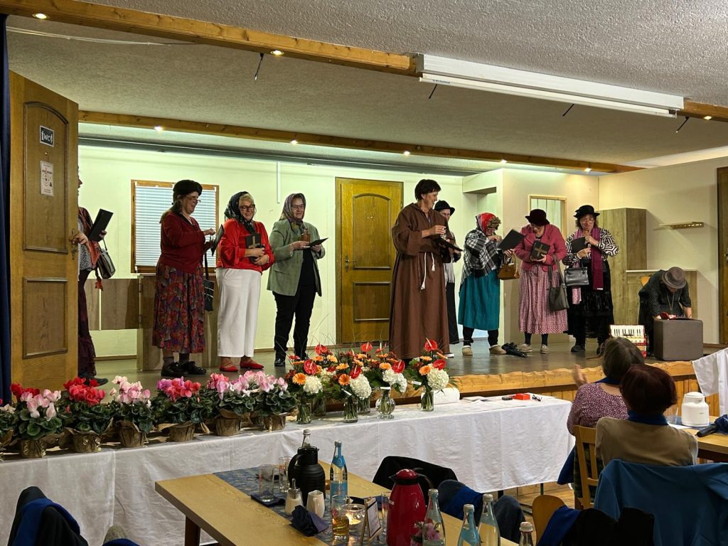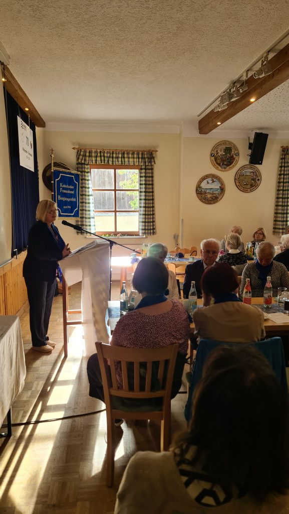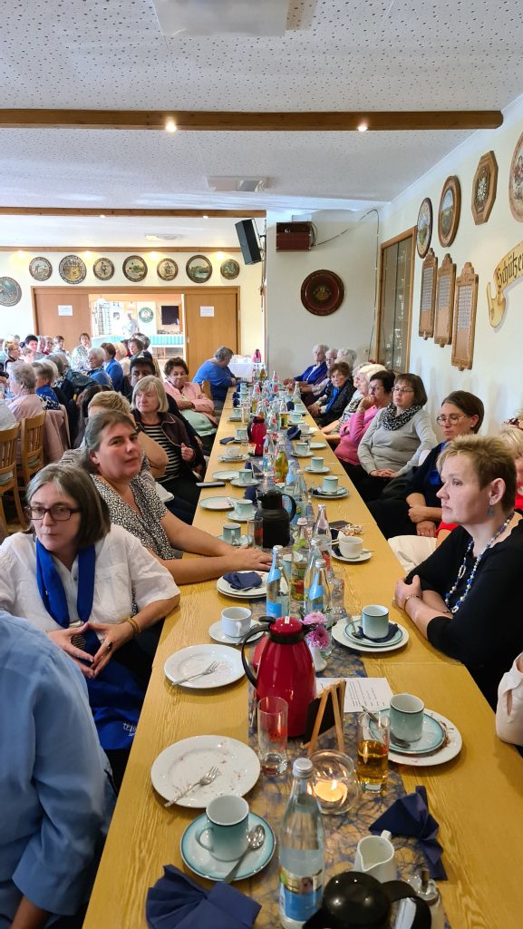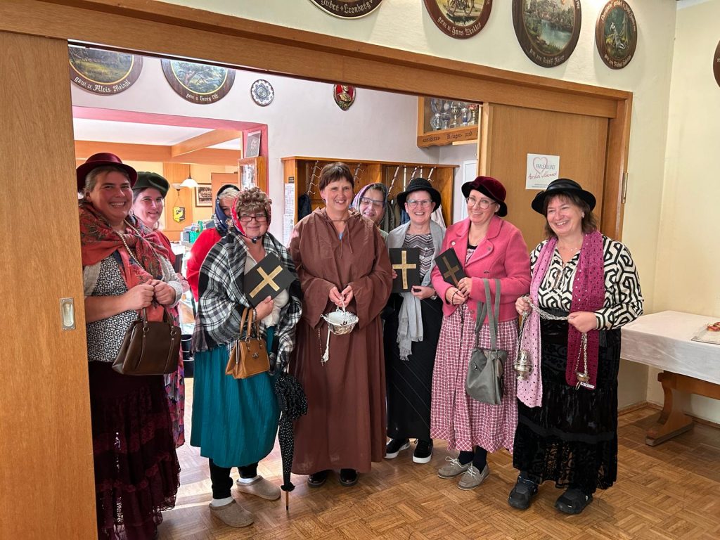 Anschließend wurde im Schützenheim bei Kaffee und Kuchen weitergefeiert sowie einer Bildershow der letzten 70 Jahre gezeigt. Nach den Grußworten von Pfarrer Michael Hirmer, Diözesanvorsitzender Martha Bauer und Bezirksvorsitzender Theresia Praller folgte ein Sketch der jungen Frauen 30+, der für besondere Lacher sorgte. Die Ehrungen langjähriger Mitglieder übernahmen die Diözesanvorsitzende Martha Bauer und Pfarrer Michael Hirmer. Eine besondere Ehrung für 70 Jahre Mitgliedschaft erhielt Franziska Schmid und für 60 Jahre Mitgliedschaft Rosalie Schwanzl. Theresia Nowak und Karin Birzer wurden zu Ehrenmitgliedern ernannt.