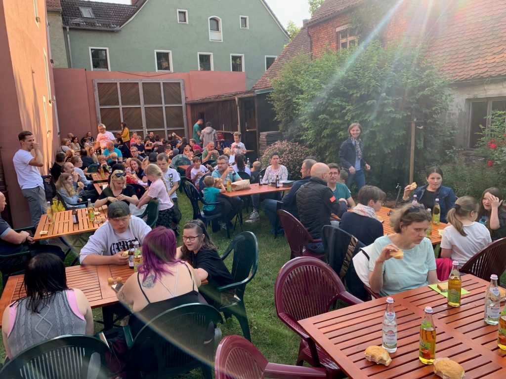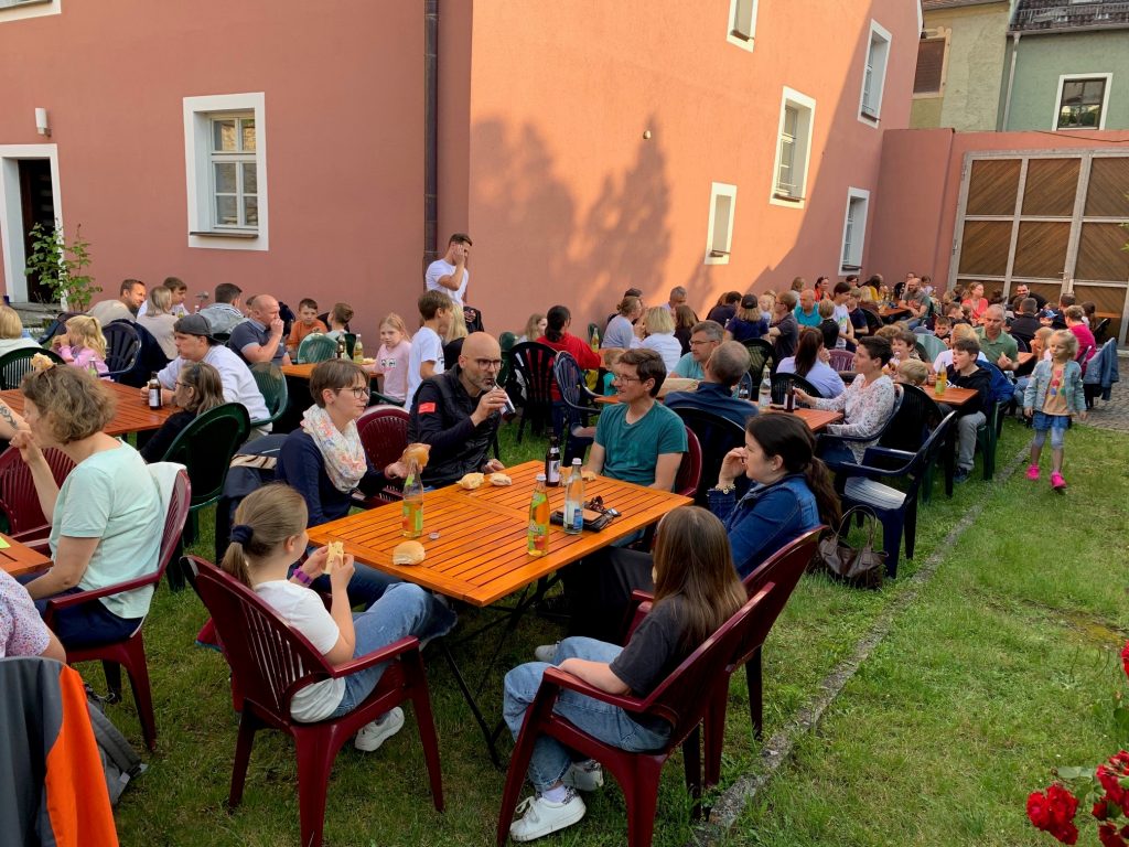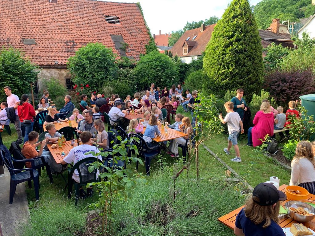 Der Garten des Pfarrhauses von St. Vitus war gut gefüllt: die Familien feierten den Abschluss des Kommunionweges mit einer gemeinsamen Heilige Messe in der Kirche und dem anschließenden Fest. Die mitgebrachten Speisen sowie Leberkäs- und Käsesemmeln schmeckten allen. Mit interessanten Gesprächen, Begegnungen und der Fröhlichkeit der Kinder verlief der kurzweilige, entspannte Abend.