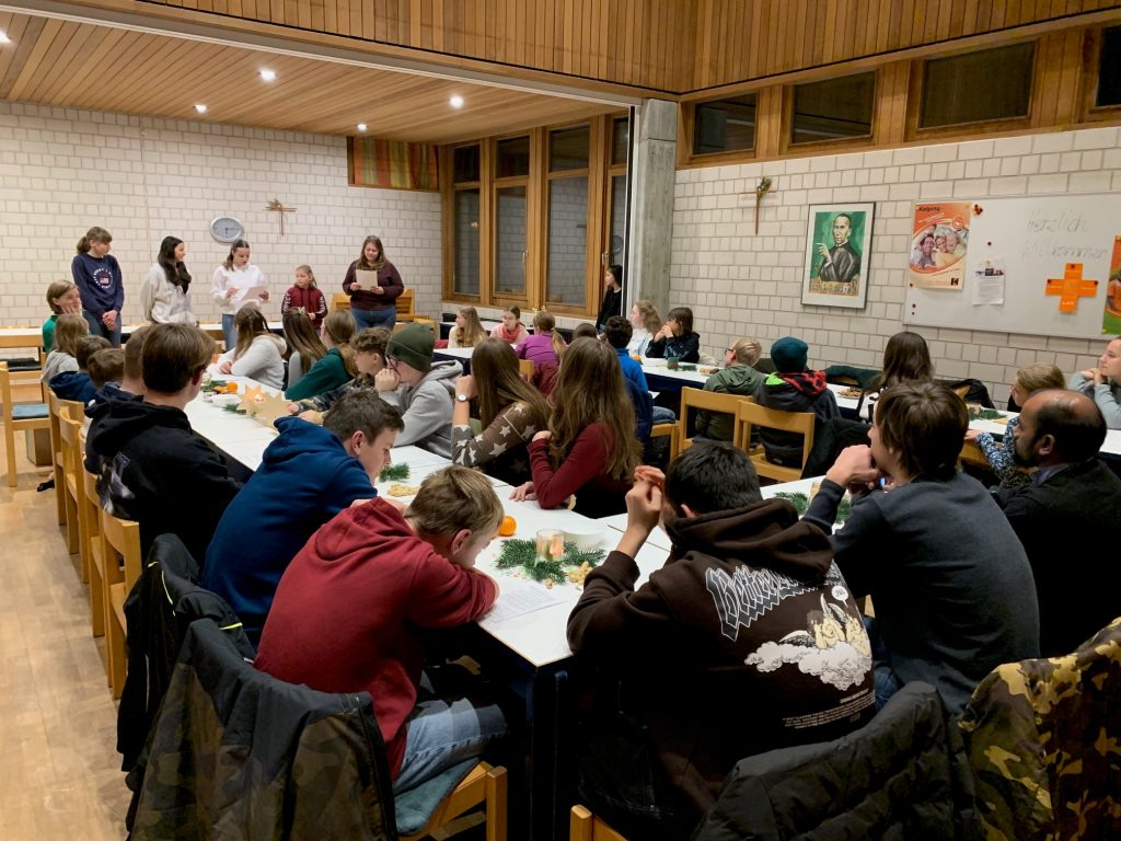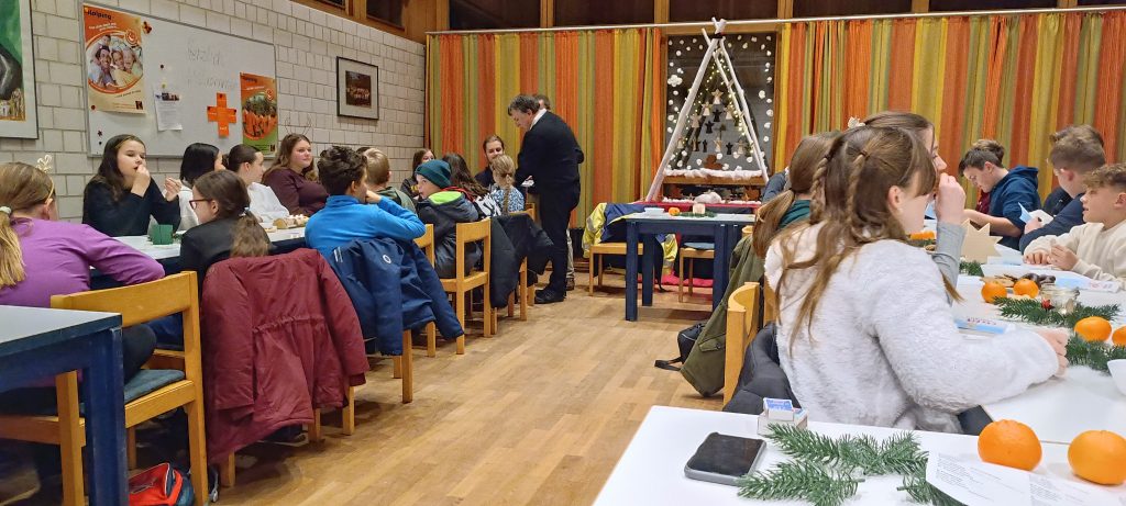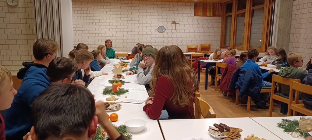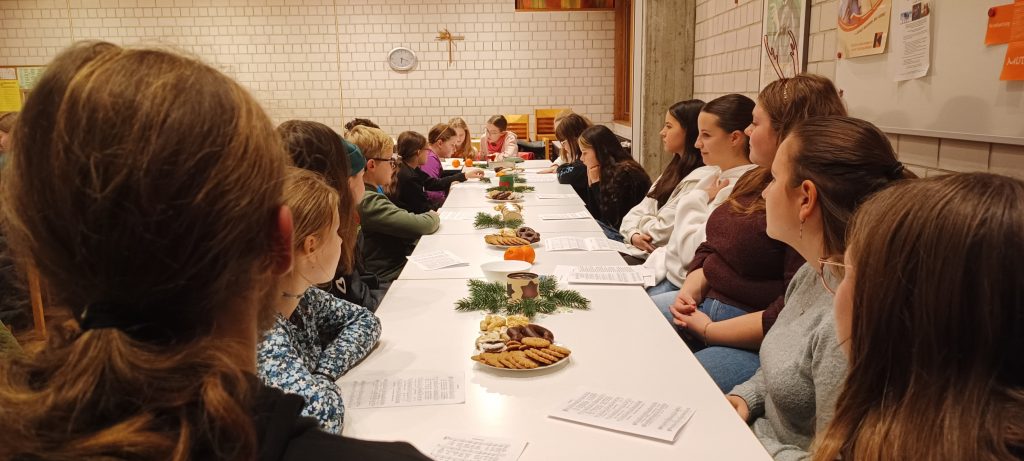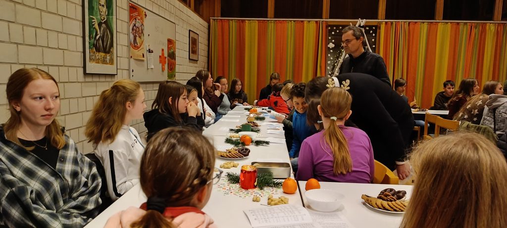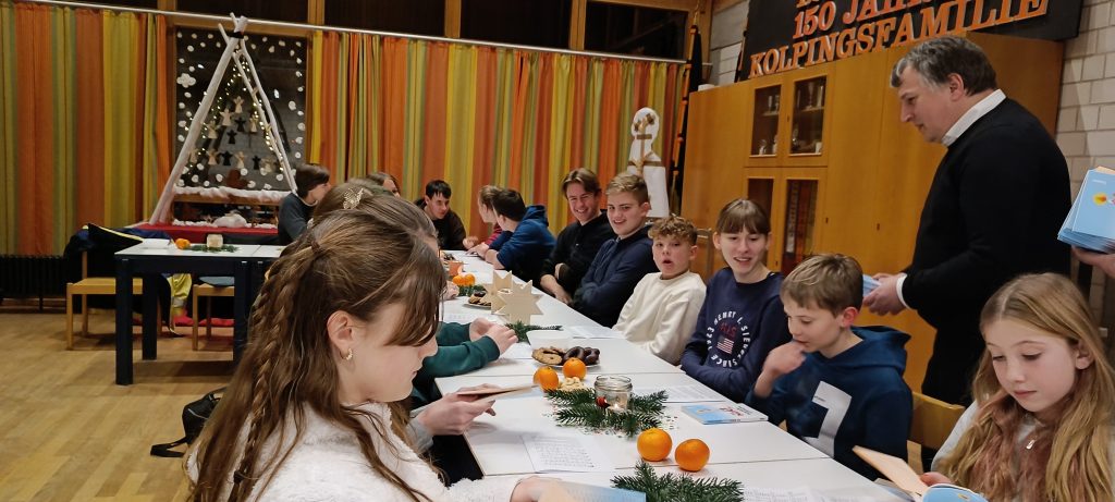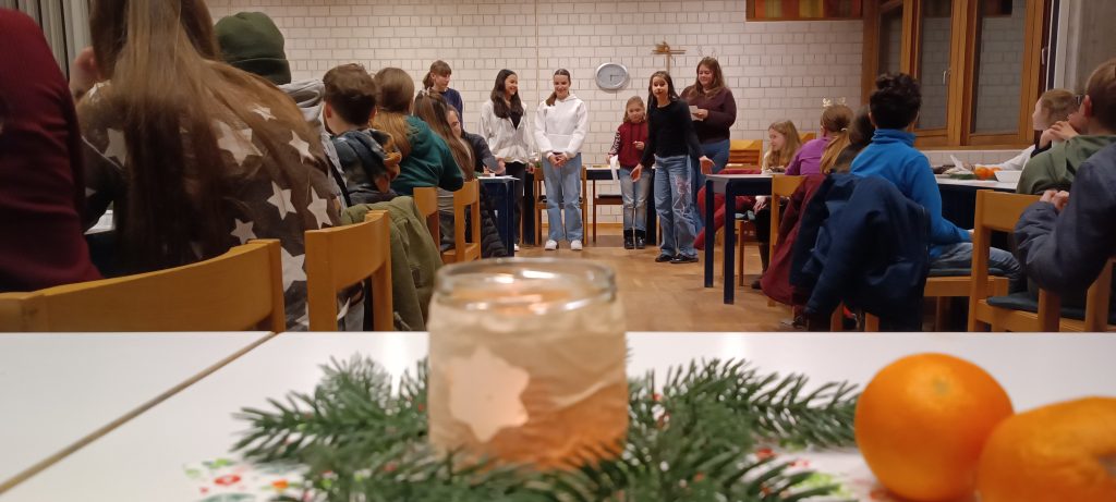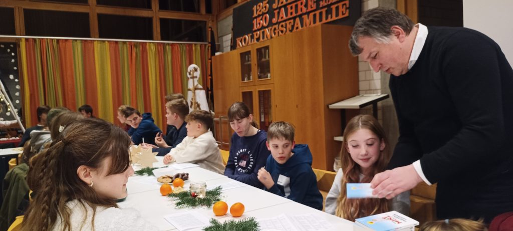Kurz vor dem Weihnachtsfest trafen sich die Ministrantinnen und Ministranten der Stadtkirche Burglengenfeld zu einer Adventsfeier im Pastoralzentrum. Dabei wurden besinnliche Texte vorgetragen und Lieder gesungen. Mit dabei waren auch Kaplan Babu und Pastoralreferent Konrad Kraus, die für die Ministranten-Pastoral verantwortlich sind, sowie Gemeindereferentin Bernadette Billder und Dekan Michael Hirmer. Dieser bedanke sich bei seinen „Minis“, freut sich auf die kommende Romwallfahrt und überreiche ein Ministranten-Lexikon als Weihnachtsgeschenk.