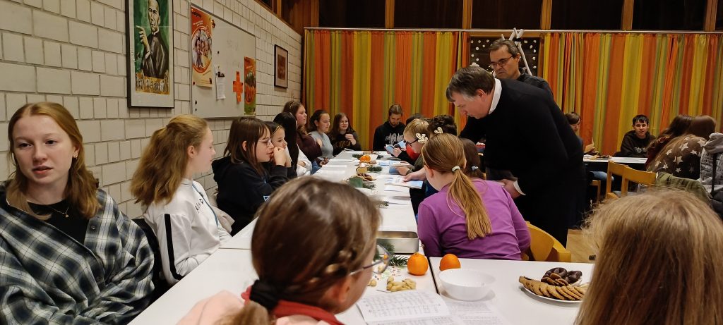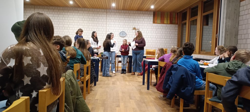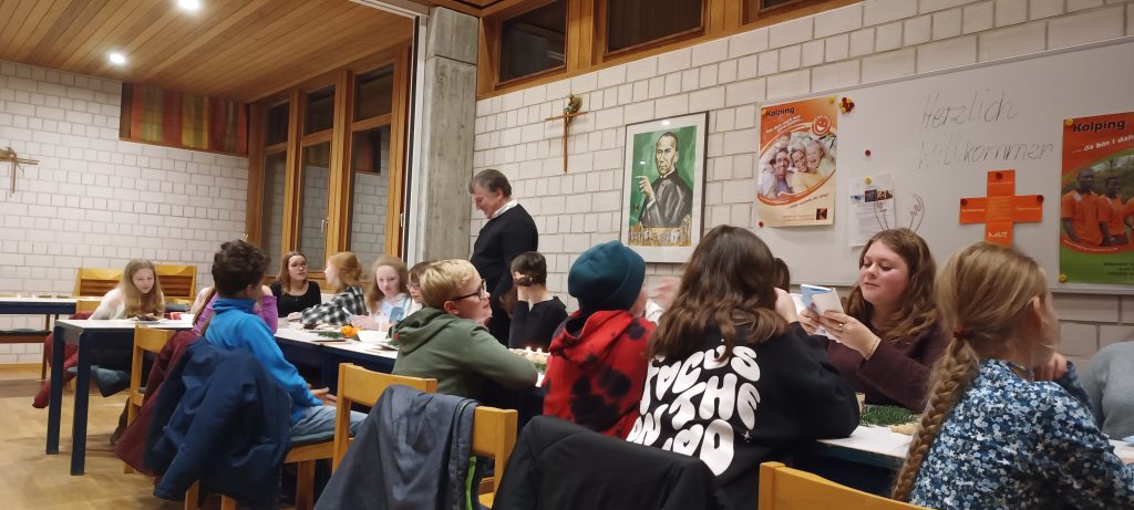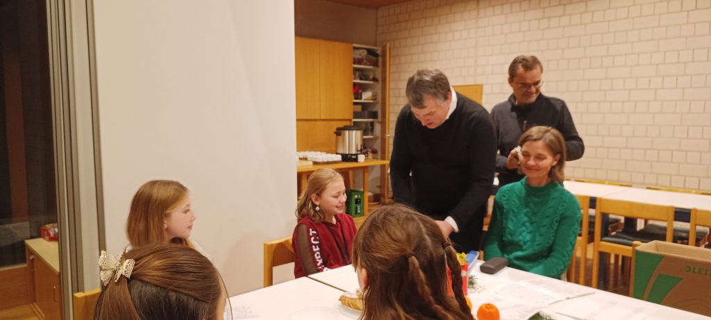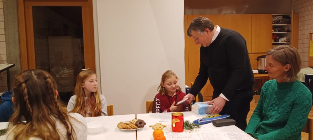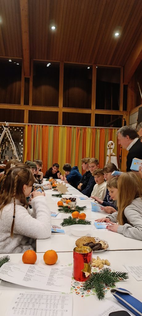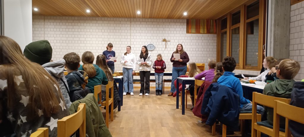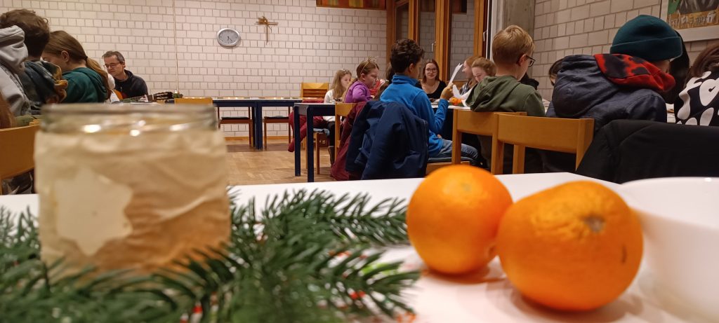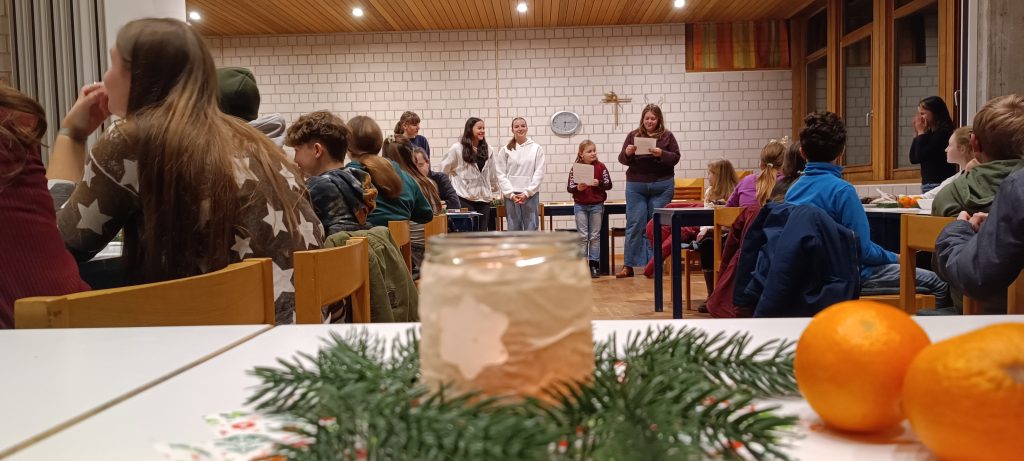 Kurz vor dem Weihnachtsfest trafen sich die Ministrantinnen und Ministranten der Stadtkirche Burglengenfeld zu einer Adventsfeier im Pastoralzentrum. Dabei wurden besinnliche Texte vorgetragen und Lieder gesungen. Mit dabei waren auch Kaplan Babu und Pastoralreferent Konrad Kraus, die für die Ministranten-Pastoral verantwortlich sind, sowie Gemeindereferentin Bernadette Billder und Dekan Michael Hirmer. Dieser bedanke sich bei seinen „Minis“, freut sich auf die kommende Romwallfahrt und überreiche ein Ministranten-Lexikon als Weihnachtsgeschenk.
