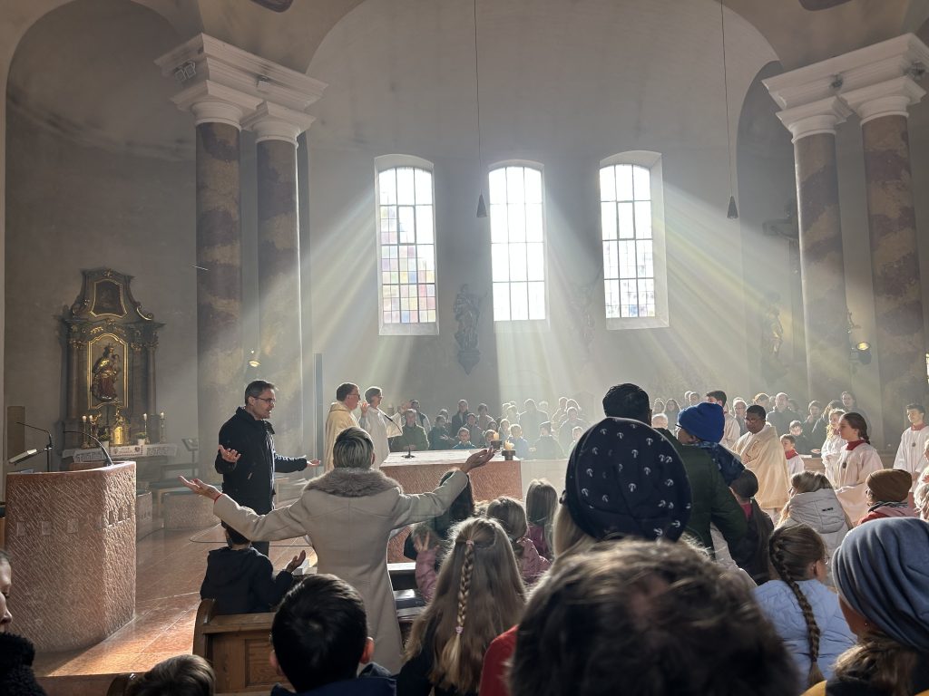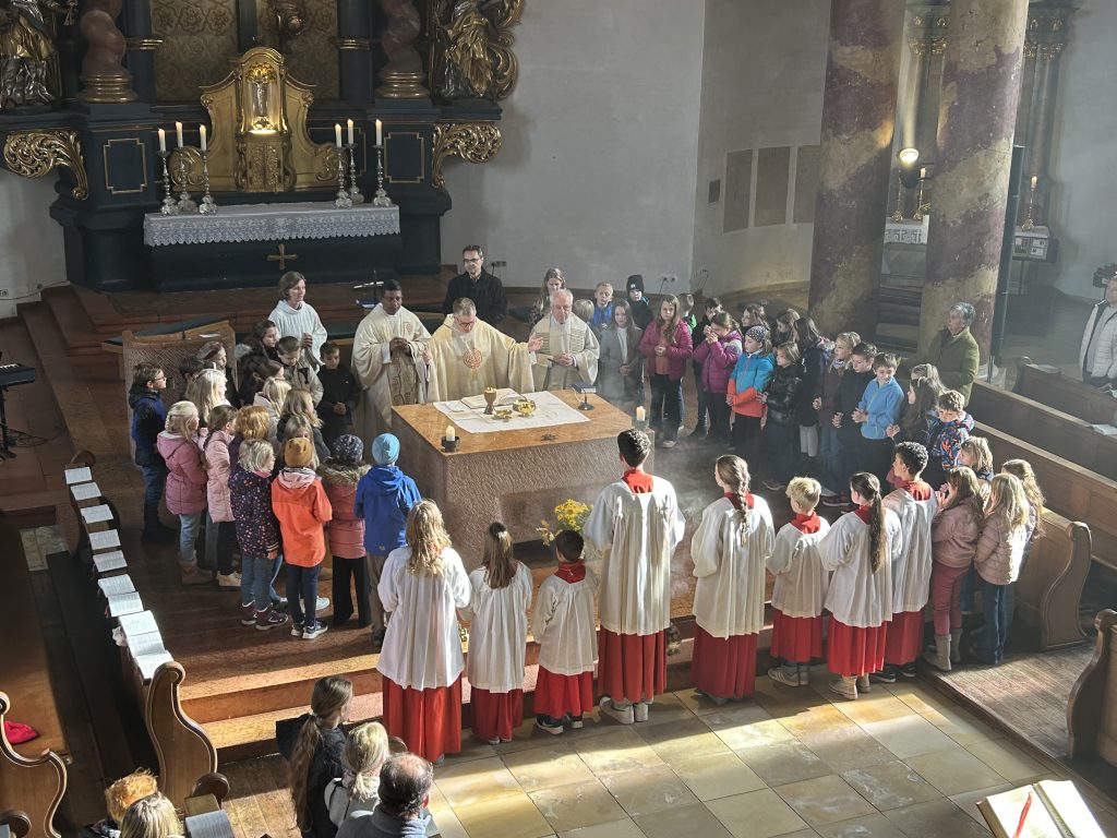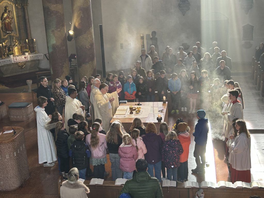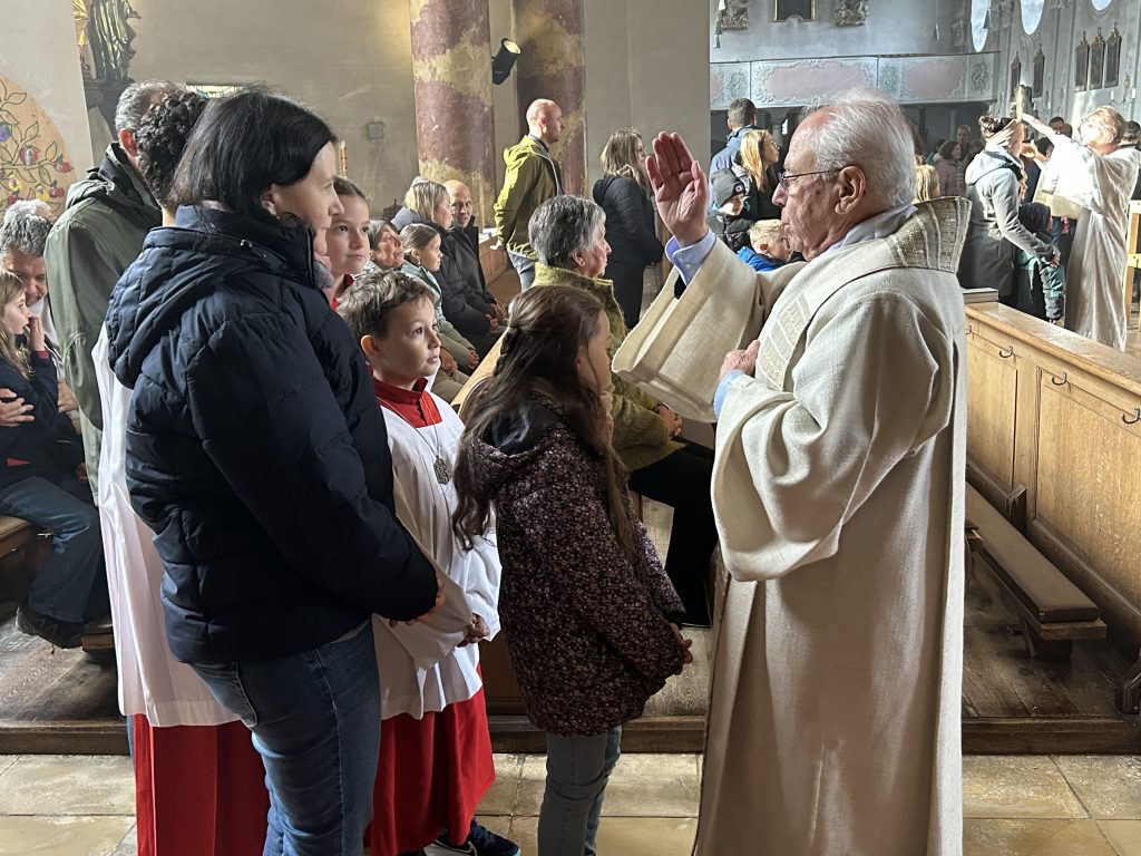 Mit einem Gottesdienst am Kirchweihsonntag begann der Vorbereitungsweg der Kommunionkinder, die sich in den kommenden Monaten auf den Empfang der Sakramente der Versöhnung und Eucharistie vorbereiten. „Die Tür des Hauses Gottes ist immer offen für dich, mach du deine Herzenstür auf für Jesus“ erläuterete Gemeindereferentin Bernadette Biller. Anschließend wurden die Familien einzeln gesegnet.