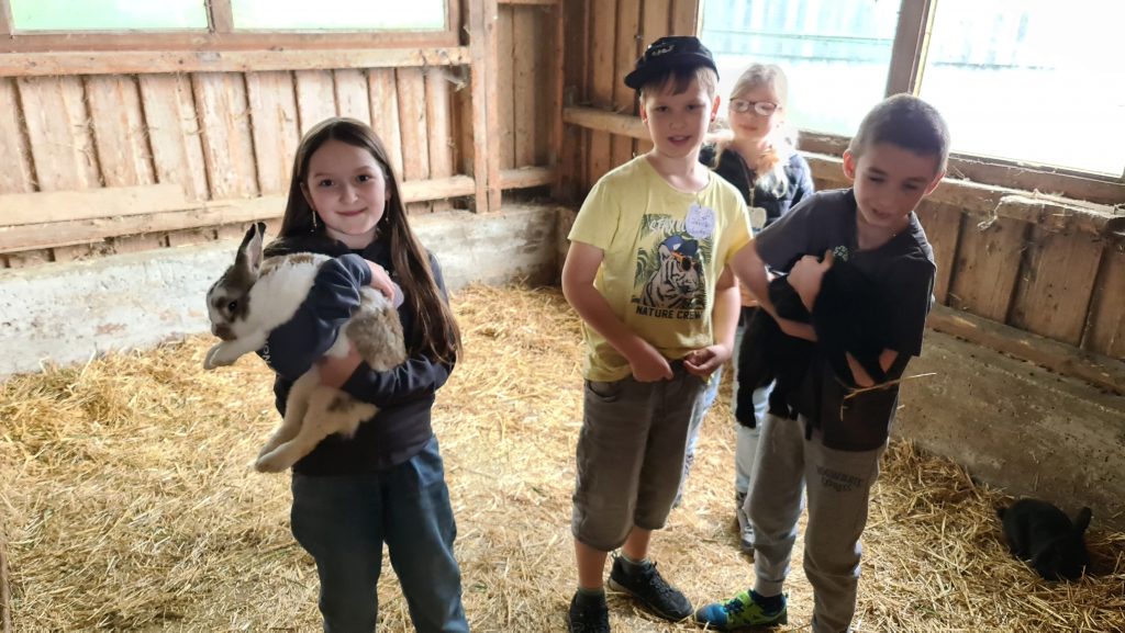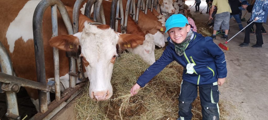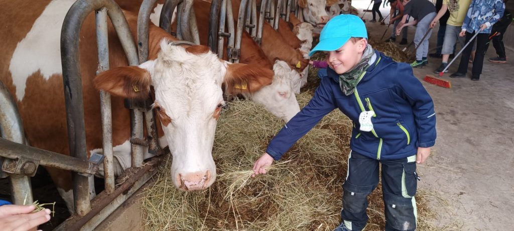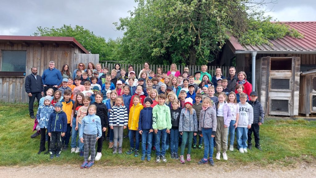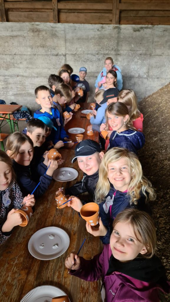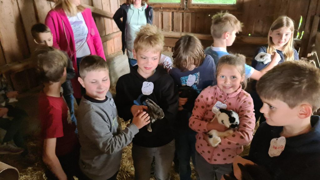 Die Kommunionkinder besuchten den Erlebnisbauernhof in Bergmatting.