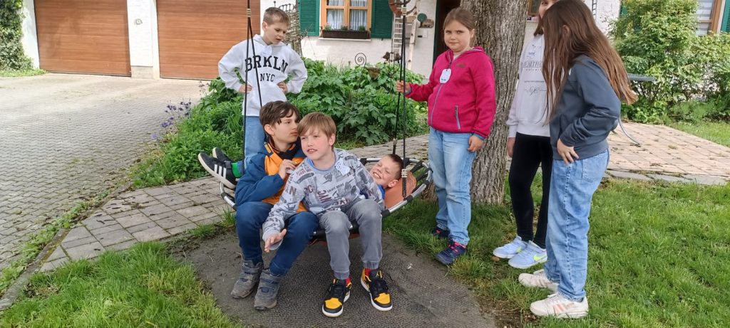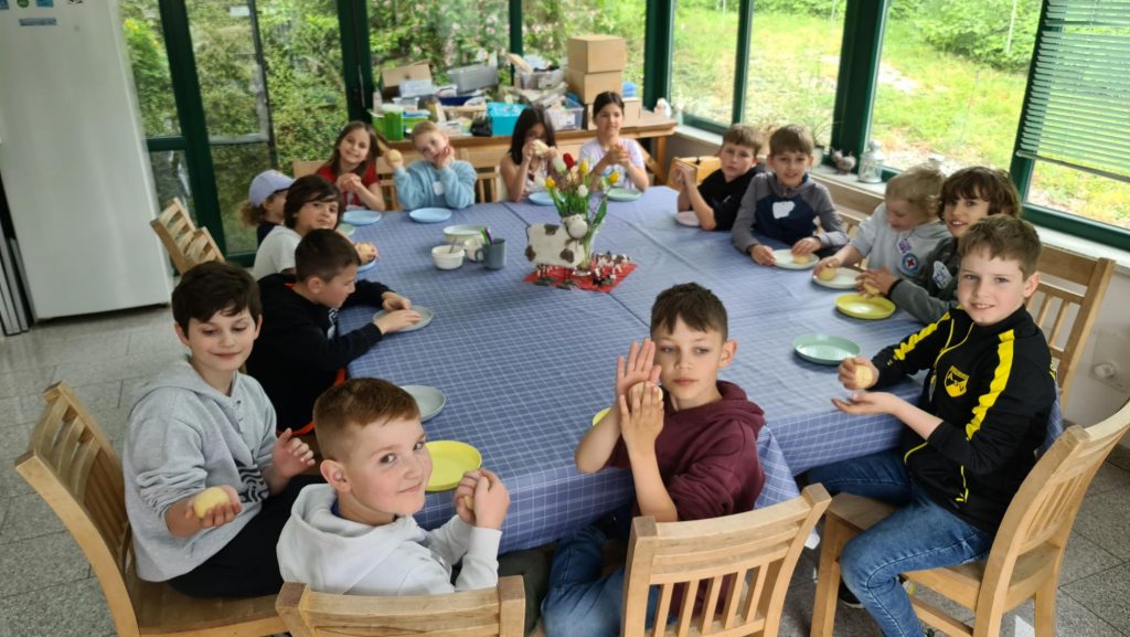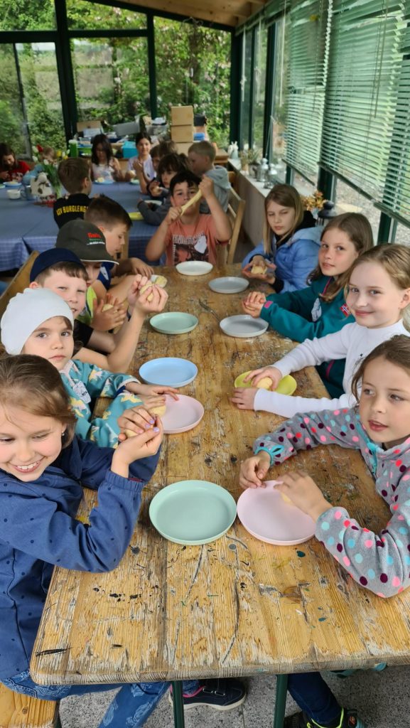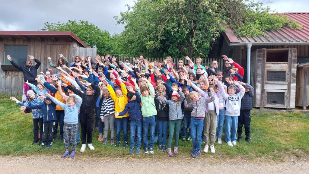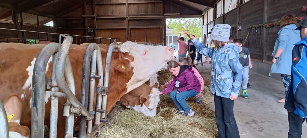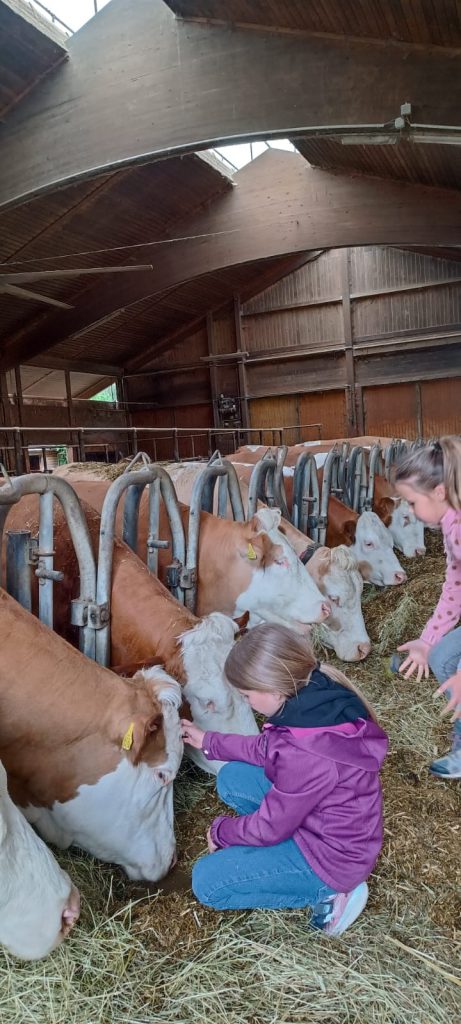Die Kommunionkinder besuchten den Erlebnisbauernhof in Bergmatting.