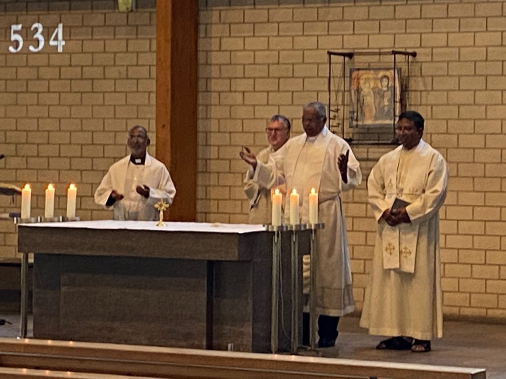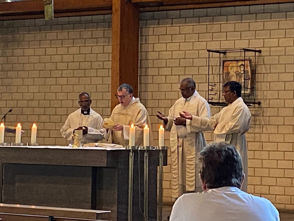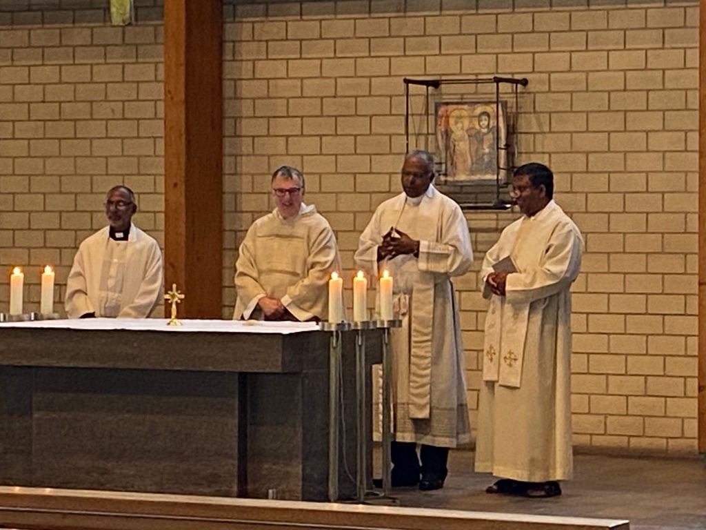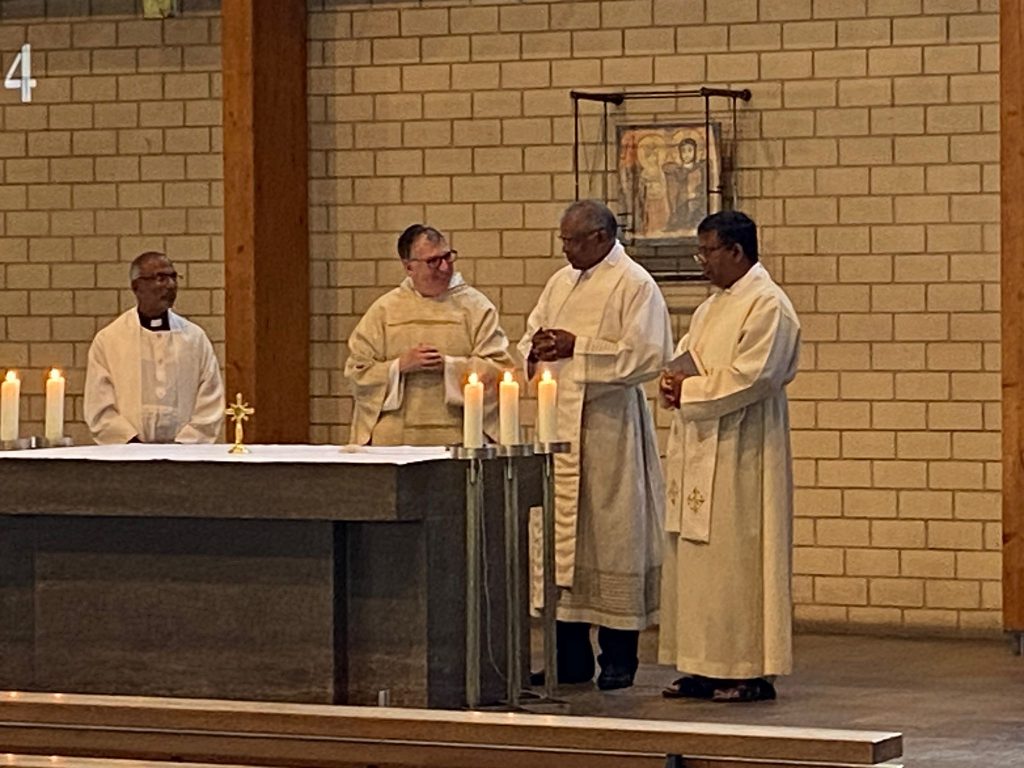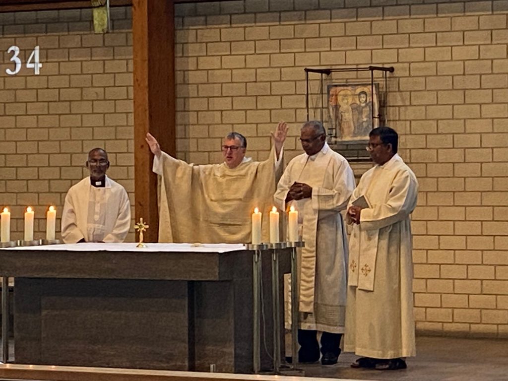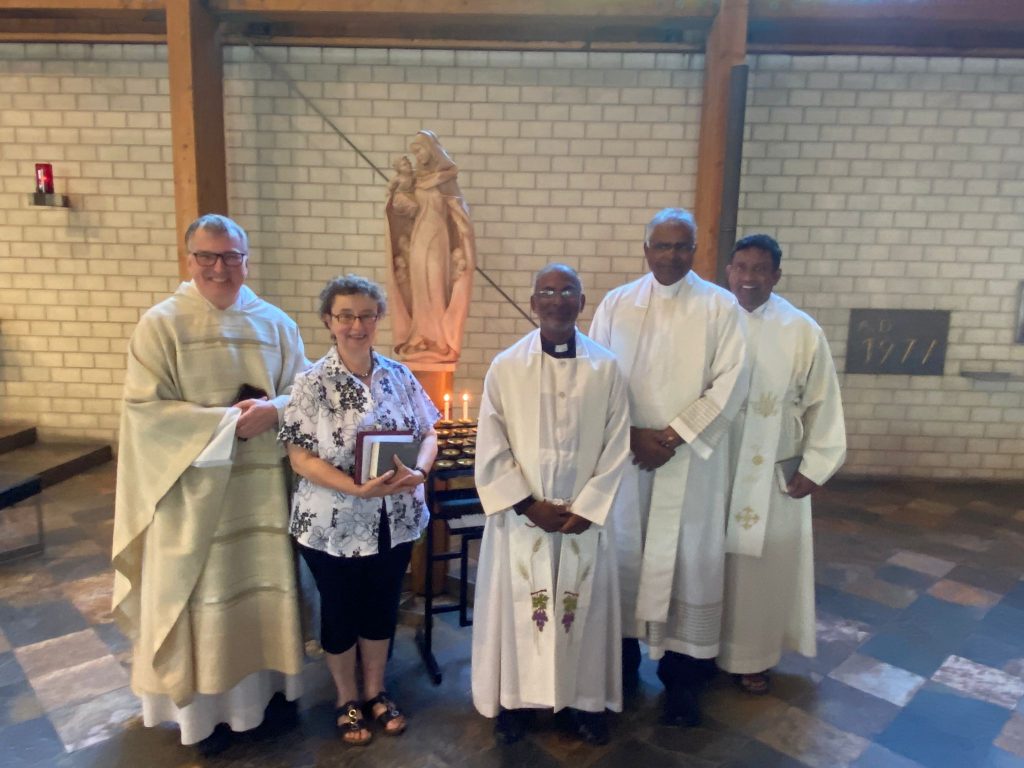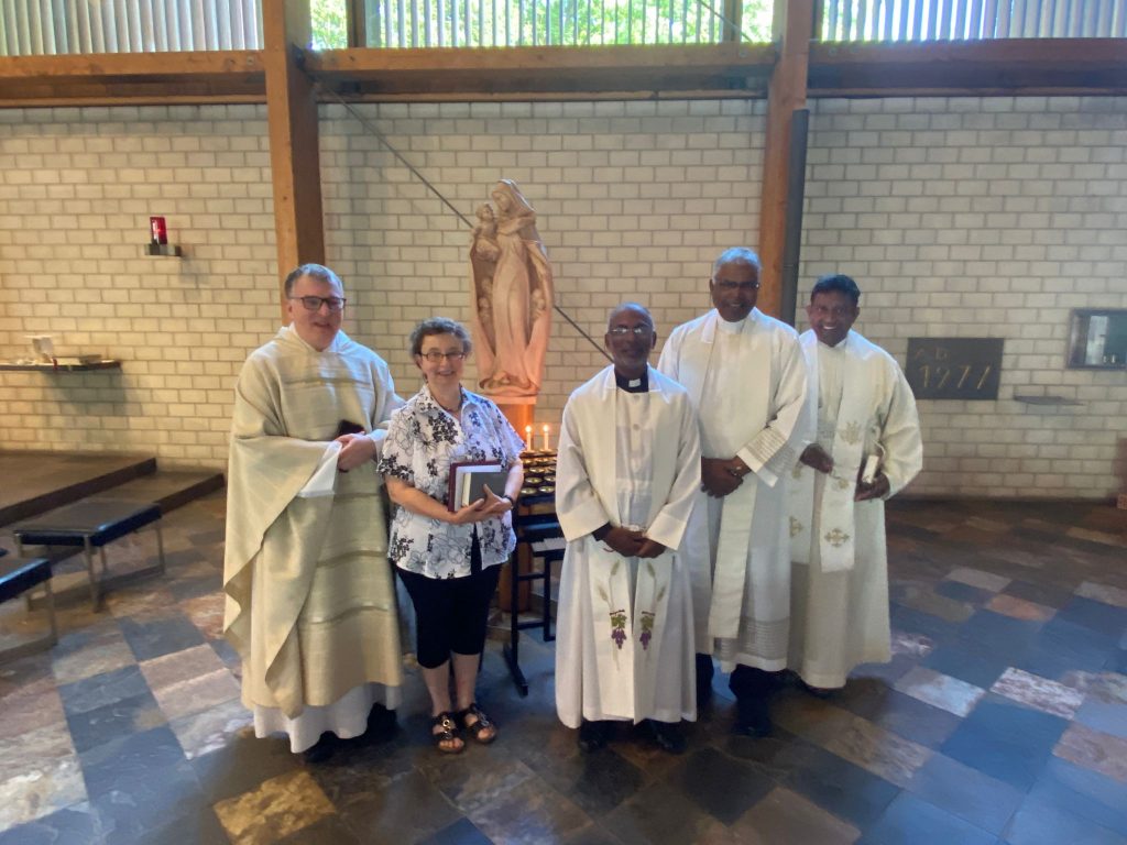 Da staunten die Gottesdienstbesucher von St. Josef Burglengenfeld nicht schlecht, als am Mittwoch, 20. August, gleich vier Priester der Vormittagsmesse vorstanden. Neben Dekan Michael Hirmer (1.v.l.) und Pfarrvikar Kumar konnten (5.v.l. zwei Gäste aus Südindien begrüßt werden.
