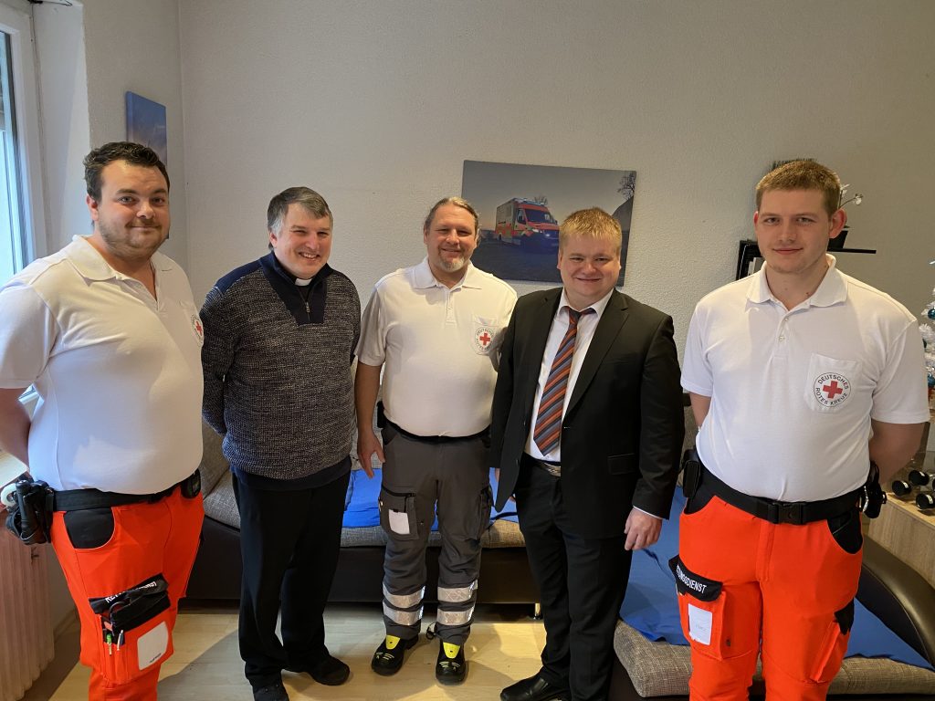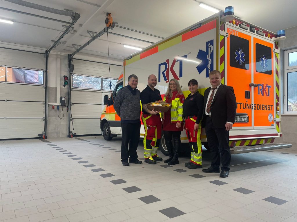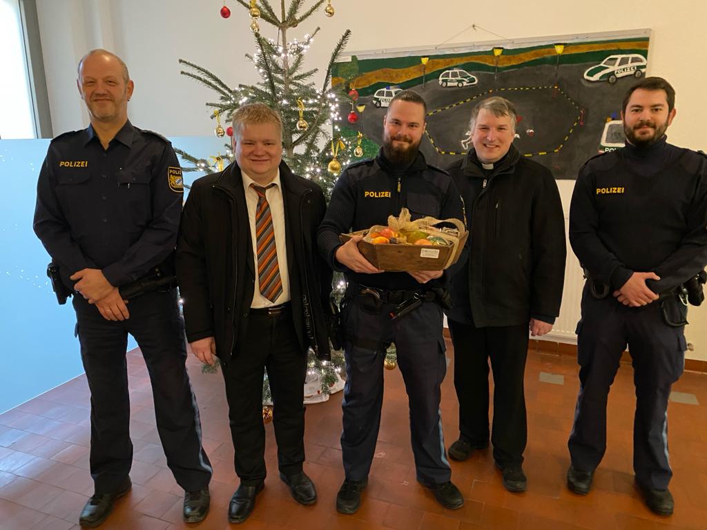 Bürgermeister Gesche und Pfarrer Michael Hirmer besuchten deshalb am Heiligen Abend die Polizei, die Rettungsdienste des BRK und RKT sowie das Krankenhaus.