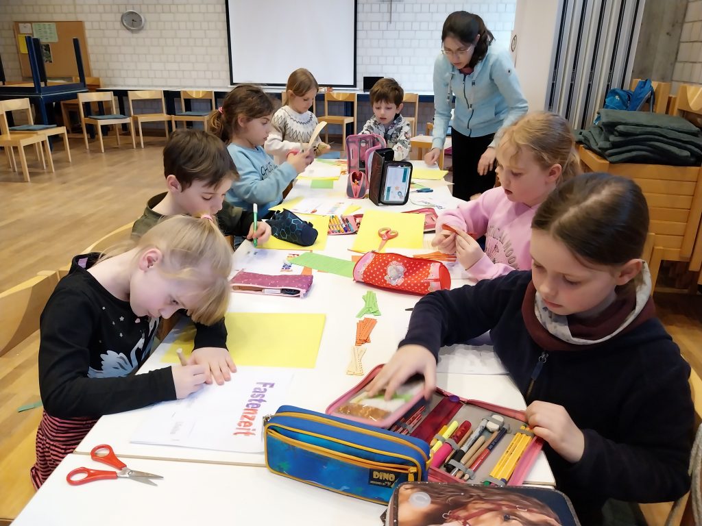 Auch im Monat März gab es wieder das Angebot für Grundschulkinder und Firmlinge „Bibel und Basteln“. Diesmal war die biblische Geschichte vom Zöllner Zachäus im Mittelpunkt. Nach der biblischen Erzählung mit Bildern bastelten die Kinder einen Fastenzeitkalender und am Ende wurde – wie immer – miteinander Brot geteilt.