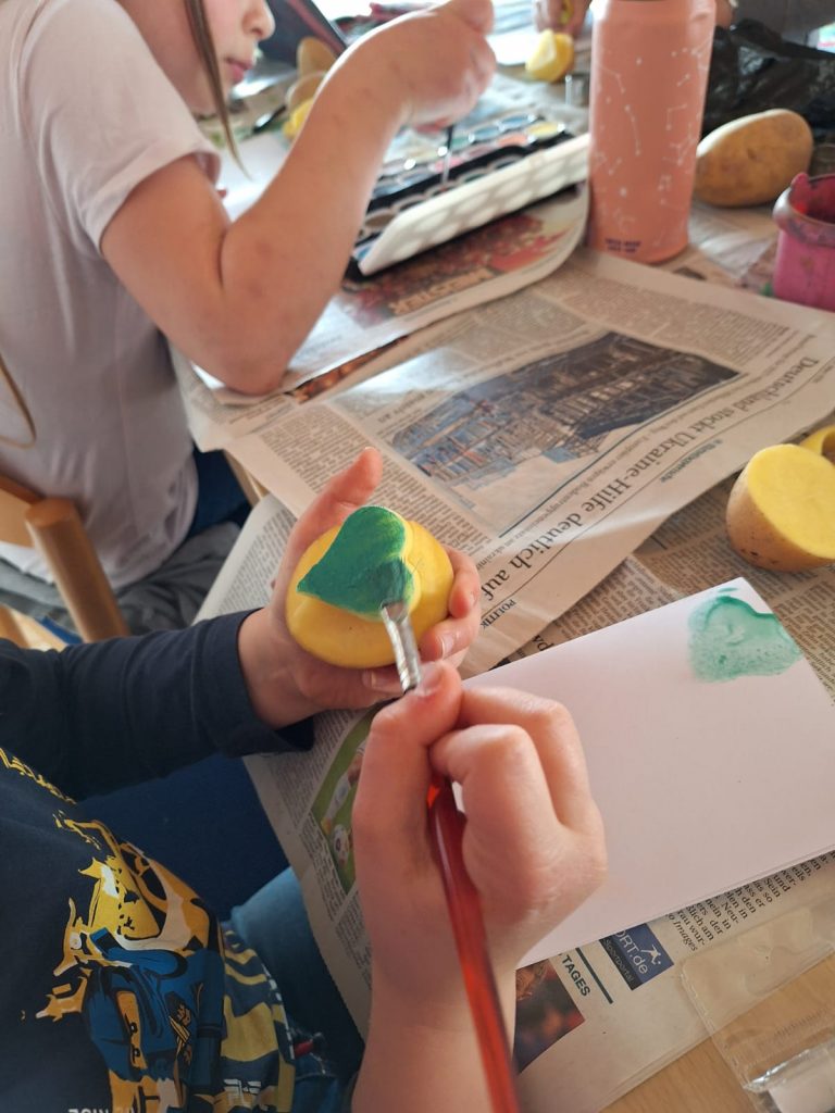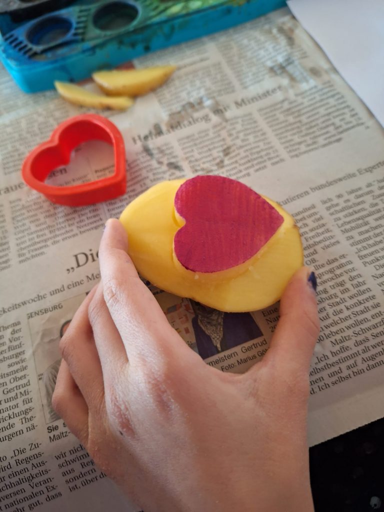 „Der barmherzige Vater“ oder „der verlorene Sohn“ – dieses Gleichnis war diesmal das Thema von B&B in der Fastenzeit. Aufmerksam hörten die Kinder der biblischen Erzählung. Anschließend gestalteten sie mit Kartoffeldruck eine Karte mit dem Motiv eines Herzens. Die Sonne lockte dann hinaus zum Spielen, bevor gemeinsam Brot geteilt wurde. „Bibel & Basteln“ macht Pause und beginnt wieder im September.