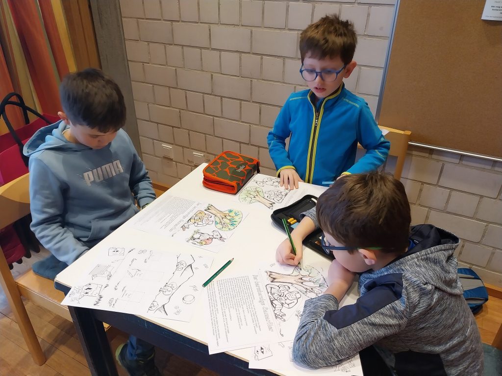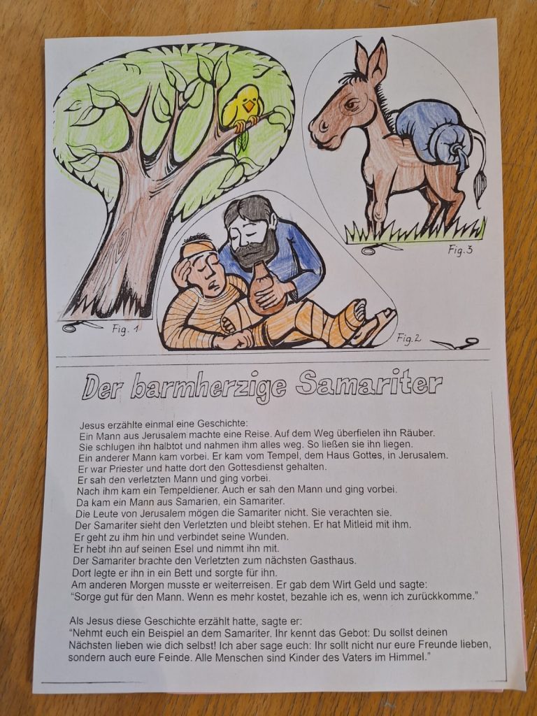Der biblische Erzählung vom barmherzigen Samariter war der Mittelpunkt des Nachmittags. Zuvor waren die Kinder begeistert bei lustigen Bewegungsspielen dabei. Und dann wurde eifrig gebastelt.
