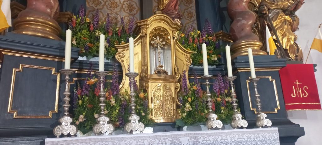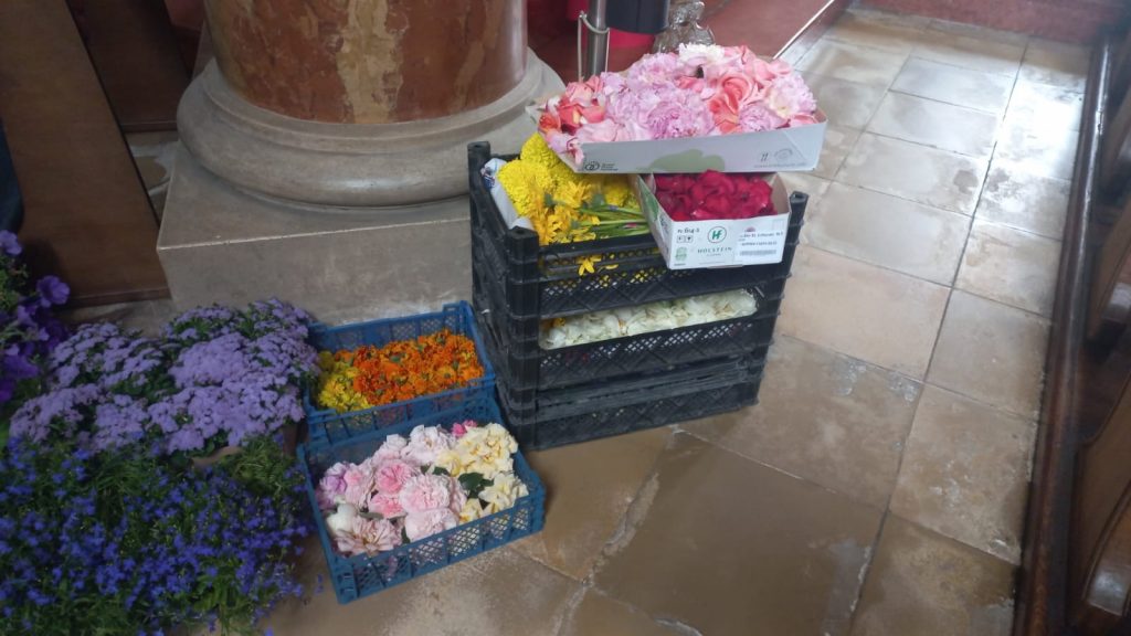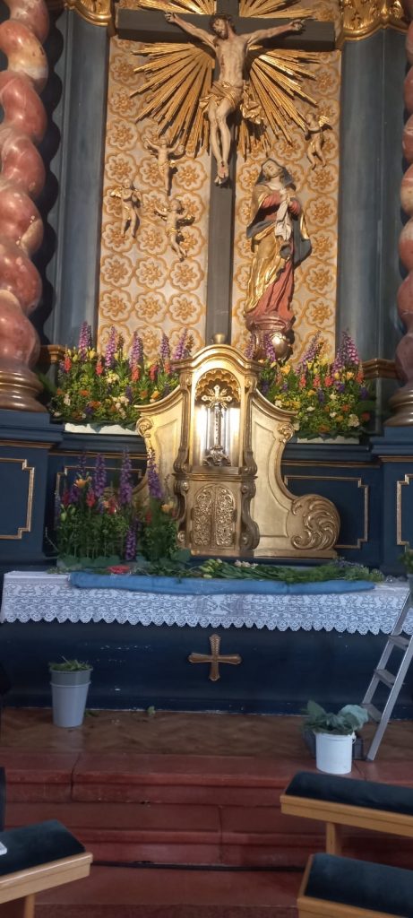 Mesnerin Astrid Theml war für den Blumenschmuck in der Kirche zuständig.