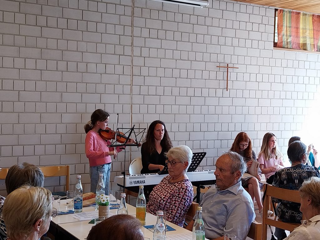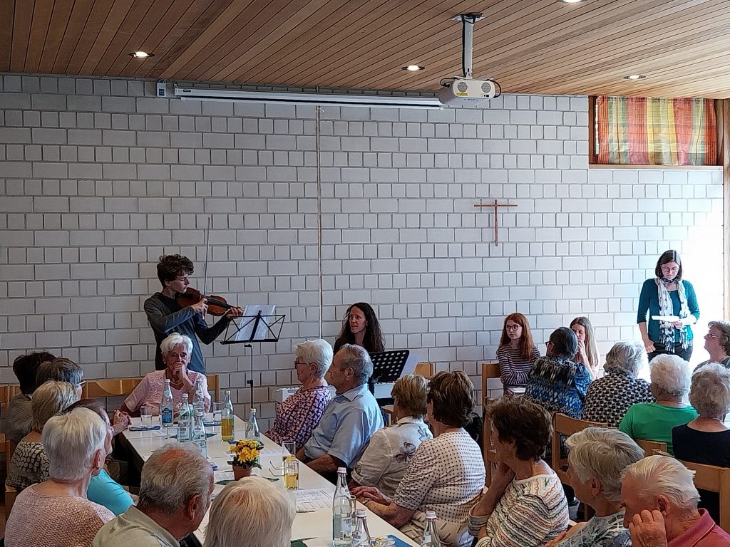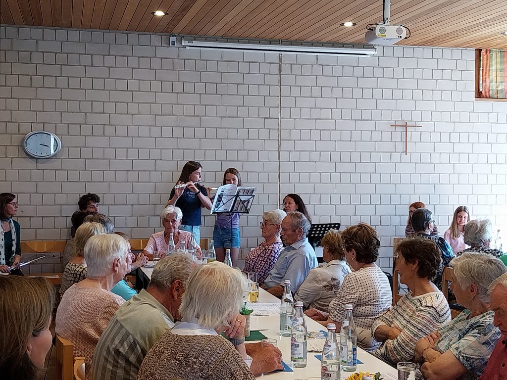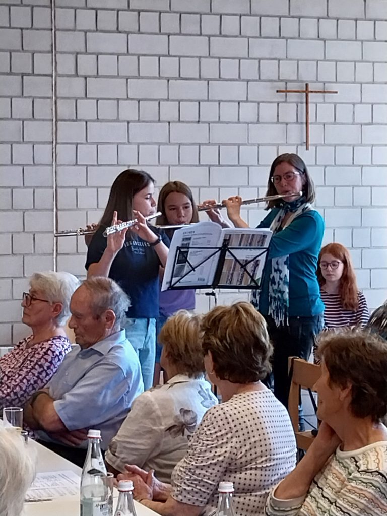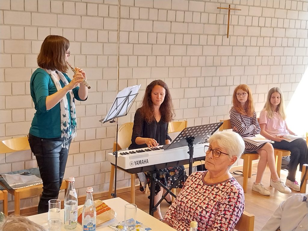 Beim bunten Nachmittag des Seniorencafes waren diesmal Musikschülerinnen und -schüler aus dem Johann-Michael-Fischer-Gymnasium, Burglengenfeld, zu Gast mit ihren Lehrerinnen Steffi Paul und Rosmarie Gröger. Die jungen Musikerinnen und Musiker gaben auf ihren Instrumenten (Klavier, Querflöte, Geige) ihr Bestes zu Gehör – zur Freude der Senioren und Seniorinnen, die gerne lauschten und applaudierten.
