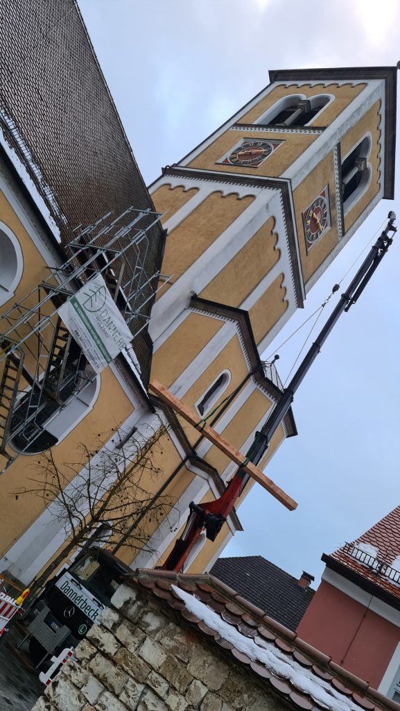 Ganz neue Töne gibt es aus der St. Vitus Kirche in Burglengenfeld zu hören. Die frohe Botschaft lautet: „Wir liegen ein viertel Jahr vor dem eigentlichen Zeitplan!“ Denn nicht wie geplant im Frühjahr 2024, sondern schon in diesem Jahr wurde mit den Notsicherungen des Kirchendachs begonnen. Wenn alles gut läuft, können diese sogar schon 2023 abgeschlossen werden.