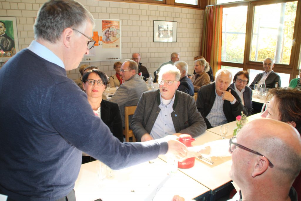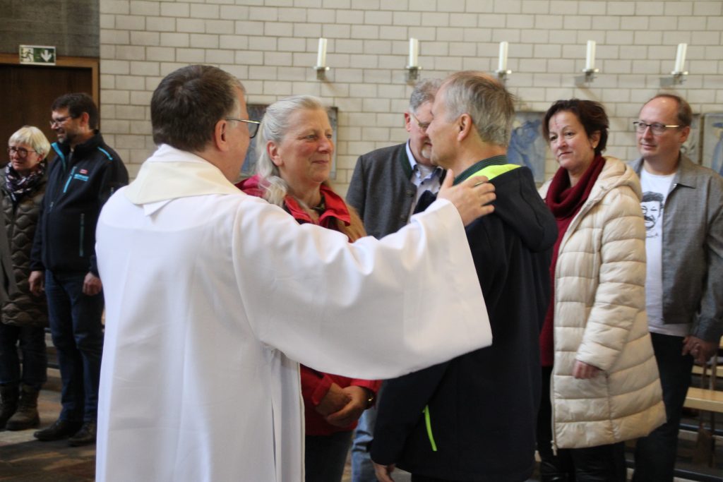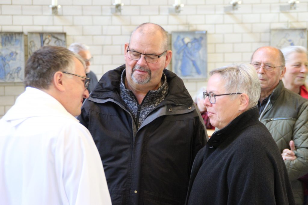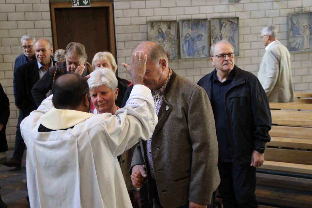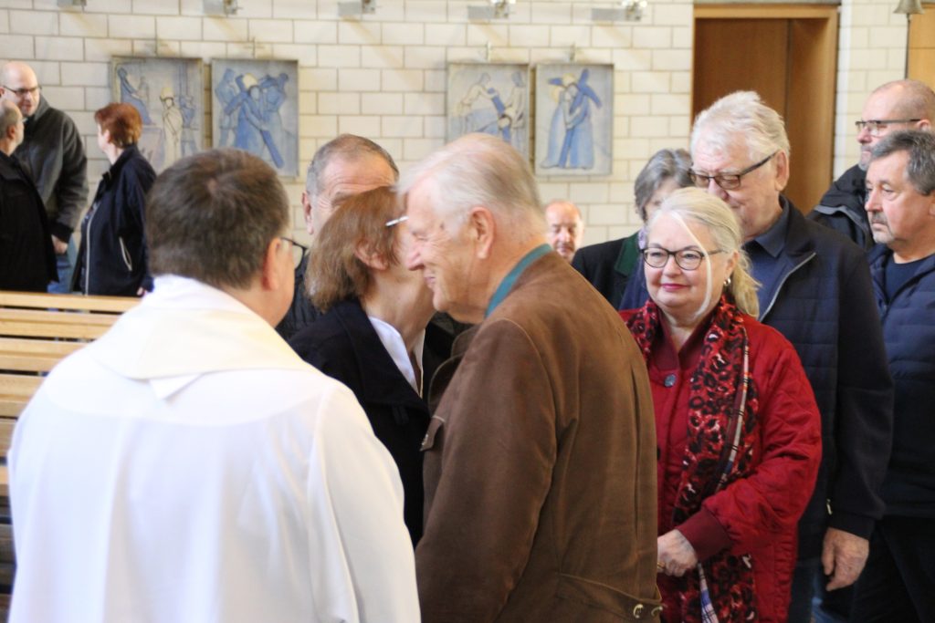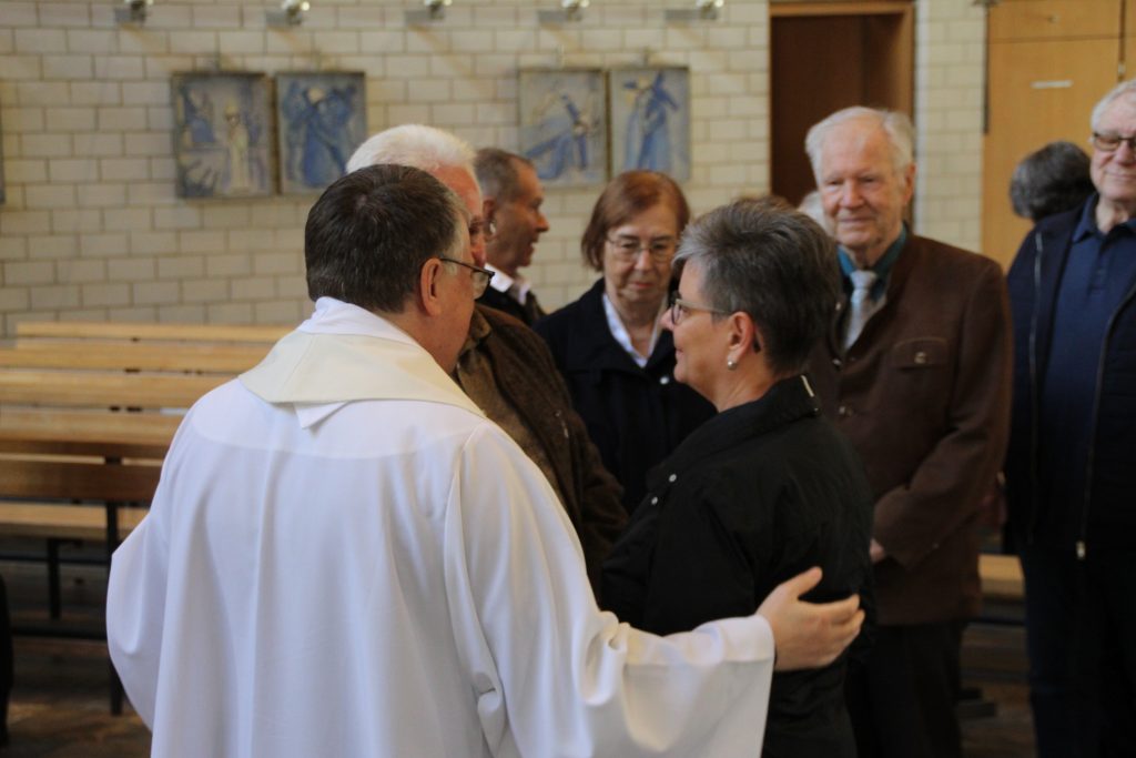 Bei einer meditativ gestalteten Andacht lud Dekan Michael Hirmer die Jubelpaare ein, dankbar für die gemeinsamen Jahre zu sein. Dabei konnten sich die Paare an den Händen fassen, sich in die Augen schauen und beim persönlichen Einzelsegen sogar ein liebevolles Wort ins Ohr flüstern.