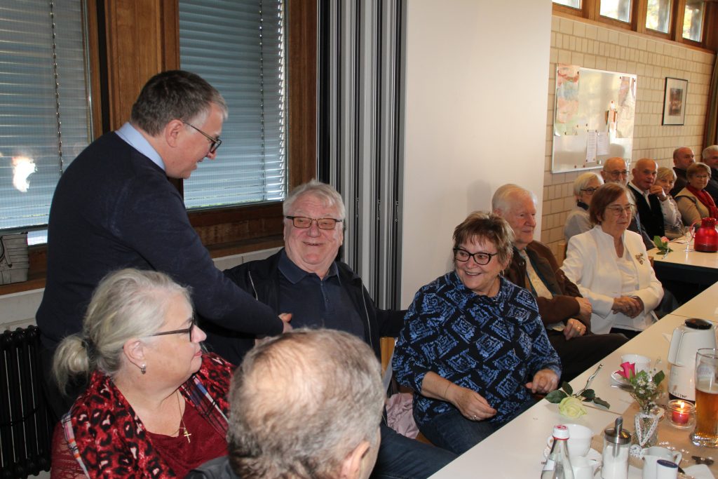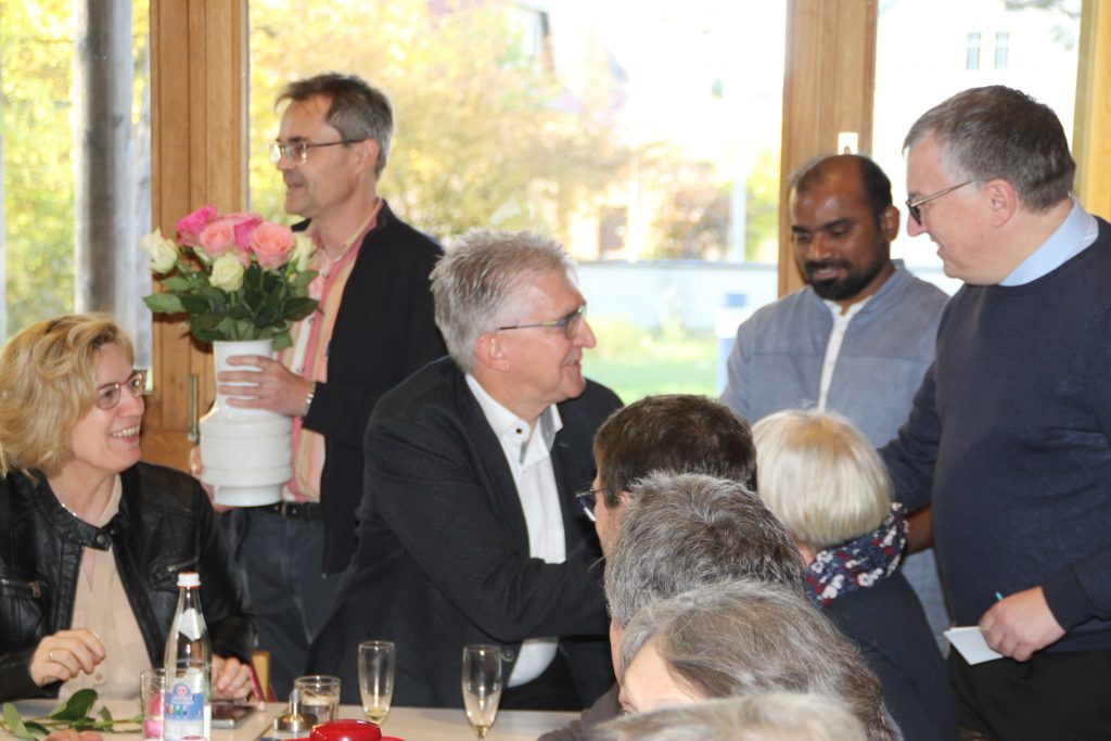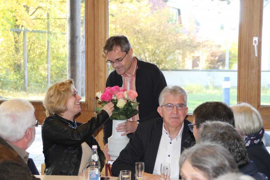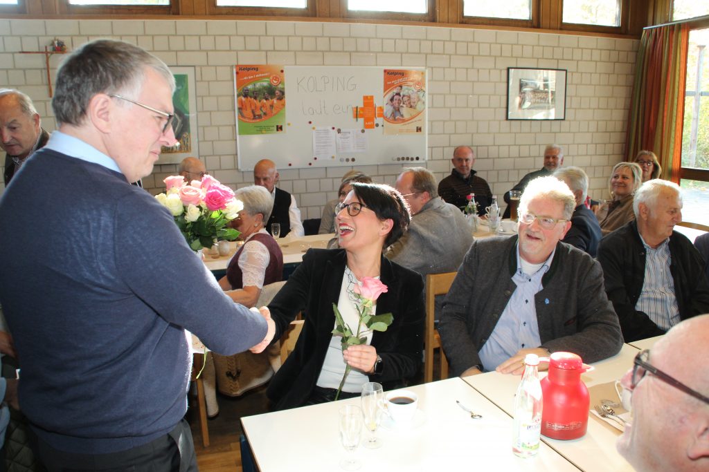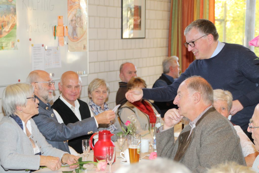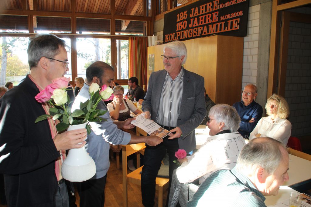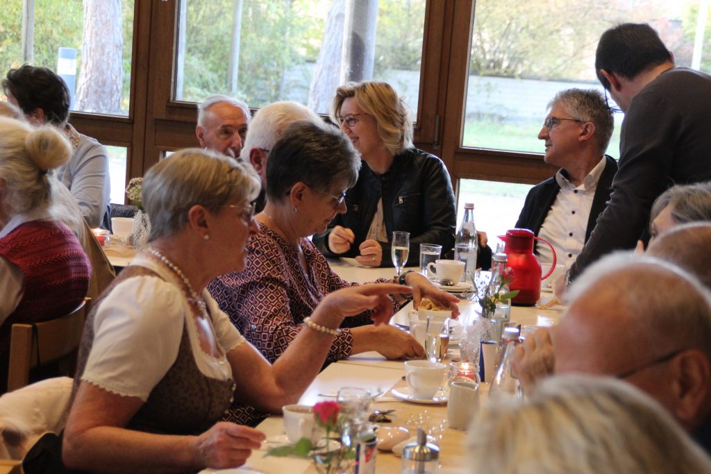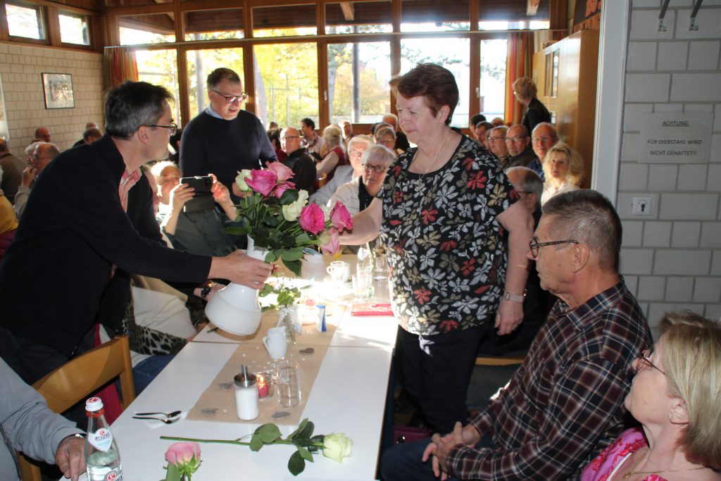 Nach dem Gottesdienst ging es in Pastoralzentrum, wo Pastoralreferent Konrad Kraus und sein Team „Ehe & Familie“ mit Kaffee und Kuchen aufwarteten. Dabei wurde in einer lustigen und informativen Präsentation auf die jeweiligen Jahre zurückgeblickt, in denen sich die Jubelpaare das Ja-Wort gaben. Zur Erinnerung an das Ehetreffen überreichten Dekan Hirmer, Kaplan Babu und Pastoralreferent Kraus Rosen, Urkunden und einen Text zum Nachdenken.