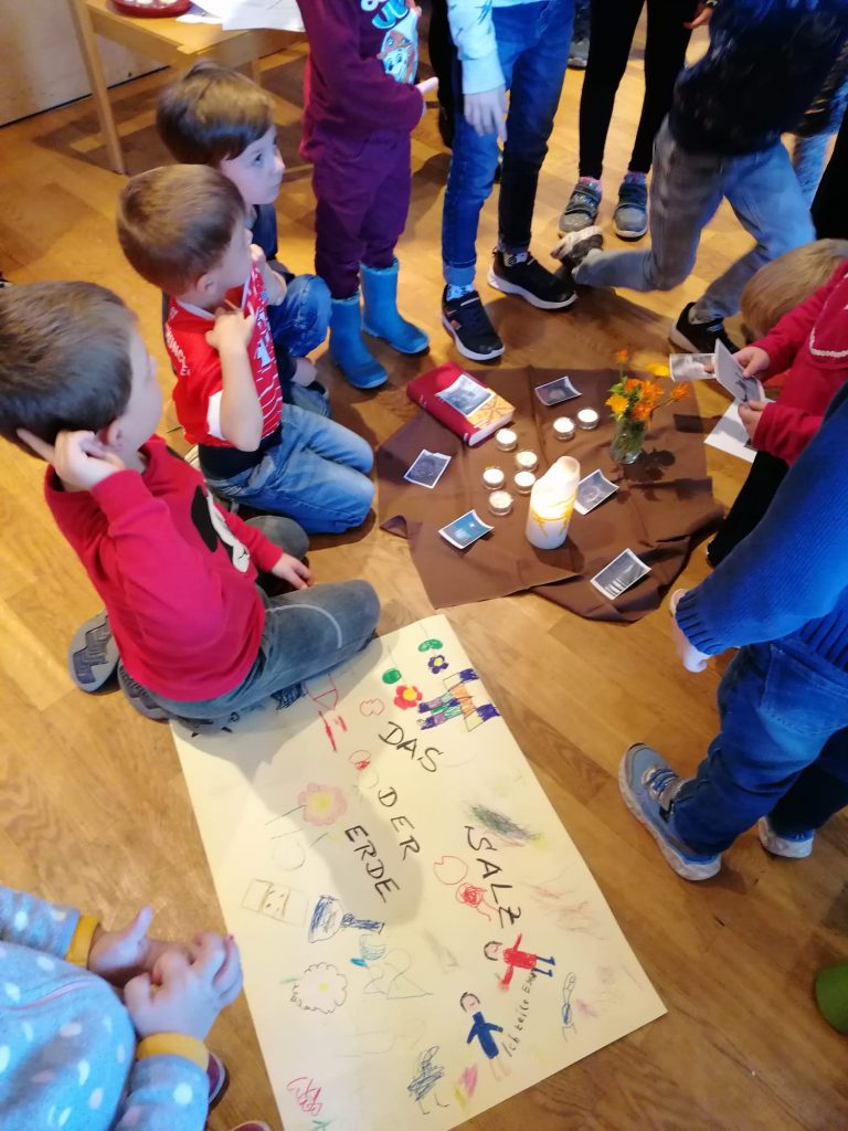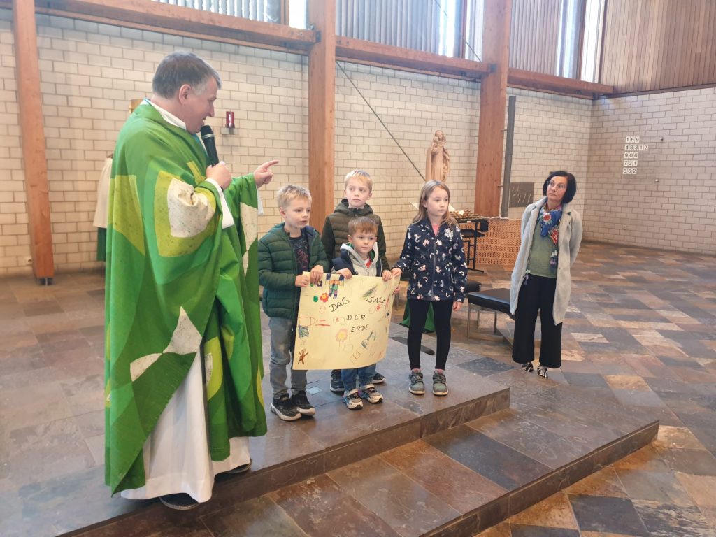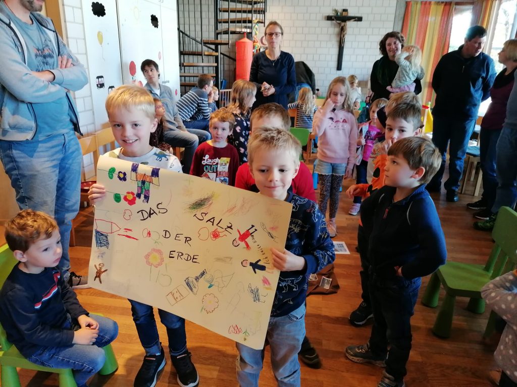 Kindgerecht wurde das Evangelium Jesu aufgearbeitet, der zu seinen Jüngern sagt: „Ihr seid das Salz der Erde.“ Mit allen Sinnen durften die Kinder die Frohbotschaft Jesu erfahren. Zum Abschluss der Kinderkirche zogen die Heranwachsenden in die große Kirche, wo Dekan Michael Hirmer am Ende des Gemeindegottesdienstes begrüßte und den Segen spendete.