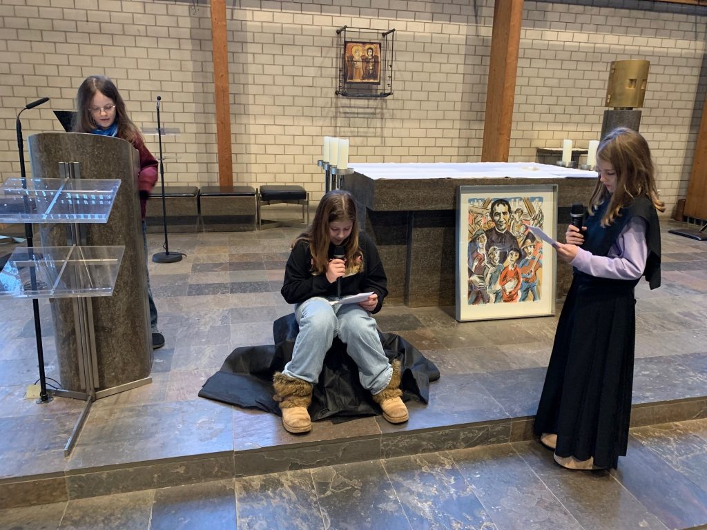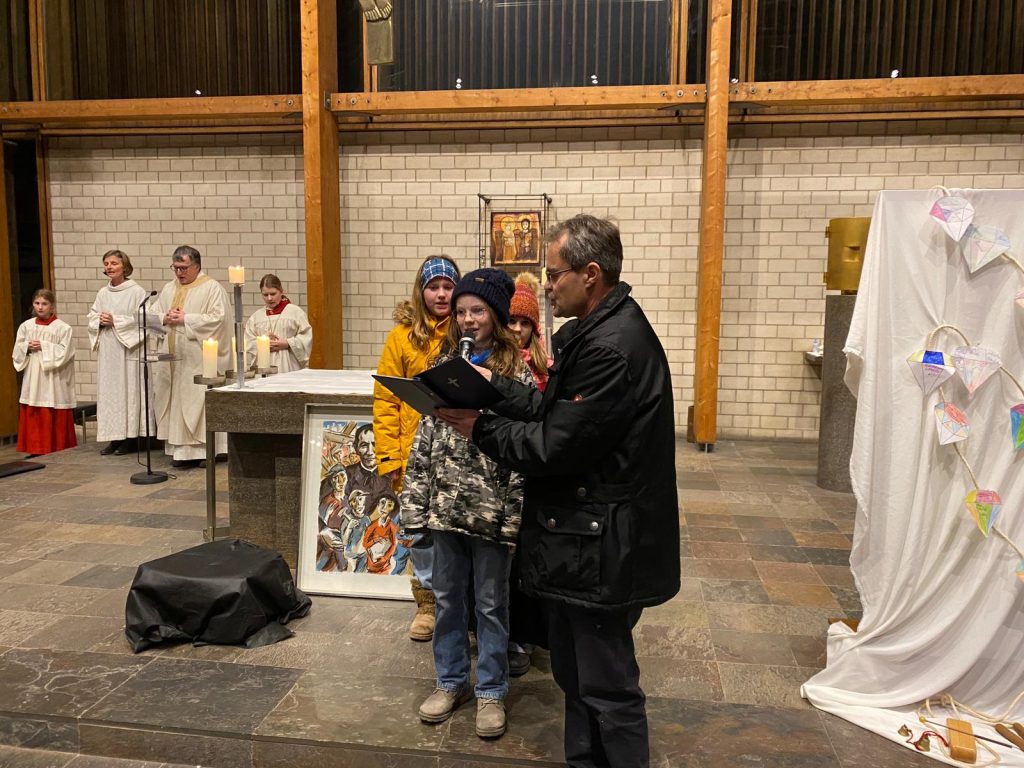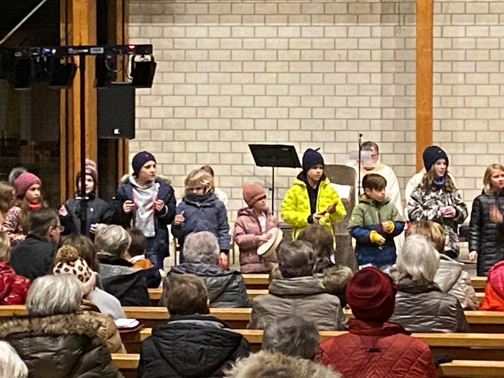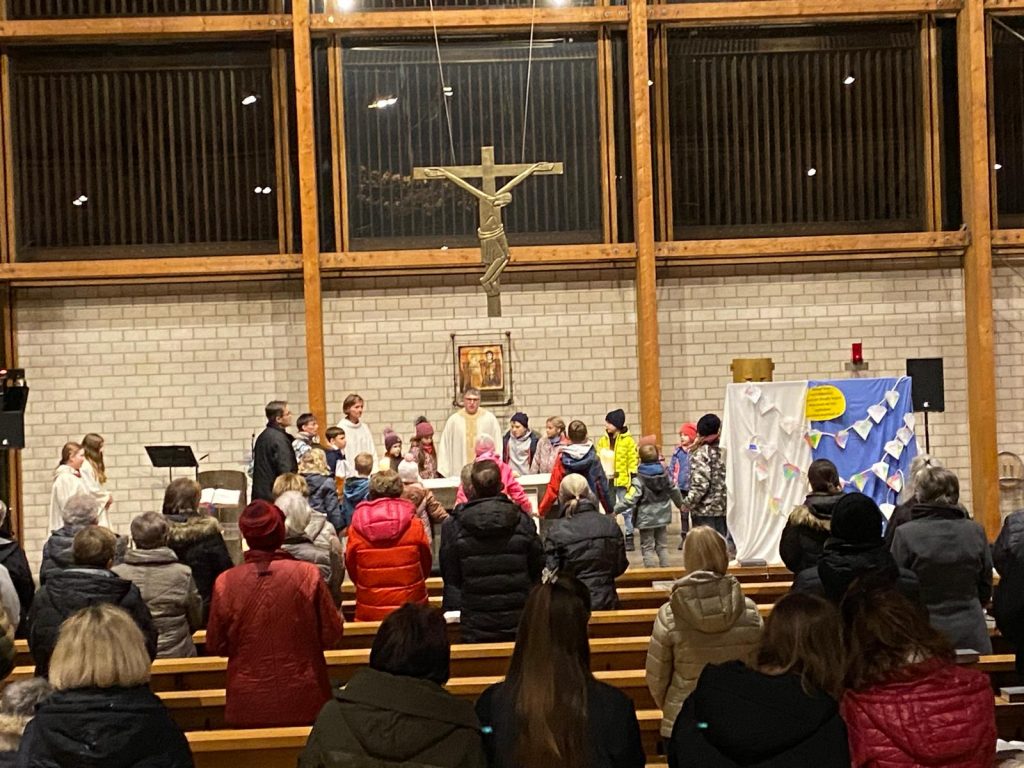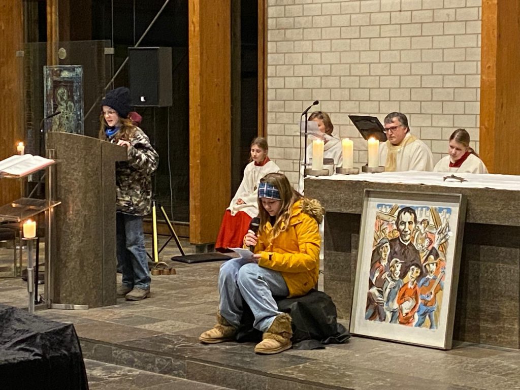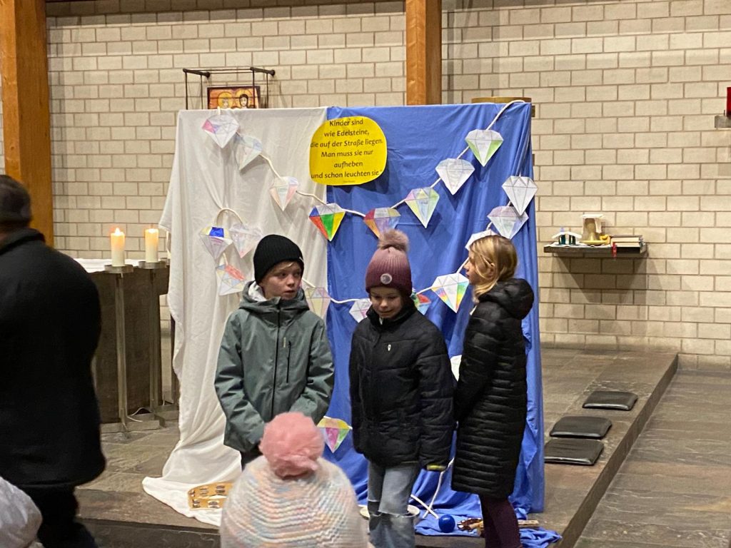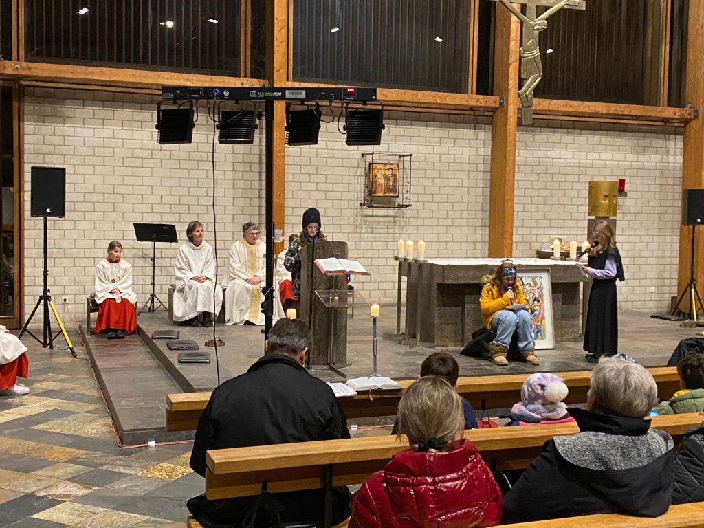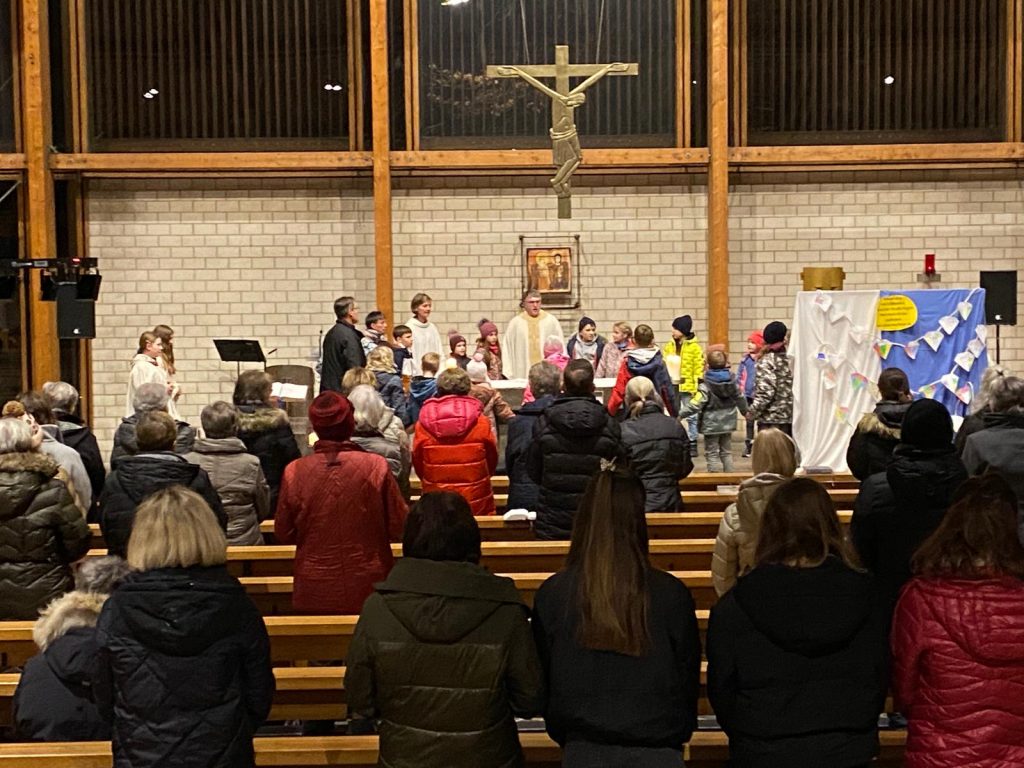 Nach dem kurzweiligen Nachmittag gab es für alle Pizzabrötchen als Stärkung, bevor es miteinander in die Kirche ging. Im Gottesdienst spielten Firmlinge vor, wie die Begegnung mit einem heimatlosen Jugendlichen Don Bosco dazu anregte, Obdachlosen Heimat zu geben.