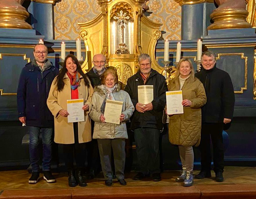 Am 2. Adventssonntag gab es einen besonderen Grund zum Feiern. Denn verdiente Sängerinnen und Sänger des Kirchenchores St. Vitus wurden für ihr langjähriges Wirken ausgezeichnet. Jutta Immler-Schatz und Elisabeth Birk wurden für zehn Jahre Treue zur Kirchenmusik und Josef Lehner für 15 Jahre ausgezeichnet. Wernfried Schreib erhielt aus der Hand von Pfarrer Michael Hirmer und Kirchenmusiker Hubert Zaindl eine Bischöfliche Urkunden für 50 Jahre aktive Sangestätigkeit. Unglaubliche 75 Jahre ist Isabelle Eichenseer im Kirchenchor aktiv. Schon als Kind sag sie zum Lobe Gottes in der Vituskirche.