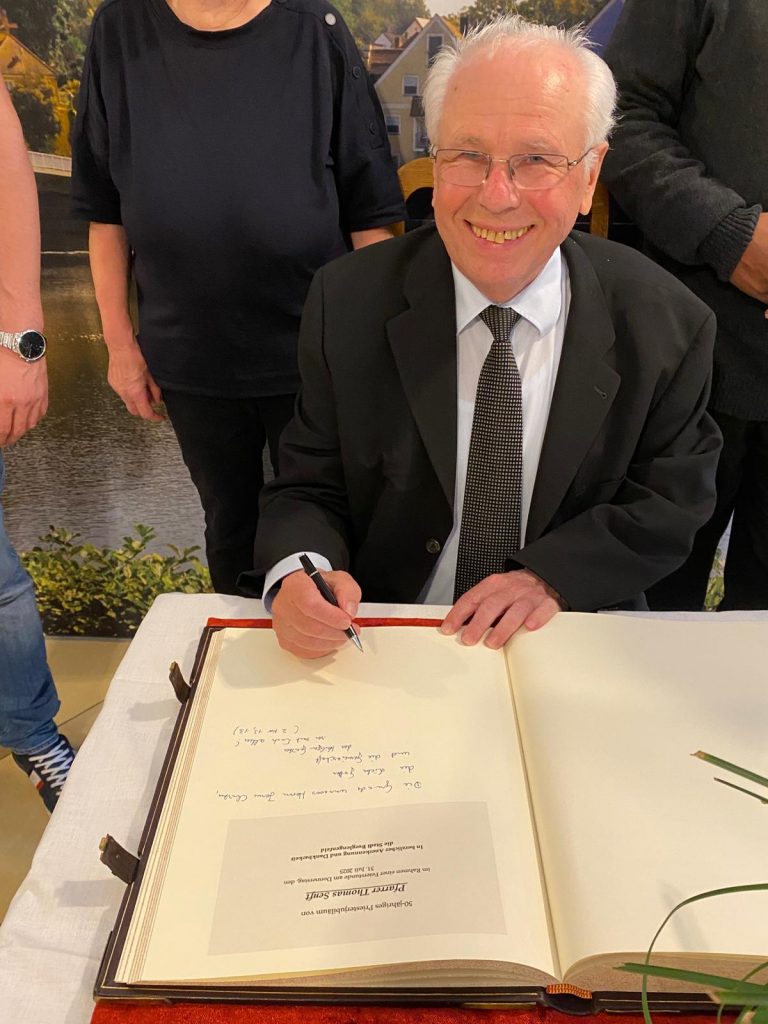 Anlässlich seines Goldenen Priesterjubiläums hatte Pfarrer i.R. Thomas Senft die Ehre, sich ins Goldene Buch der Stadt Burglengenfeld einzuschreiben.