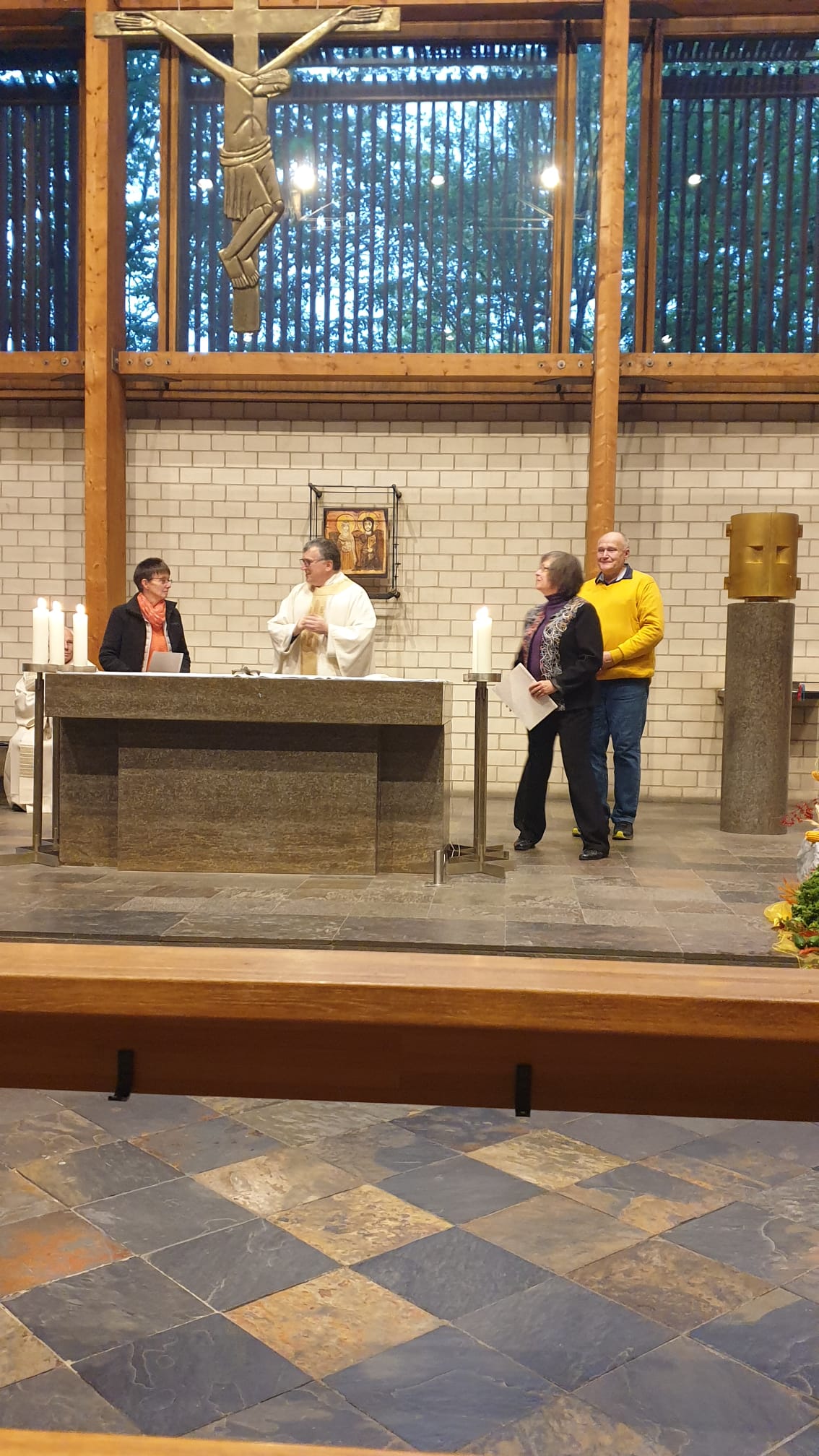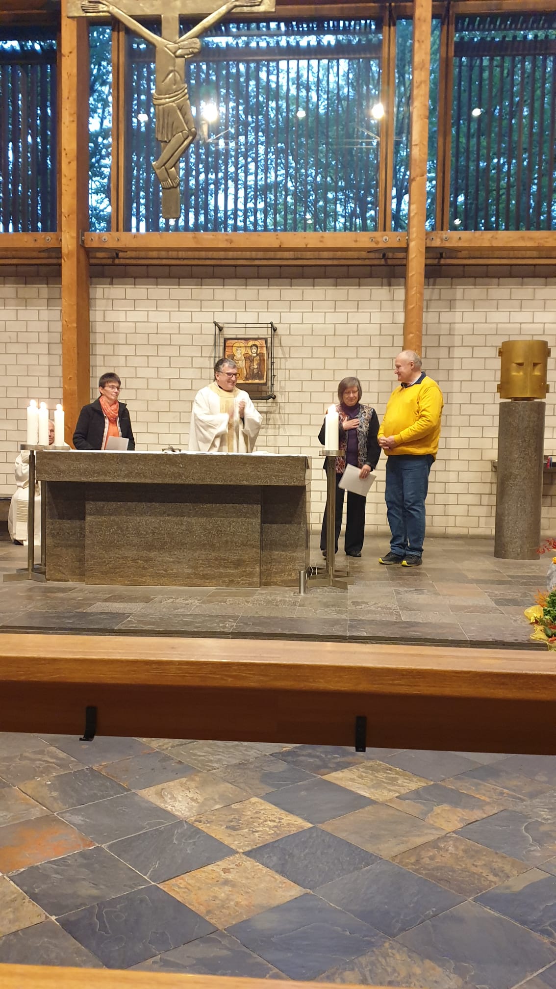 Kommunionhelferin Dorothea Gebauer, Dekan Michael Hirmer, Ruhestandspfarrer Thomas Senft, Mesner Martin Priol, Kommunionhelferin Claudia Sippl