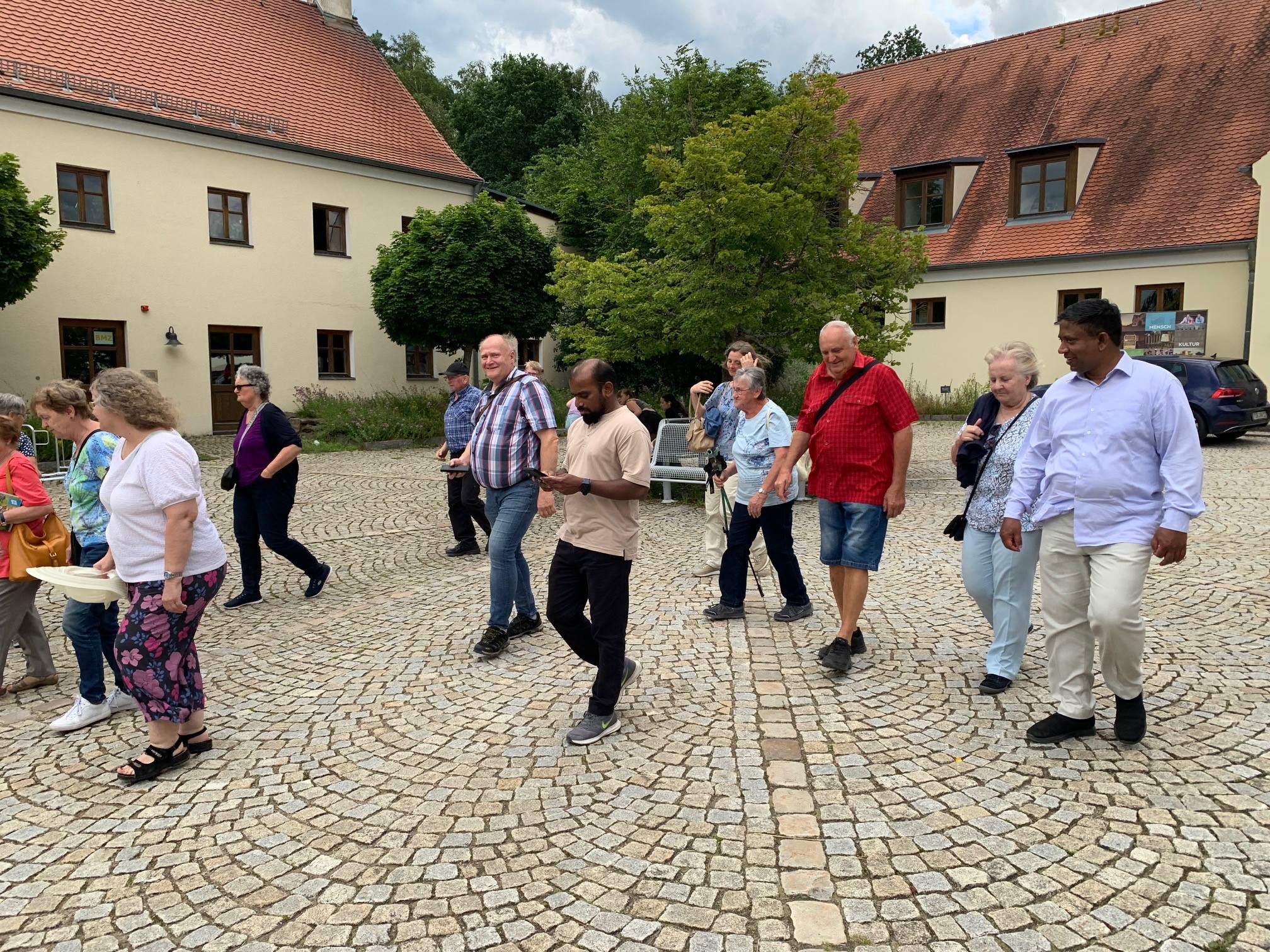 Alle ehrenamtlich Engagierten der Stadtkirche wurden an Weihnachten zu einer Fahrt ins Blaue eingeladen. Nicht einmal beim Einstieg wussten die Teilnehmenden, wohin es geht. – Die an die 100 Engagierten steuerten die Heimatstadt von Pfarrer Hirmer, Pfreimd, an. In der Pfarrkirche wurde eine Andacht gefeiert, ehe es ins Elternhaus des Pfarrers ging, wo es eine kleine Brotzeit gab. Im Freilandmuseum Neusath gab es interessante Führungen. Die Fahrt ins Blaue endete mit einem Abendessen im Nabburger Sterngarten mit Blick über das Naabtal.