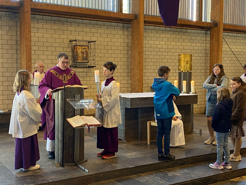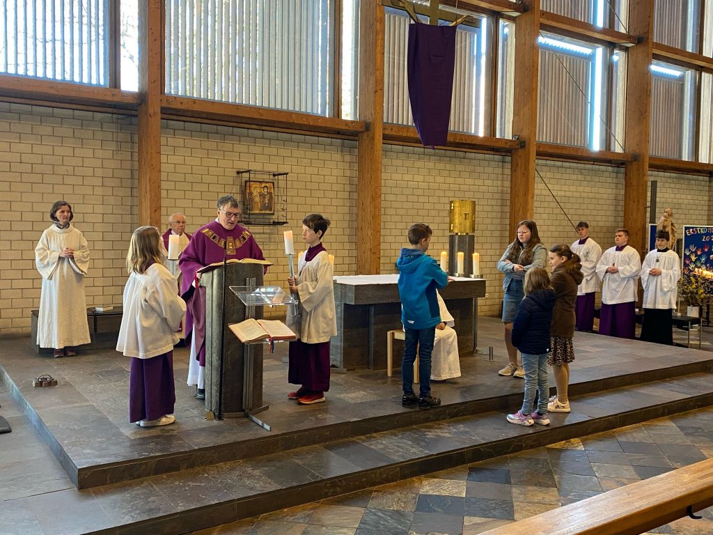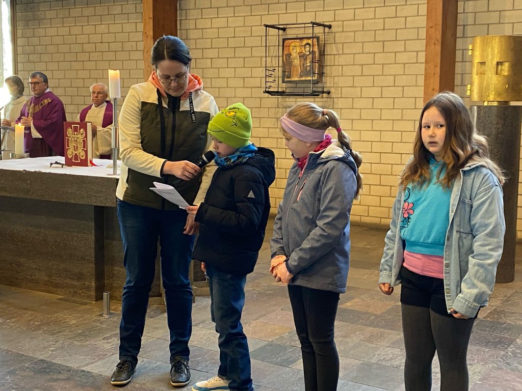 Beim Familiengottesdienst spielten die Kommunion- und Firmkinder das Evangelium in Pantomime: Jesus verurteilt die Frau nicht, er behandelt sie und die Pharisäer mit Würde und Respekt. „Auf die Würde.fertig.los“ lautet das Motto der diesjährigen Fastenaktion. Das gemeinsame Beten und Singen verbindet Christen weltweit und lenkt den Blick auf die Menschen in Sri Lanka. Dort unterstützt Misereor die Rechte der Hochlandtamilen in mehreren Projekten.