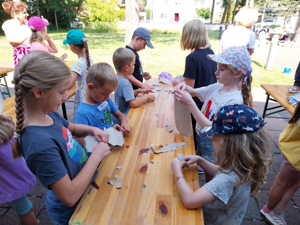 Drei wunderschöne und abwechslungsreiche Vormittage erlebten die Kinder, die dieses Jahr bei „Ferien daheim“ mitgemacht haben. Die Ferienaktion der Stadtkirche Burglengenfeld ist sehr gut angenommen worden. Gemeinschaft erleben, Papierschöpfen und Badesalz machen, Ausflug in die Höllohe, Tiere beobachten und spielen, Geschichten hören und Entspannen, Waffeln backen und Lieder singen, Spaziergang zum Galgenberg mit Spiel, Spaß und Wissenswertem aus der Kräuterwelt: ein vielfältiges Programm gehörte dazu. Eine besondere Überraschung war die selbst gebastelte Ferien-daheim-Post, die an die Eltern verschickt worden ist. Alle waren sich einig, dass „Ferien-daheim“ wirklich toll ist und dass es auch dieses Jahr wieder eine gelungene Aktion war.