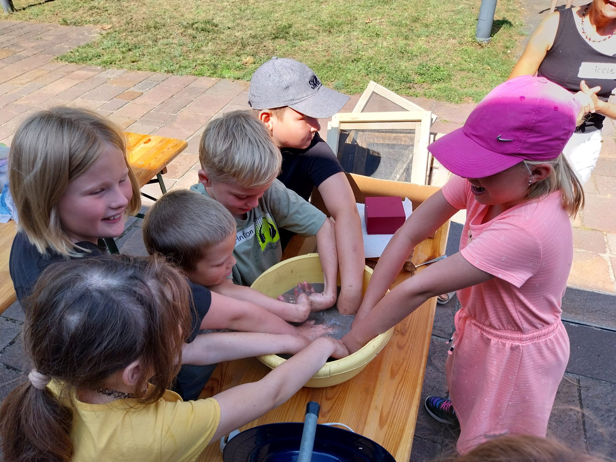 Drei wunderschöne und abwechslungsreiche Vormittage erlebten die Kinder, die dieses Jahr bei „Ferien daheim“ mitgemacht haben. Die Ferienaktion der Stadtkirche Burglengenfeld ist sehr gut angenommen worden. Gemeinschaft erleben, Papierschöpfen und Badesalz machen, Ausflug in die Höllohe, Tiere beobachten und spielen, Geschichten hören und Entspannen, Waffeln backen und Lieder singen, Spaziergang zum Galgenberg mit Spiel, Spaß und Wissenswertem aus der Kräuterwelt: ein vielfältiges Programm gehörte dazu. Eine besondere Überraschung war die selbst gebastelte Ferien-daheim-Post, die an die Eltern verschickt worden ist. Alle waren sich einig, dass „Ferien-daheim“ wirklich toll ist und dass es auch dieses Jahr wieder eine gelungene Aktion war.