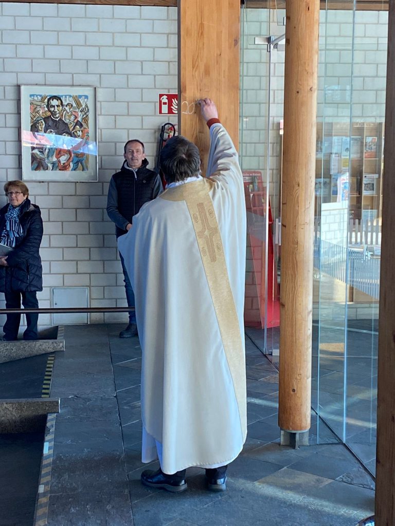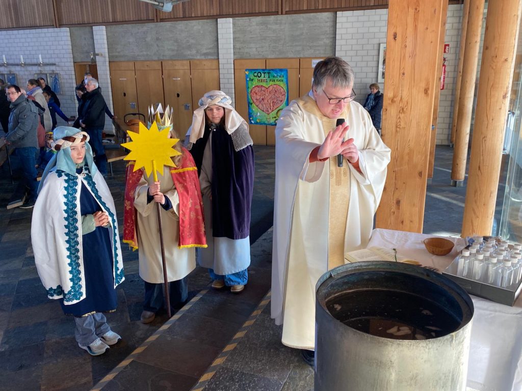 Zu Beginn des Gottesdienstes segnete Dekan Michael Hirmer das Dreikönigswasser, den Weihrauch und Kreiden bzw. Segensaufkleber.