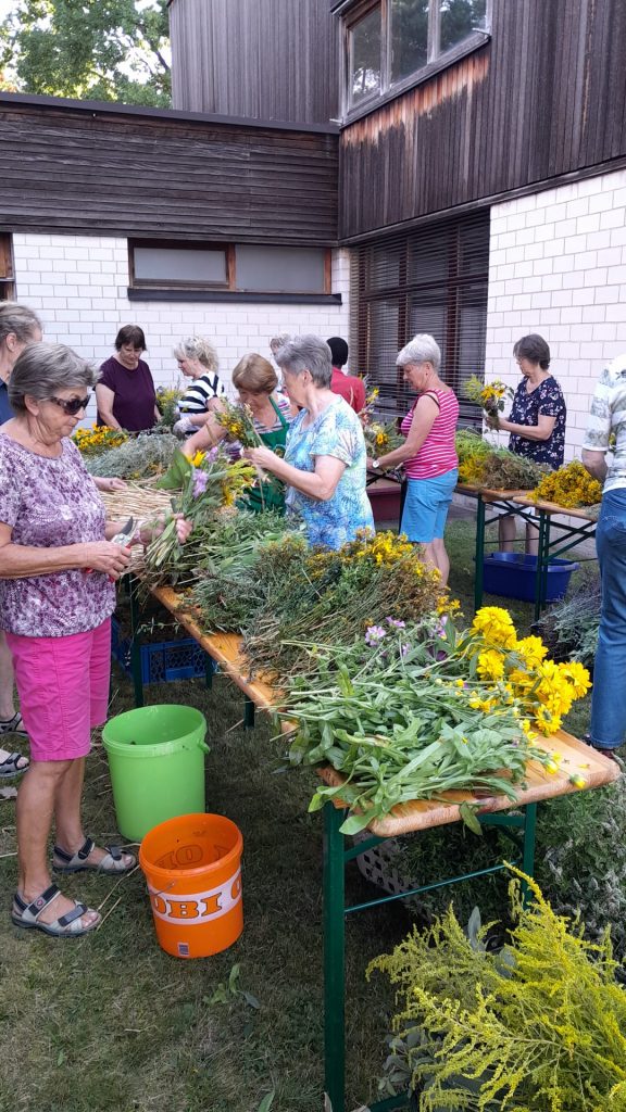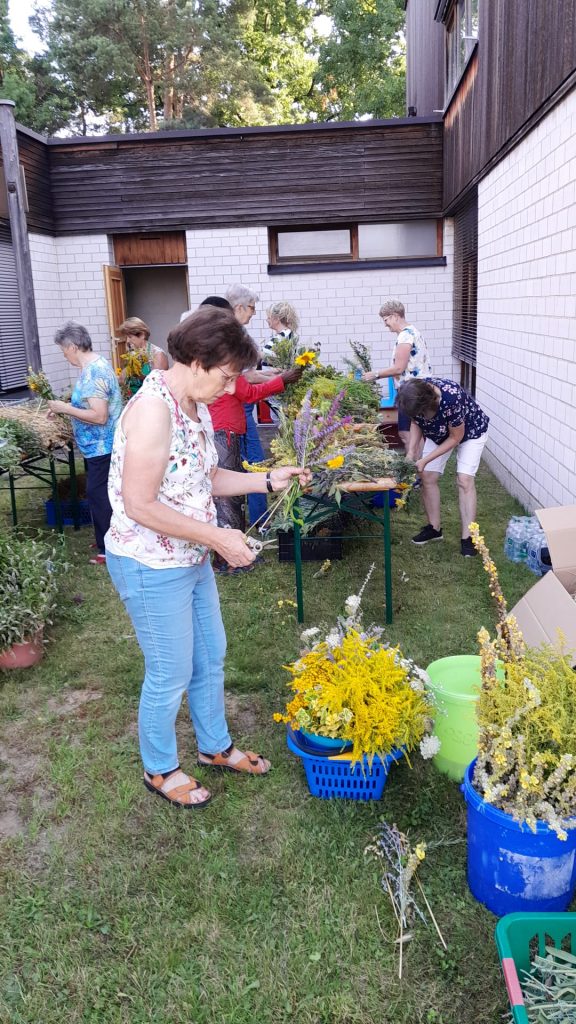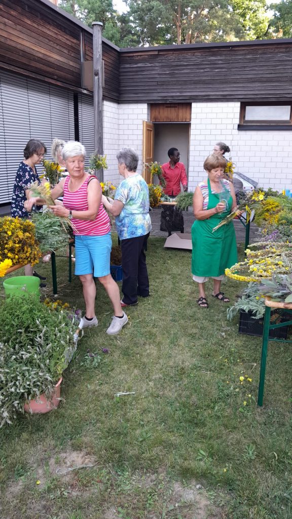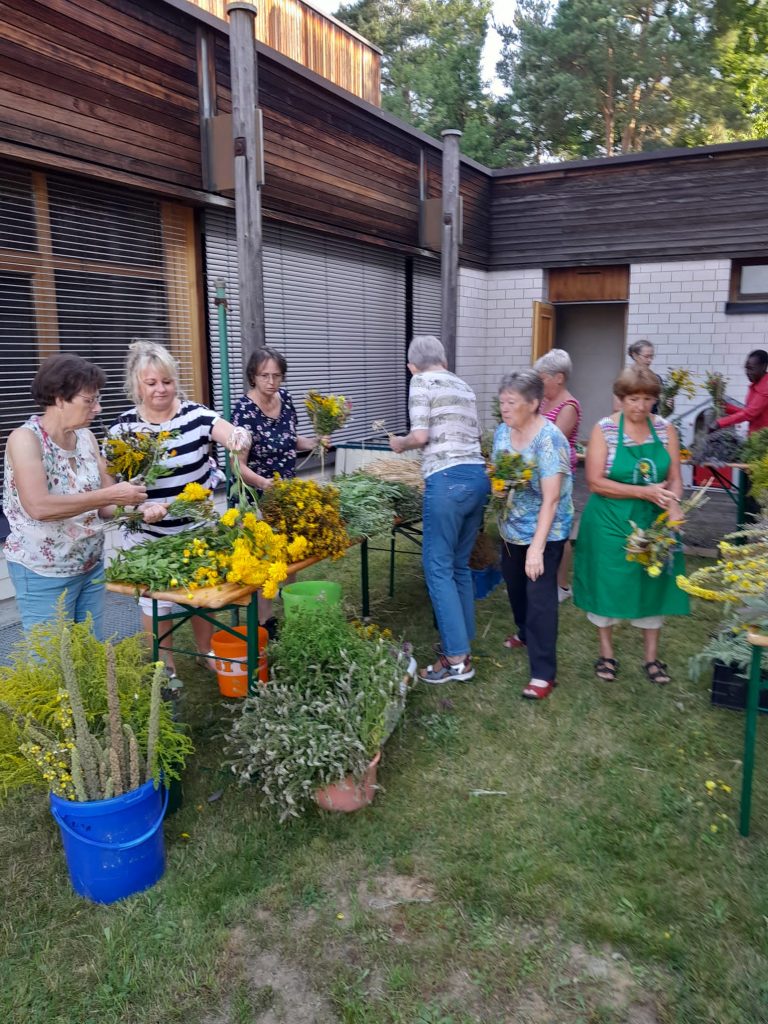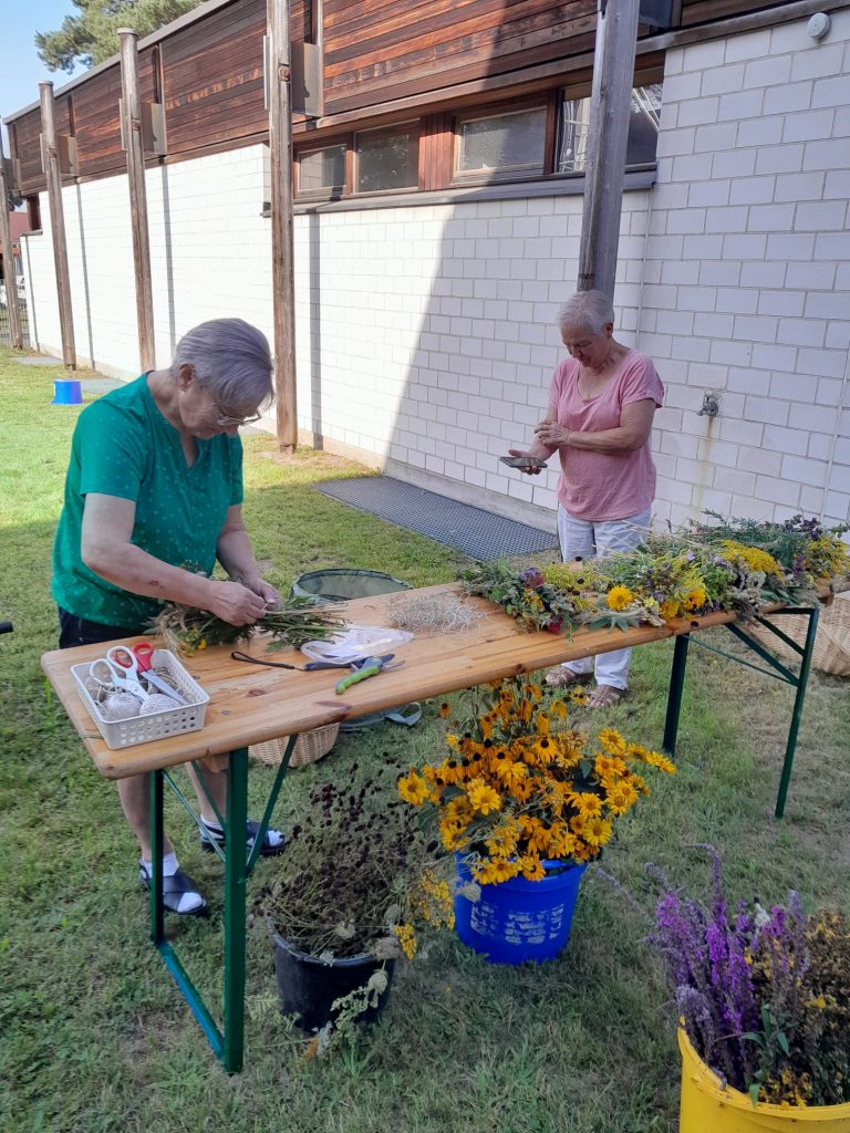 Frauenbund pflegt altes Brauchtum. Am Donnerstag, 14. August fanden sich im Pfarrgarten in St. Josef 18 Frauen ein, die aus den gesammelten Kräutern und Blumen ca. 200 Kräuterbuschen gebunden haben.