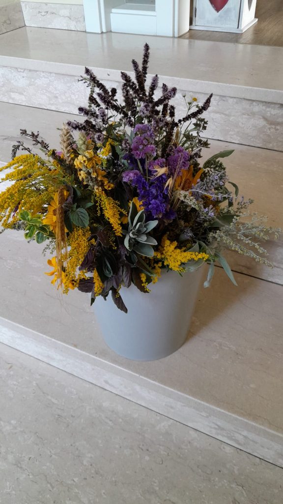 Im Grab Mariens fanden die Apostel statt des Leichnams Blumen und Kräuter. Seither wird Maria immer mit Blumen in Verbindung gebracht. Deshalb werden an Maria Himmelfahrt Sträuße mit heilenden Kräutern und herrlichen Blumen gebunden. Typische Kräuter sind Johanniskraut, Salbei, Wermut, Rosmarin, Melisse, Kamille, Beifuß. Königskerze und versch.Getreidesorten. Die Kräuterbuschen wurden in den Gottesdiensten gesegnet.