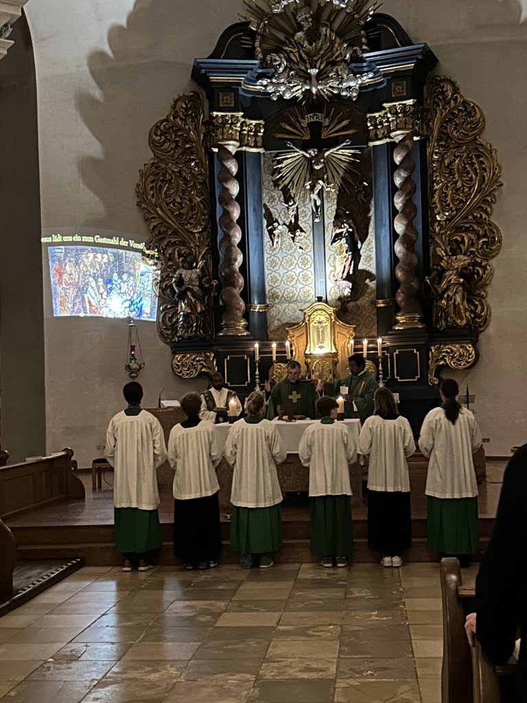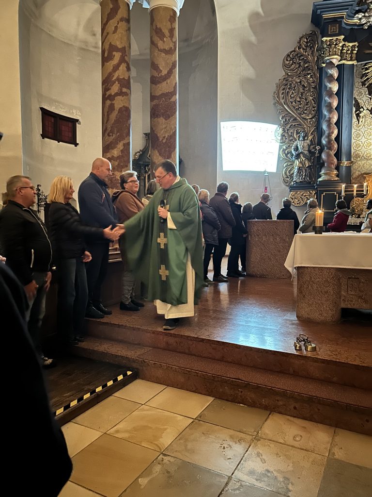 Emotionaler Höhepunkt war der Friedensgruß, zu dem das hebräischen Lied „Shalom- Frieden für alle“ angestimmt wurde. Dabei reichte der Pfarren jedem einzelnen Gottesdienstbesucher die Hand und sprach ihm den Frieden Christi zu.