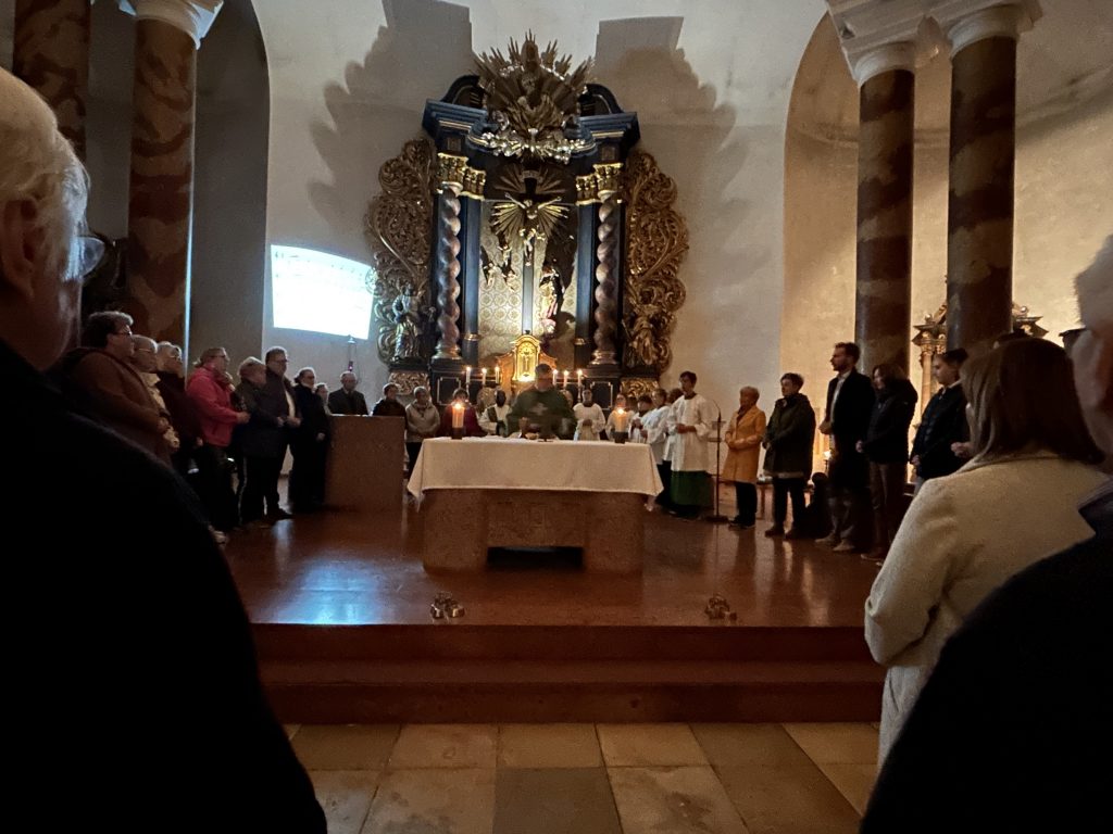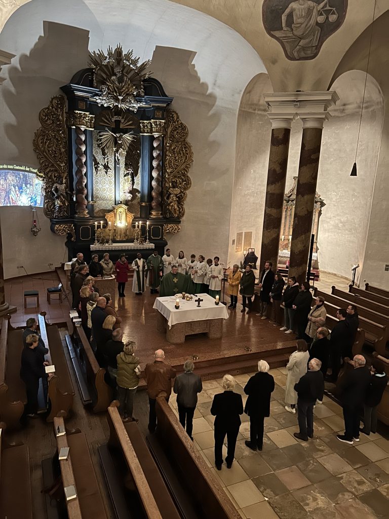 In seiner Predigt griff Dekan Hirmer eine weitere tiefer Dimension von Frieden auf. Den Frieden den Jesus Christus schenken will, den Shalom des Herzens. Für diesen Frieden und diese Versöhnung sein Jesus sogar ans Kreuz gegangen. Der innere Frieden mit sich selbst, mit Gott und den Mitmenschen sei die Voraussetzung für den Frieden in den Beziehungen und zwischen den Völkern dieser Erde. Deshalb sei es so wichtig, dass das Friedensopfer Jesu immer lebendig gehalten wird in der Feier der Eucharistie, zu der sich die Mitfeiernden um den Altar versammelten.