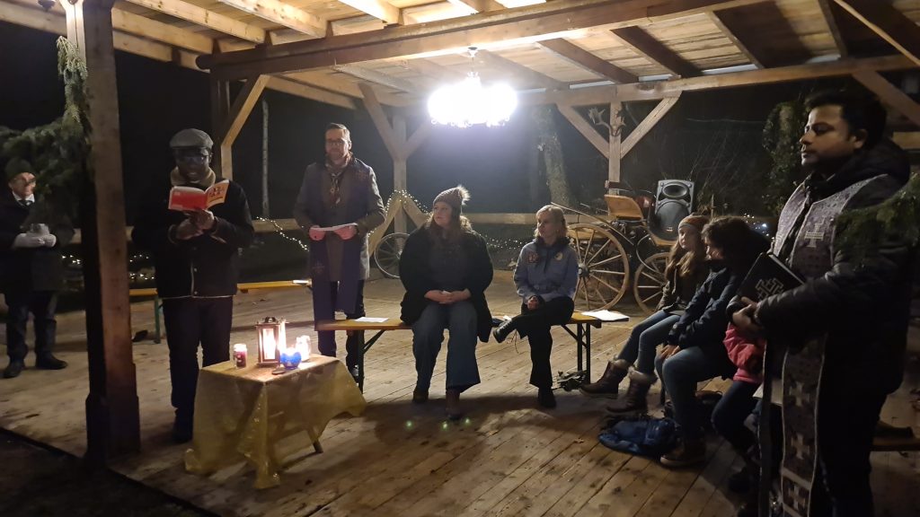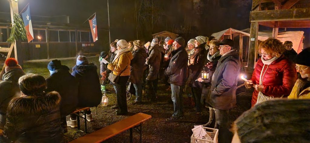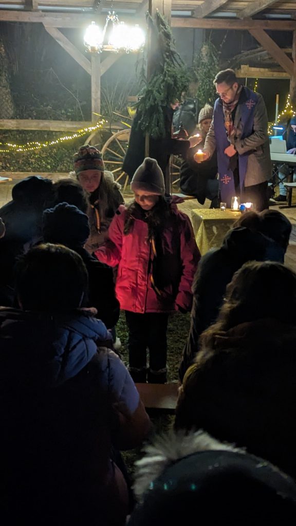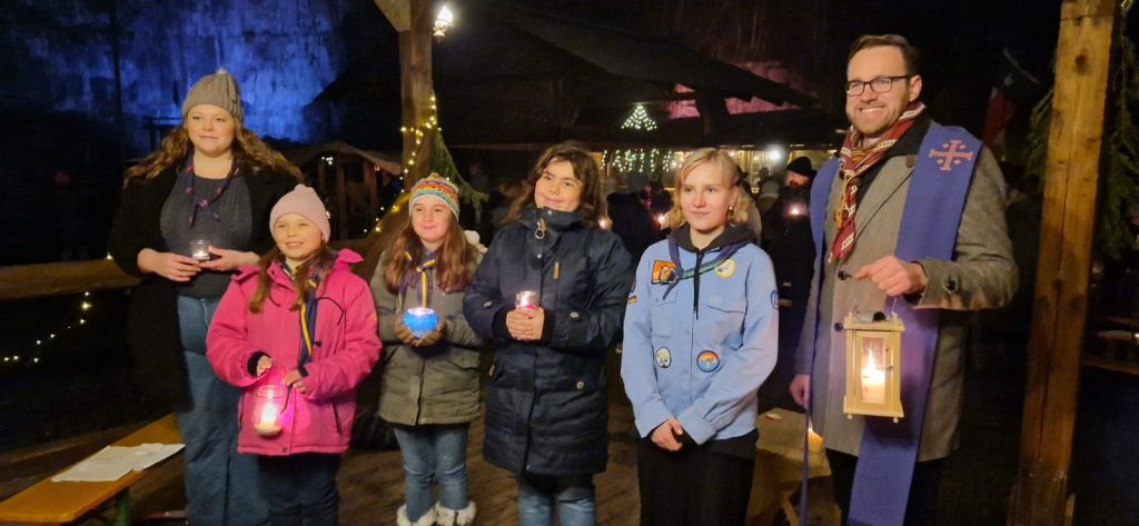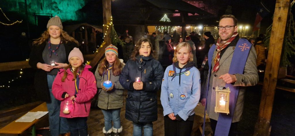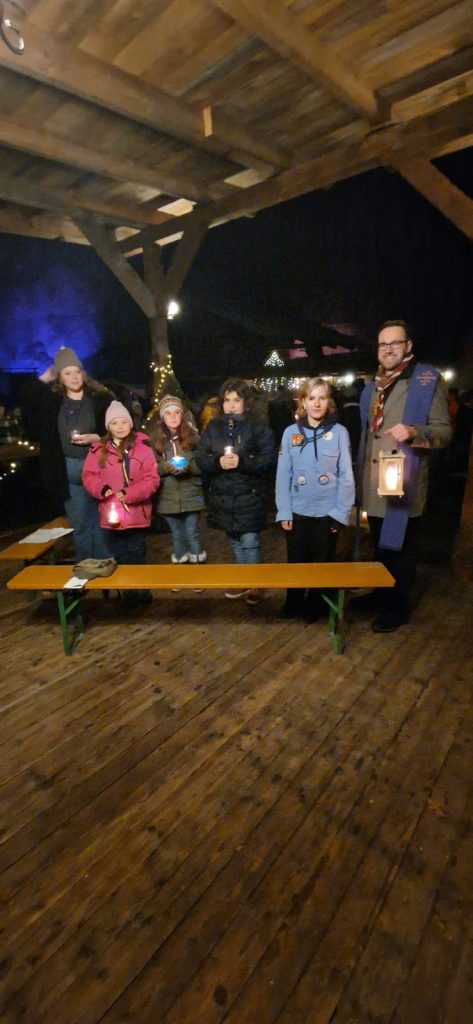 Die Pfandfinderinnengruppe mit ihrer Leiterin Sophie Heier machten sich bei der Andacht auf die Suche nach Frieden und fand diesen letztlich im Kind von Betlehem. Auch in den Gebeten der Geistlichen Pater Sijo (Katzdorf), Pfarrvikar Paschal (Leonberg), Dekan Michael Hirmer und Ruhendstandspfarrer Thomas Senft (beide Burglengenfeld) wurden für den weltweiten aber auch den persönlichen Frieden gebetet.