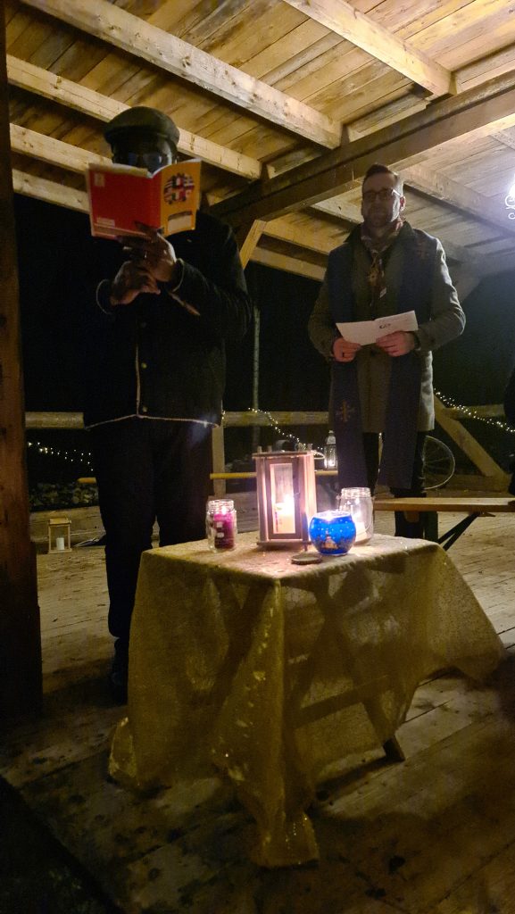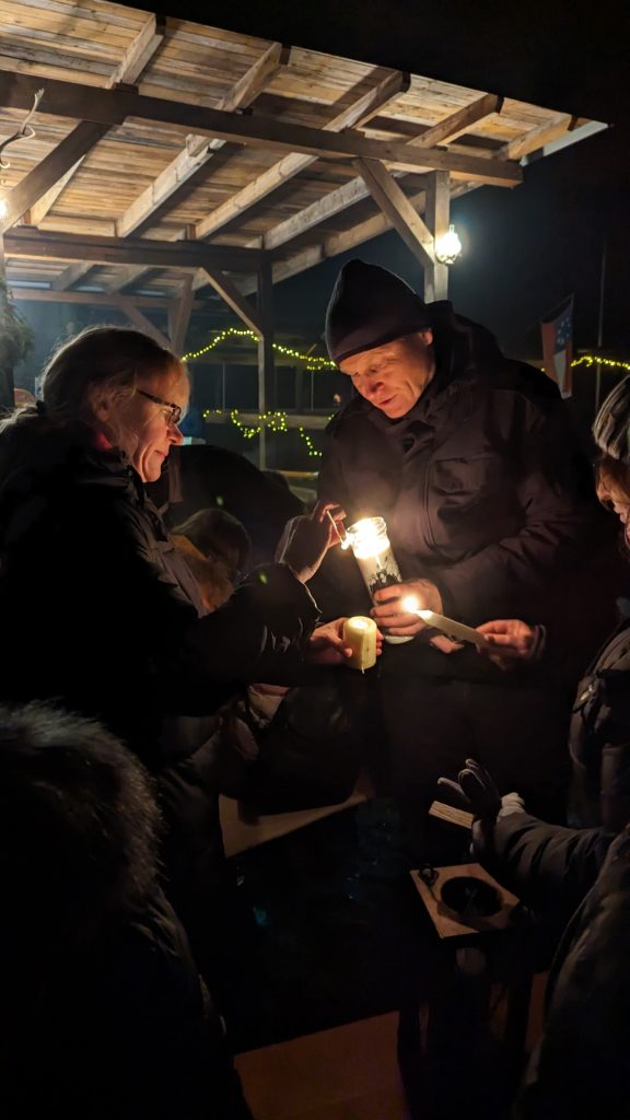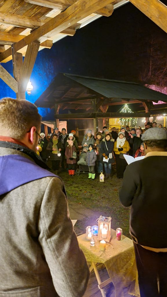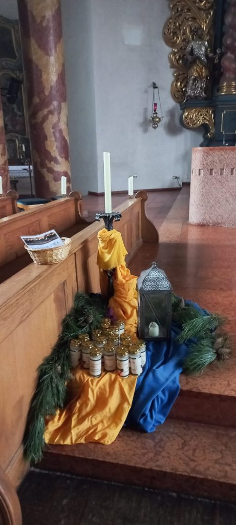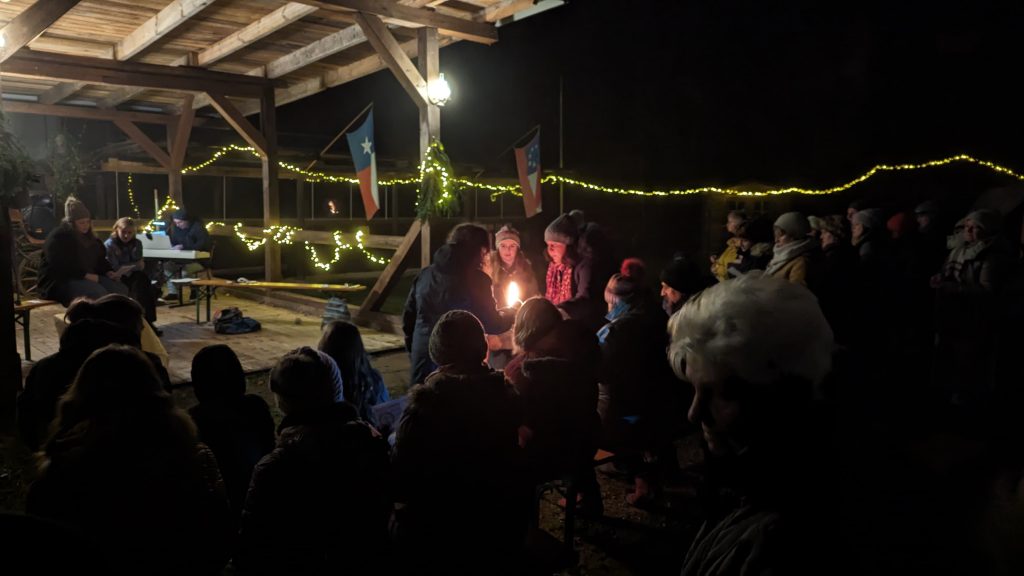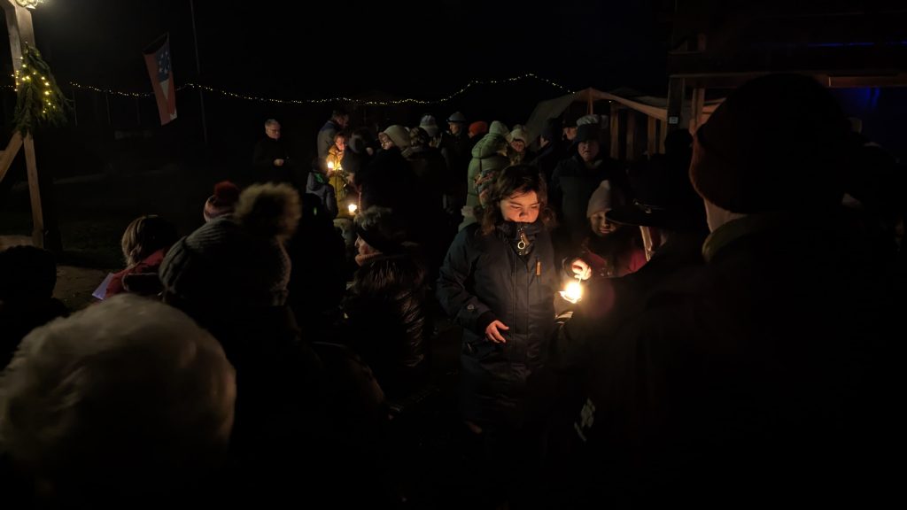 Die Pfandfinderinnengruppe mit ihrer Leiterin Sophie Heier machten sich bei der Andacht auf die Suche nach Frieden und fand diesen letztlich im Kind von Betlehem. Auch in den Gebeten der Geistlichen Pater Sijo (Katzdorf), Pfarrvikar Paschal (Leonberg), Dekan Michael Hirmer und Ruhendstandspfarrer Thomas Senft (beide Burglengenfeld) wurden für den weltweiten aber auch den persönlichen Frieden gebetet.