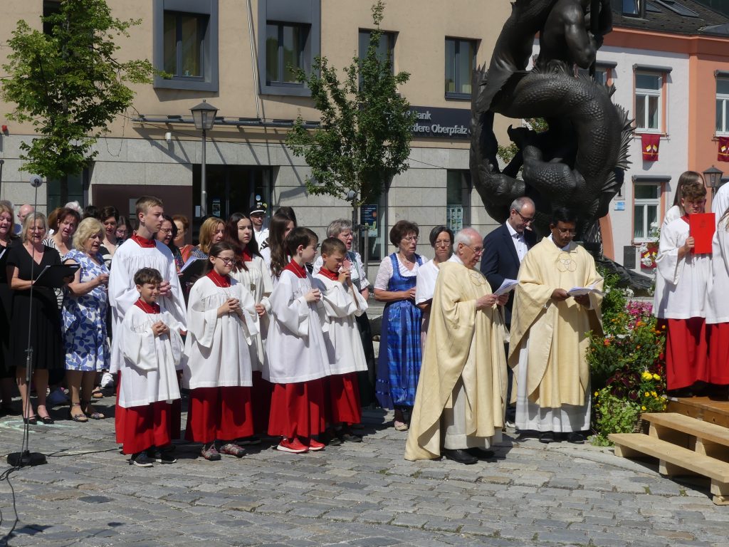 Gebet und eucharistischer Segen am Stadtplatzbrunnen