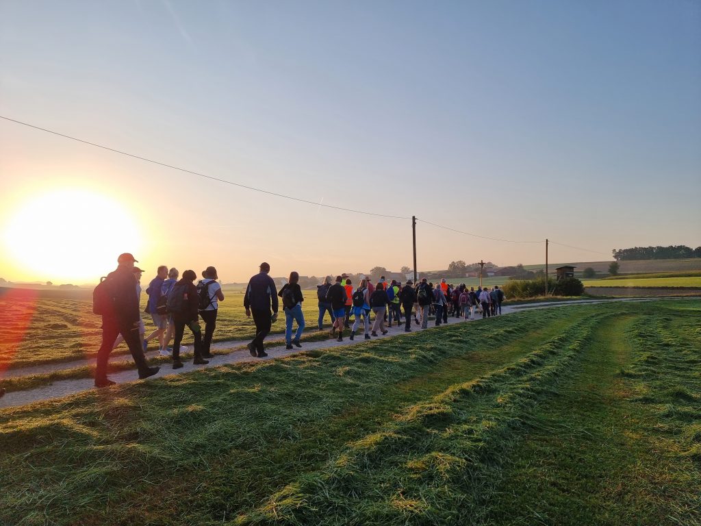 In Gemeinschaft mit Gott auf dem Weg bei Sonnenaufgang… zur Wallfahrtskirche Mariaort. Kirche als pilgerndes Volk Gottes!