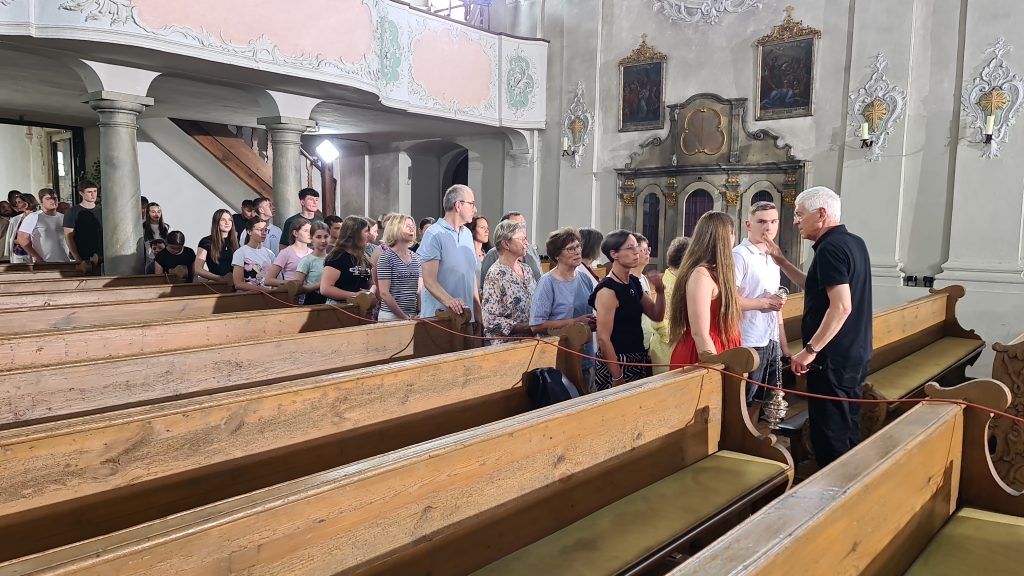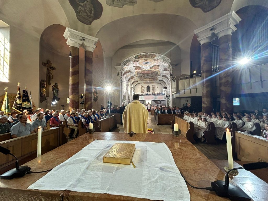 „Christus wandelt unsere Welt!“, lautete die Überschrift über die Predigt von Pfarrer Michael Hirmer. Denn „Jesus biete uns seine Wandlung an, welche nicht nur Brot und Wein in der heiligen Messe betrifft, sondern die Herzen der Menschen ergreifen und von dort aus Kreise in die Welt ziehen will.“