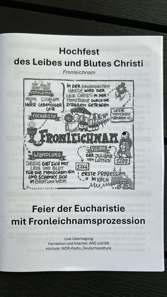 Ich habe heute den wunderschönen Fronleichnams Gottesdienst im Fernseher mitgebetet. Es war ein ganz eingehendes Erlebnis, euch alle live zu sehen. Die Predigt hat mich sehr berührt, danke Pfarrer Hirmer.