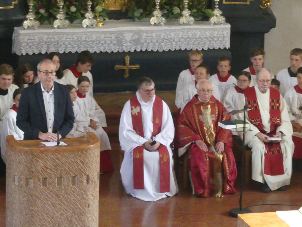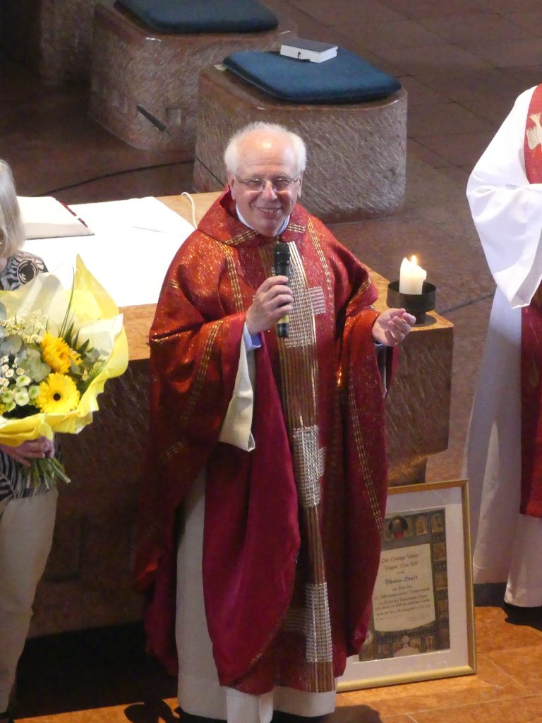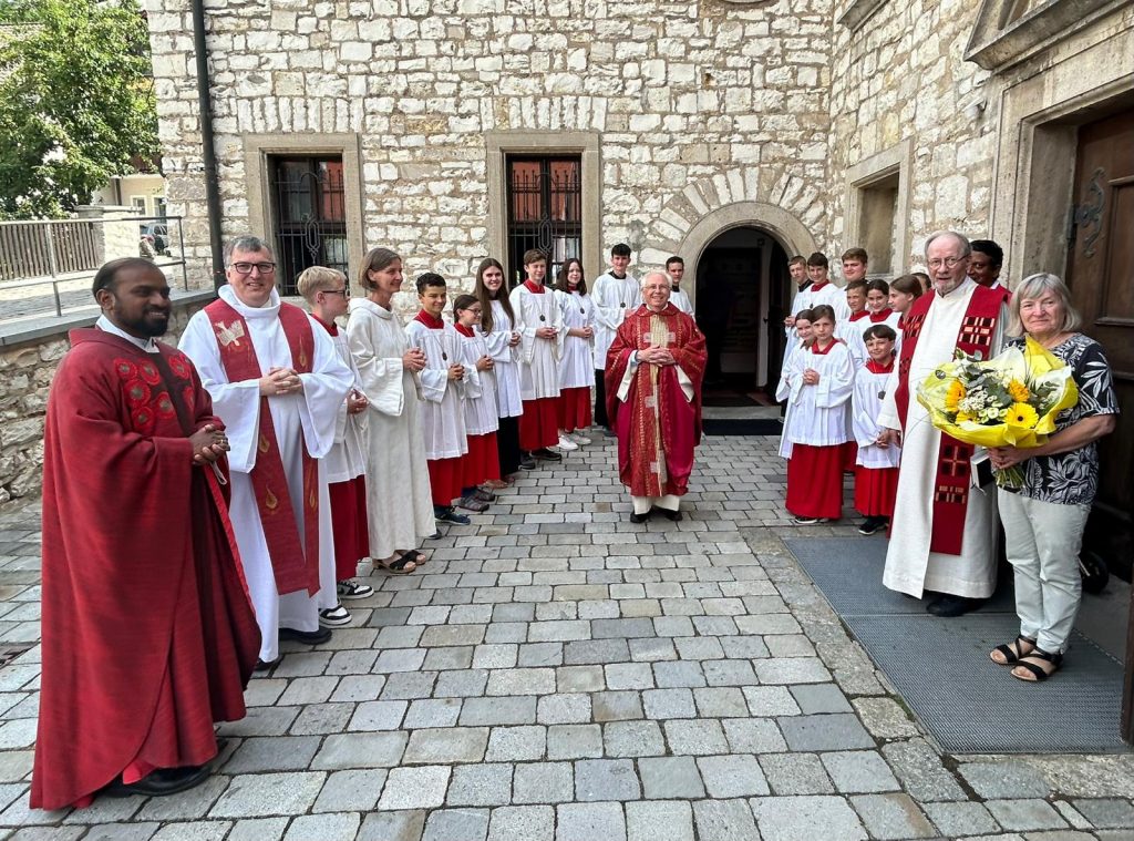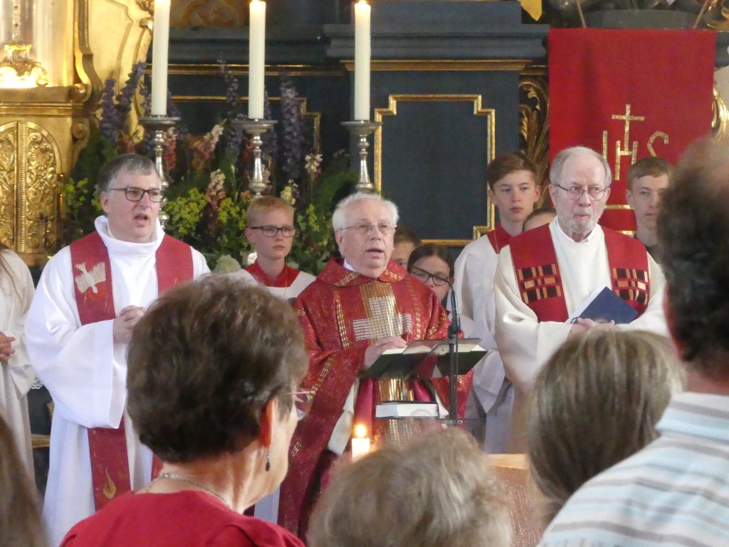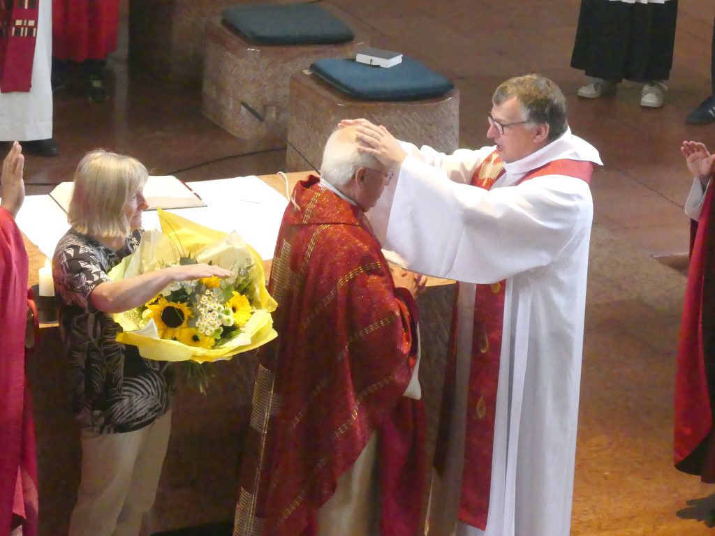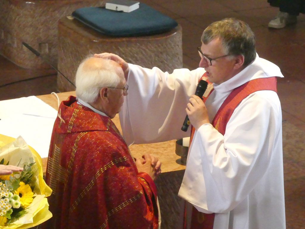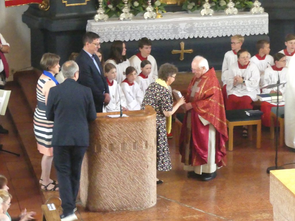 Mit einem feierlichen Dankgottesdienst beging die Stadtkirche Burglengenfeld das goldene Priesterjubiläum von Pfarrer i.R. Thomas Senft. Der Festgottesdienst wurde durch die Nachwuchsgruppe der Vitus-Musikkapelle gestaltet. In seiner Predigt erinnerte Prof. Dr. Hubert Windisch, wie wichtig es ist, dass die Priester auch geistliche Geistliche sein müssen. Die Laudatio am Ende der Eucharistiefeier hielt PGR-Sprecher Markus Heider. Im Namen des Pastoralteams überreichte Dekan Michael Hirmer Blumen an Haushälterin Amalie Rupprecht, als Dankeschön für die jahrelange Unterstützung von Pfarrer Senft. Diesem wurde ein päpstlicher Segen überreicht, den Papst Leo XIV. kurz nach seinem Amtsantritt für den Jubelpriester spendete. In diesen Segen stimmte die ganze Gottesdienstgemeinde ein, als Dekan Hirmer Pfarrer Senft die Hänge auflegte.