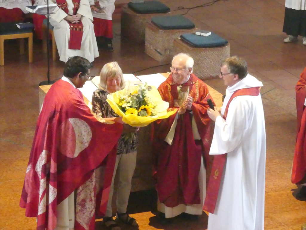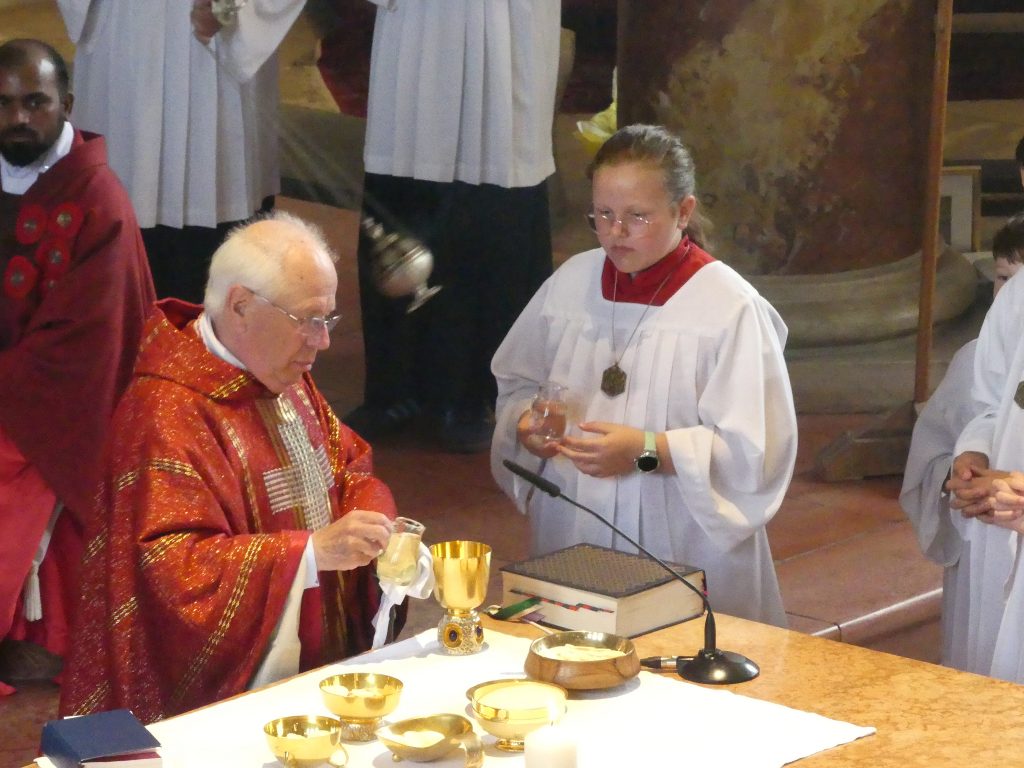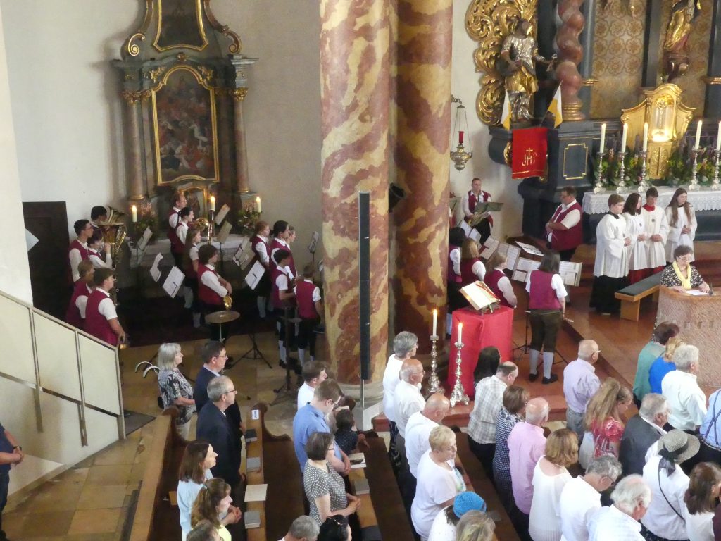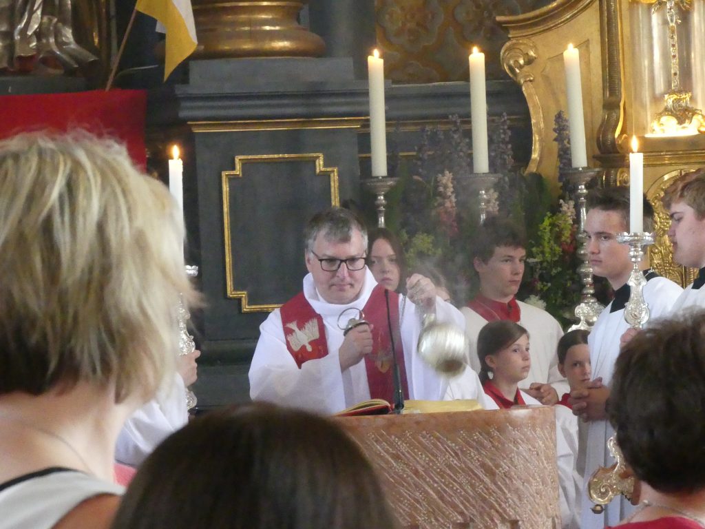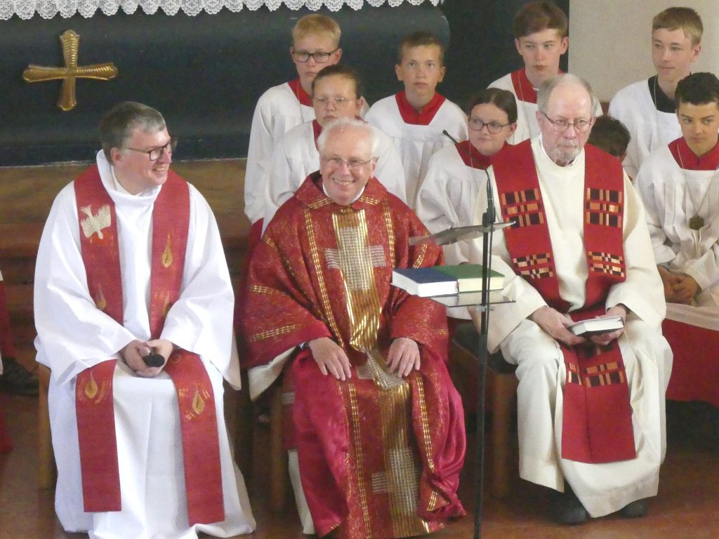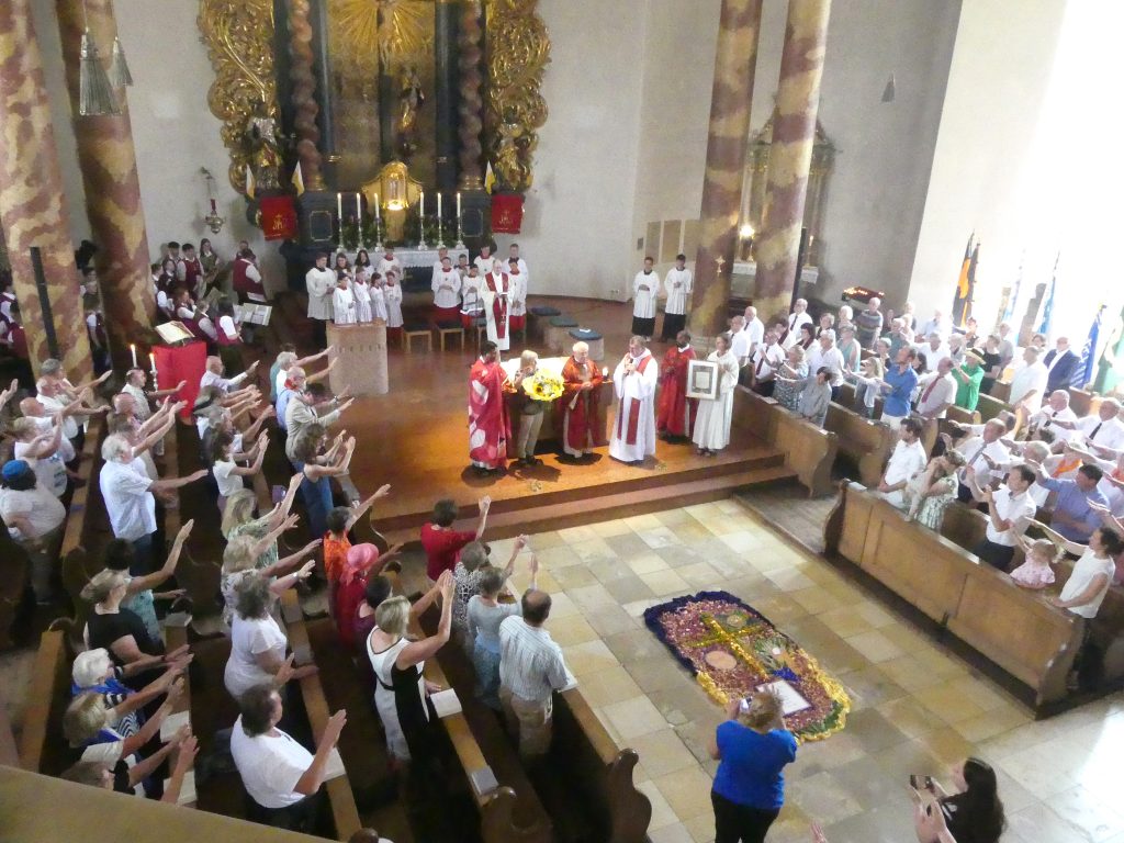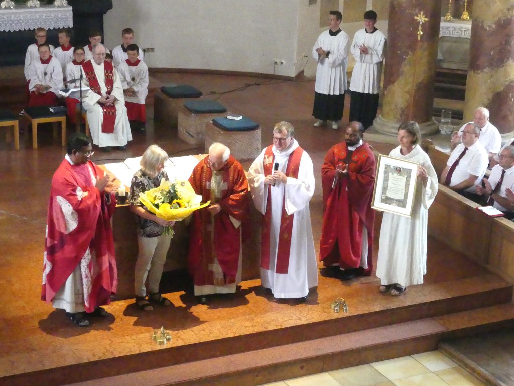 Mit einem feierlichen Dankgottesdienst beging die Stadtkirche Burglengenfeld das goldene Priesterjubiläum von Pfarrer i.R. Thomas Senft. Der Festgottesdienst wurde durch die Nachwuchsgruppe der Vitus-Musikkapelle gestaltet. In seiner Predigt erinnerte Prof. Dr. Hubert Windisch, wie wichtig es ist, dass die Priester auch geistliche Geistliche sein müssen. Die Laudatio am Ende der Eucharistiefeier hielt PGR-Sprecher Markus Heider. Im Namen des Pastoralteams überreichte Dekan Michael Hirmer Blumen an Haushälterin Amalie Rupprecht, als Dankeschön für die jahrelange Unterstützung von Pfarrer Senft. Diesem wurde ein päpstlicher Segen überreicht, den Papst Leo XIV. kurz nach seinem Amtsantritt für den Jubelpriester spendete. In diesen Segen stimmte die ganze Gottesdienstgemeinde ein, als Dekan Hirmer Pfarrer Senft die Hänge auflegte.