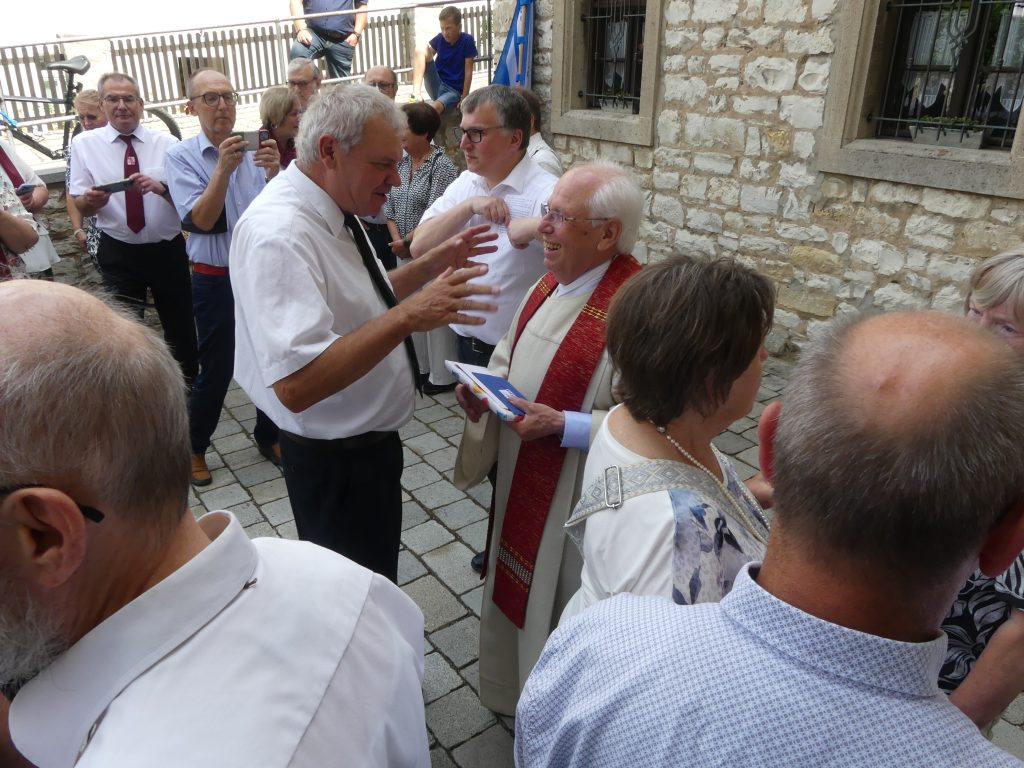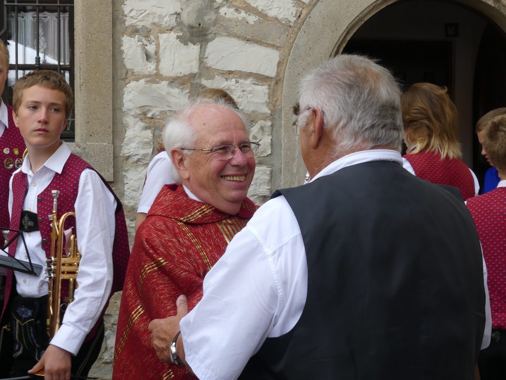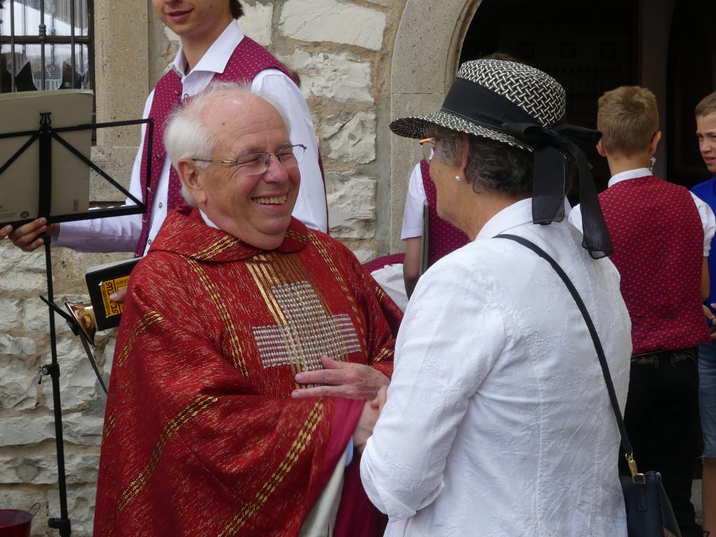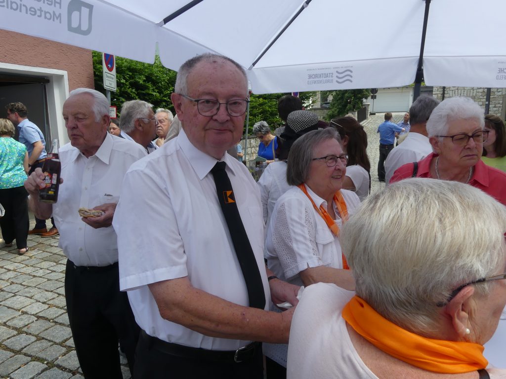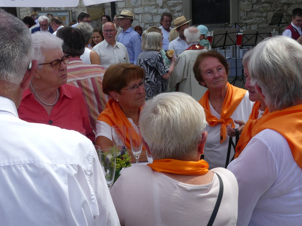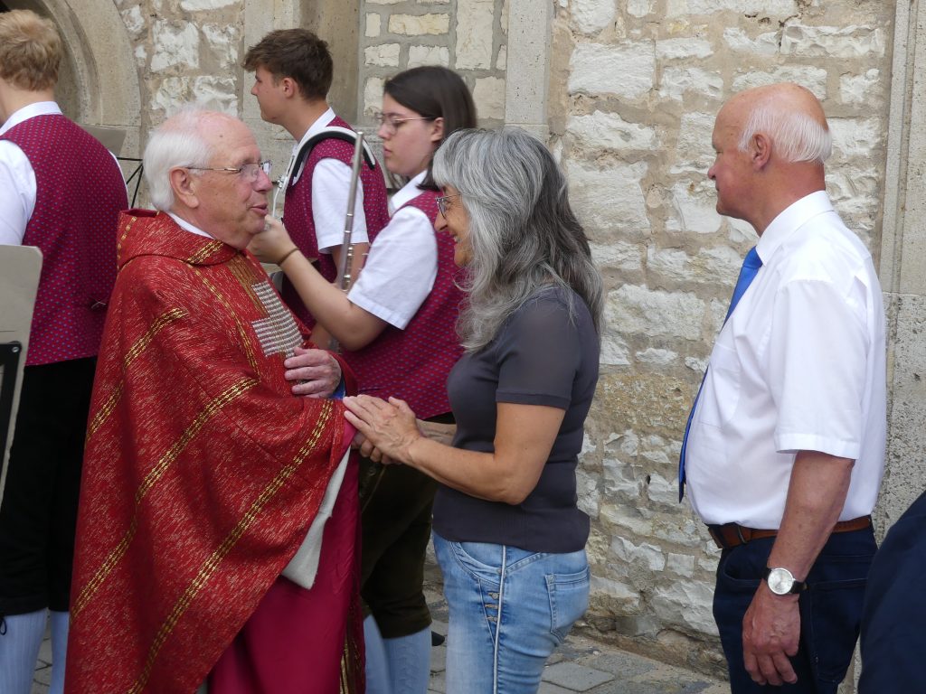 Nach dem Festgottesdienst warteten der Pfarrgemeinderaut und der Frauenbund mit einem Stehempfang vor der Vituskirche auf.