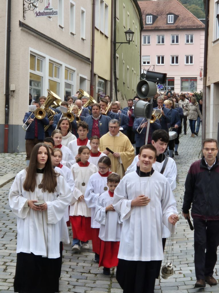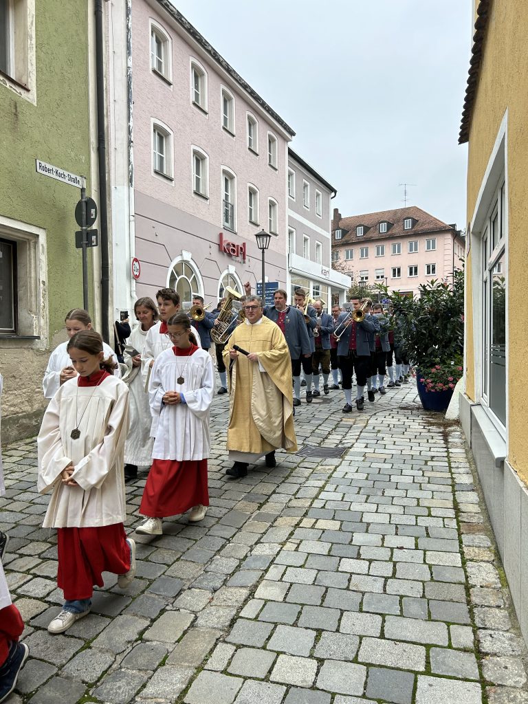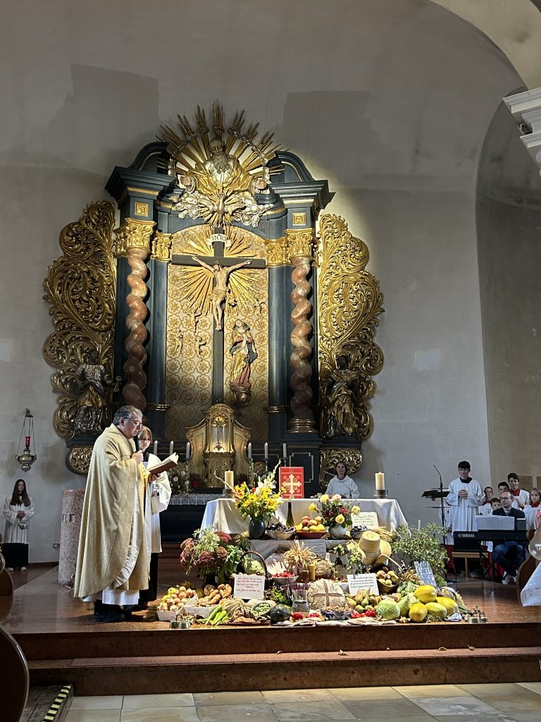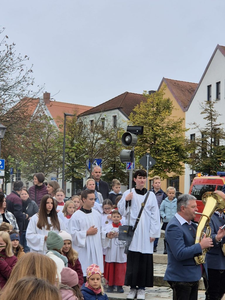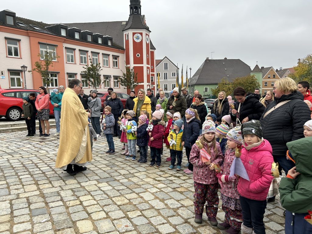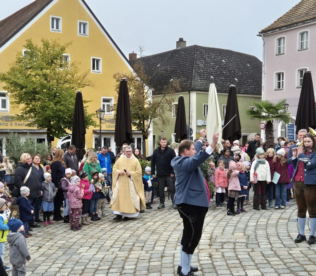 Zu Erntedankfest feierte die Stadtkirche Burglengenfeld einen feierlichen Festgottesdienst. Jung und Alt trafen sich am ersten Oktobersonntag am Markplatz und lauschten den Klängen der Musikkapelle St. Vitus. Dekan Michael Hirmer begrüßte vor allem die Kinder des Kindergartens Don Bosco und ihre Kindergärtnerinnen. In großer Prozession zog man zur Pfarrkirche. Dort sang der Kinderchor St. Vitus unter Leitung von Kirchenmusiker Hubert Zaindl.