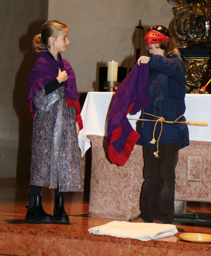 Zum Fest des Heiligen Martin gestalteten Erstkommunionkinder und Firmlinge den Gottesdienst in St. Vitus mit einem Spiel über die berühmte Mantelteilung. Dazu veranschaulichte Pastoralreferent Konrad Kraus mit einer Geschichte: Heilige sind Menschen, die durch ihr Leben das Licht und die Liebe Gottes scheinen lassen und dadurch die Welt ein wenig heller machen. Im Martinszug folgten nach dem Gottesdienst viele Kinder mit ihren Laternen Martin zu Pferde und trugen so das Licht hinaus auf die Straßen von Burglengenfeld.