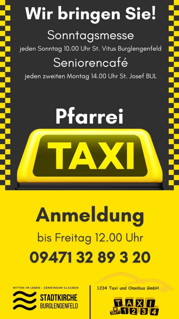 Die Stadtkirche organisiert Ihnen ein Taxi der Firma Ehrenreich. Sie werden von zuhause an der Gartentür abgeholt und danach wieder zurück gefahren. Für Menschen, die nicht mehr so gut gehen oder selbst fahren können, ist der Service kostenfrei.