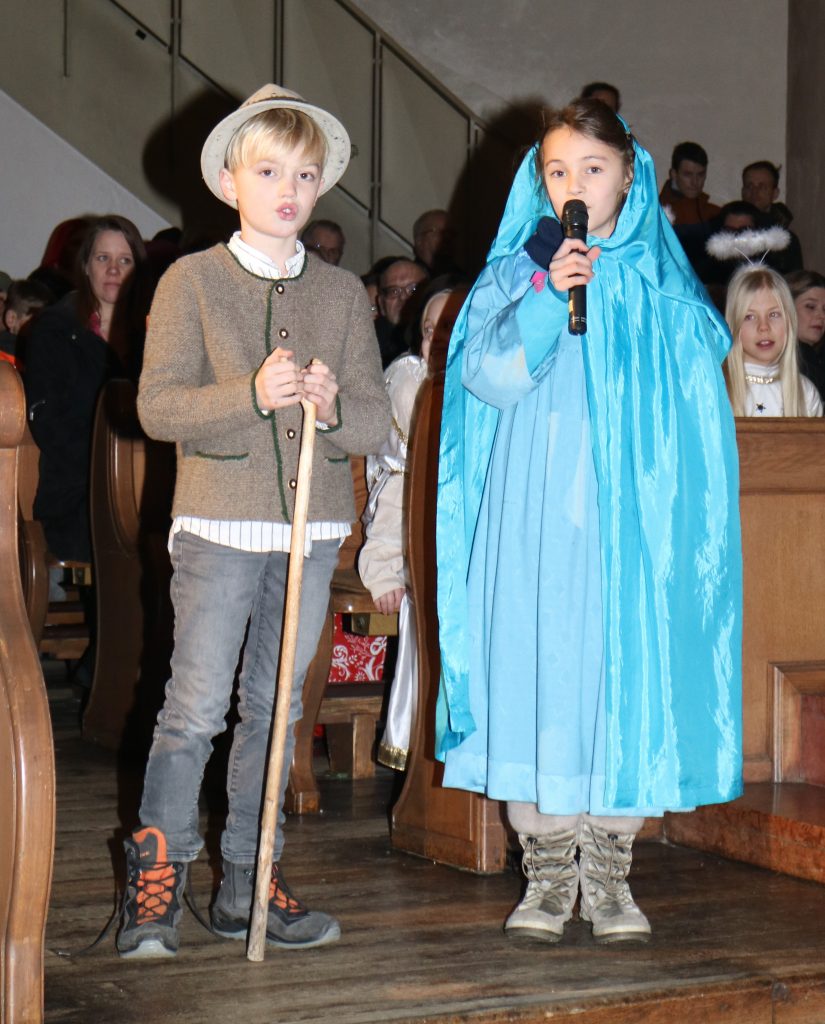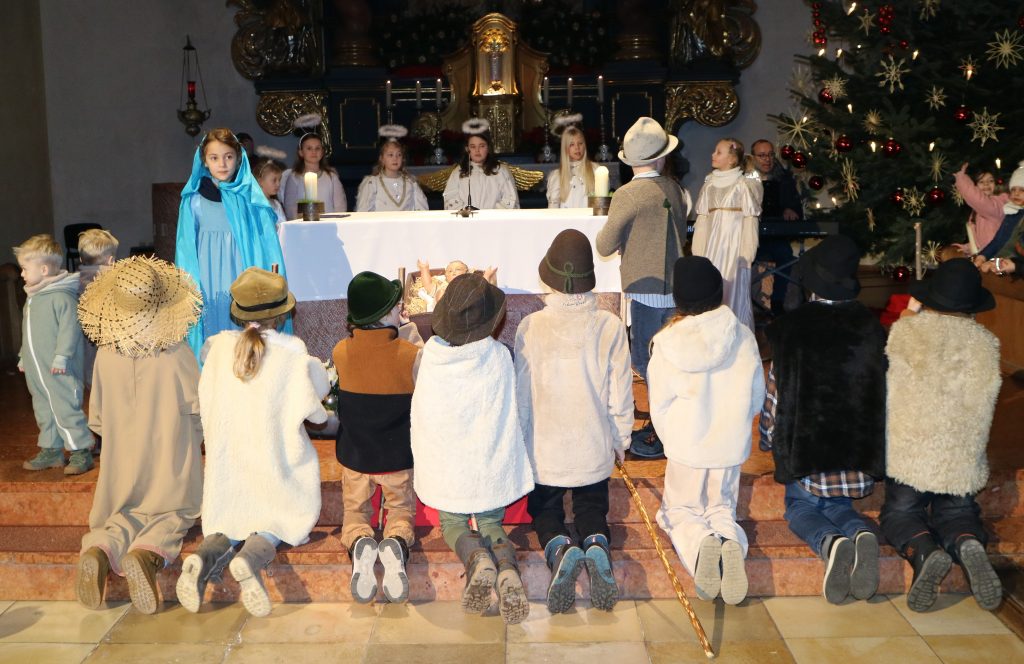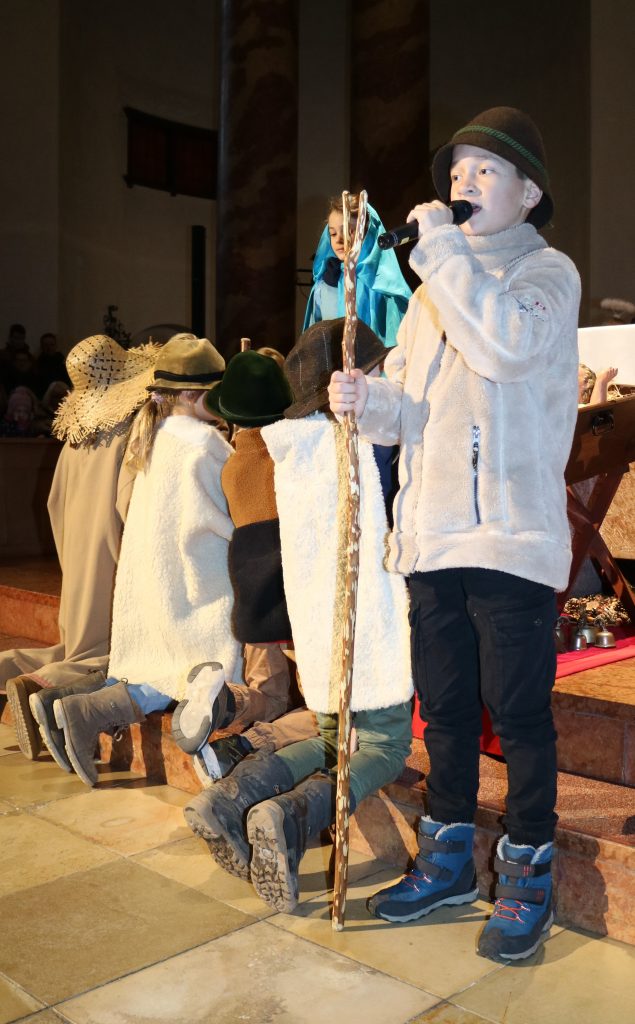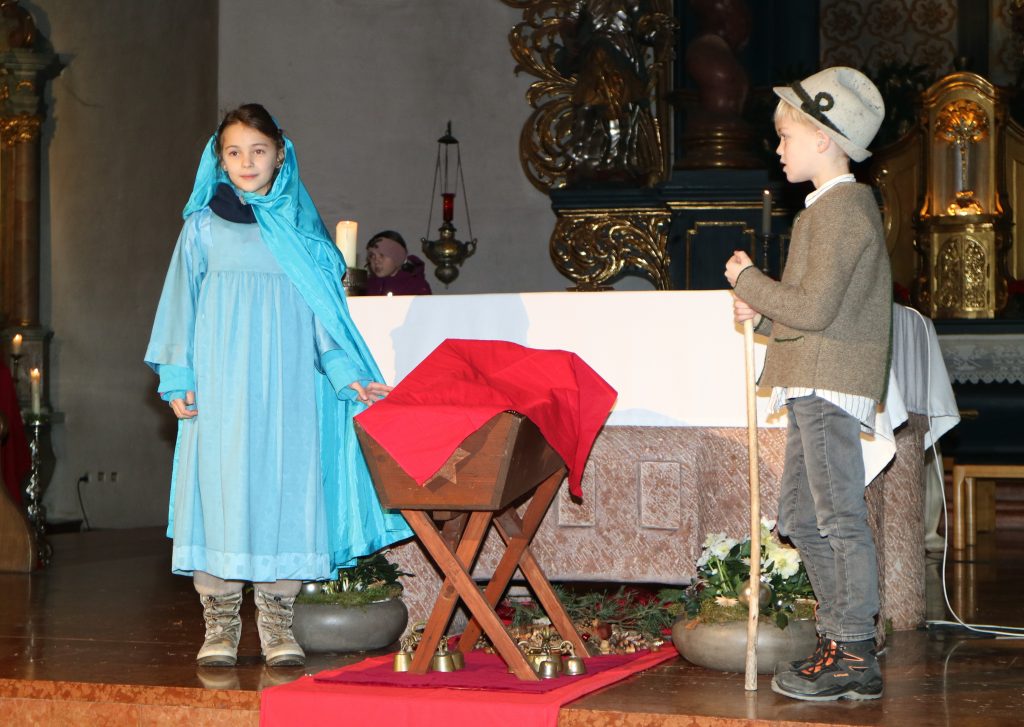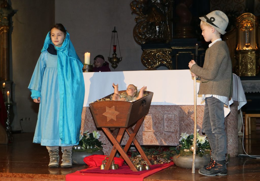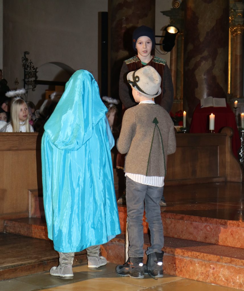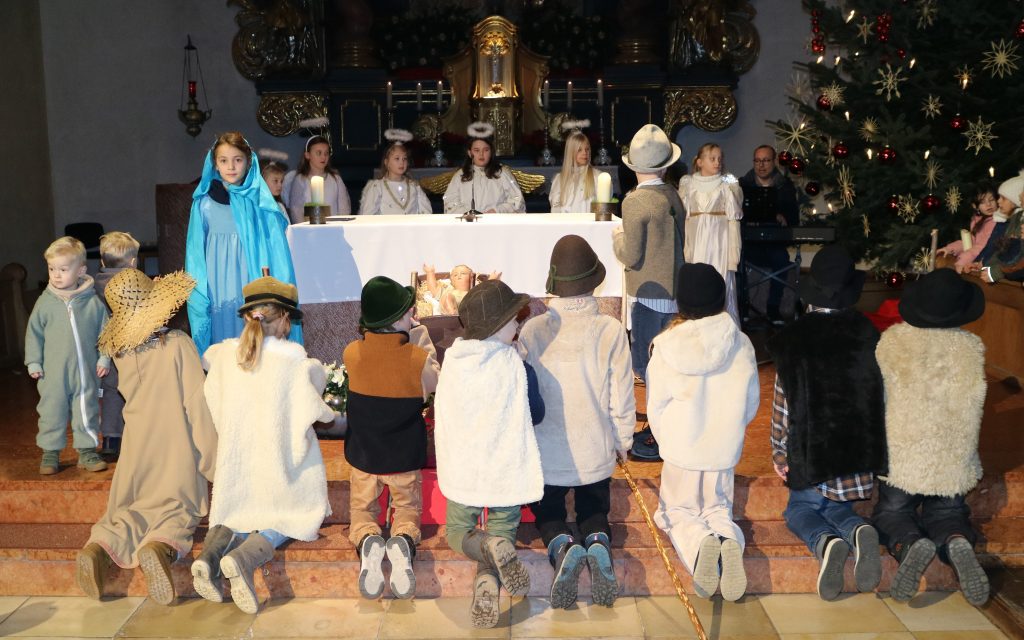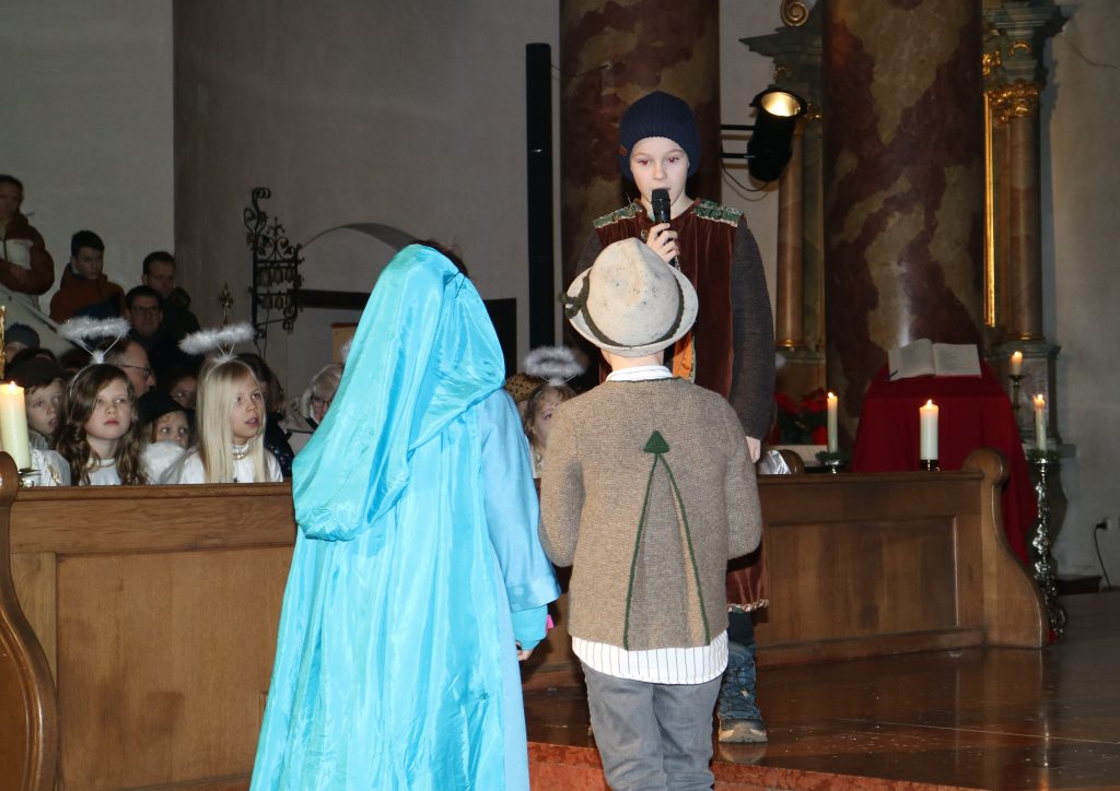 Die Andacht zum Krippenspiel in der Vituskirche richtete sich an Kinder der Grundschule. Vorbereitet wurde die Feier durch Pastoralreferent Konrad Kraus und musikalisch begleitet durch die Kinderchöre St. Vitus unter Leitung von Kirchenmusiker Hubert Zaindl. Die Erstkommunionkinder führten das Krippenspiel auf.