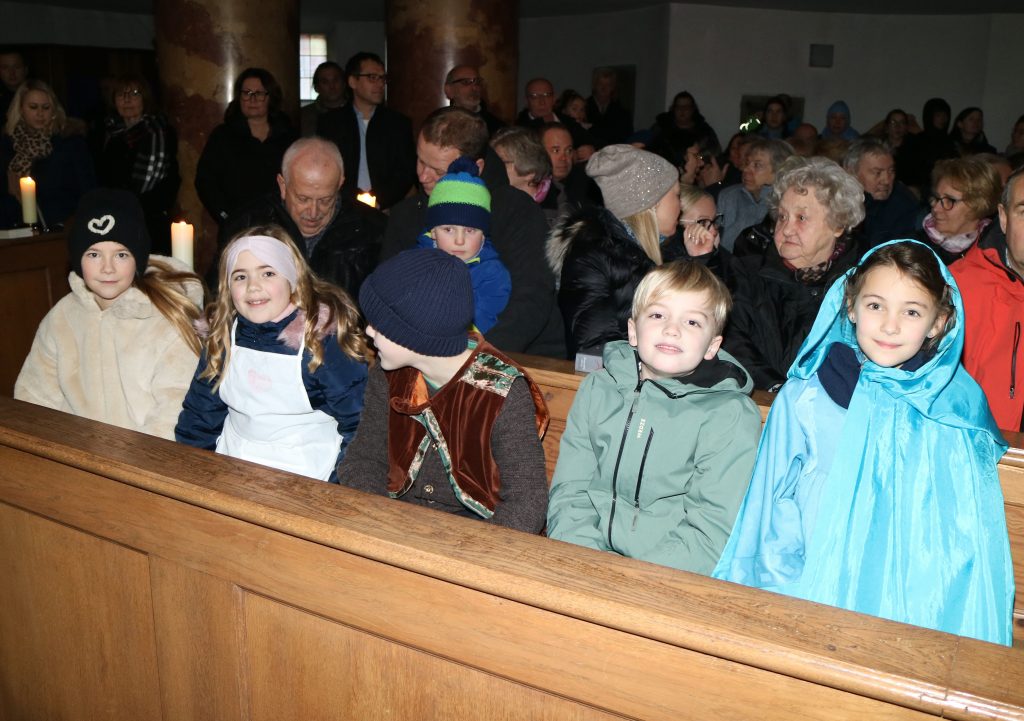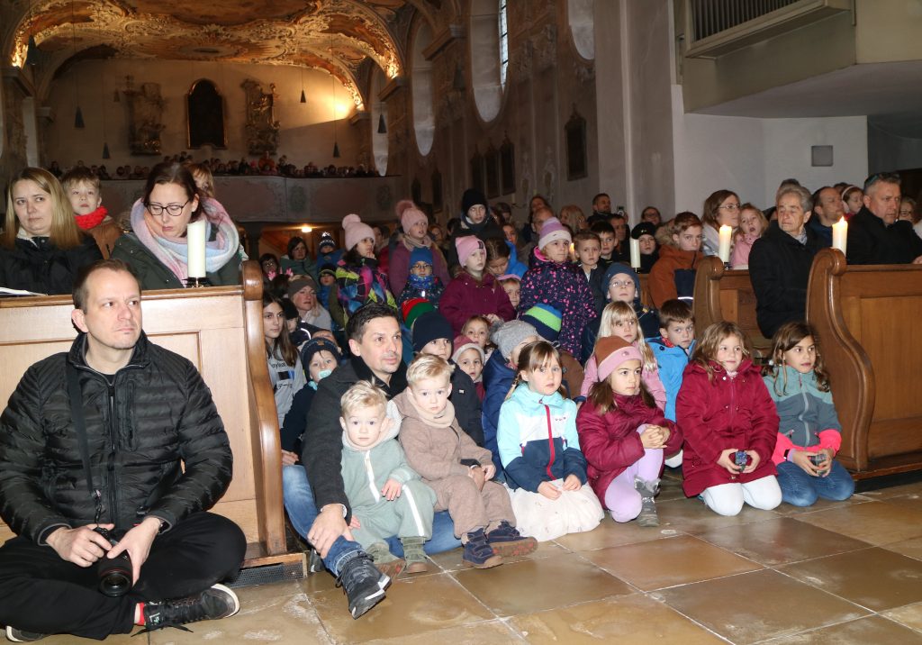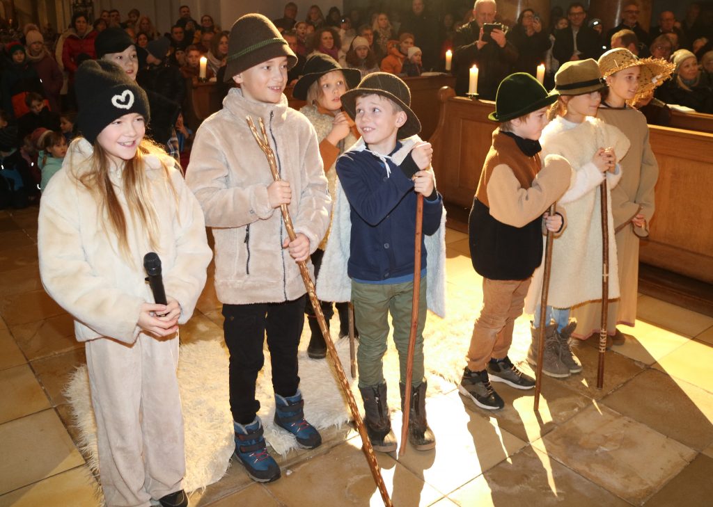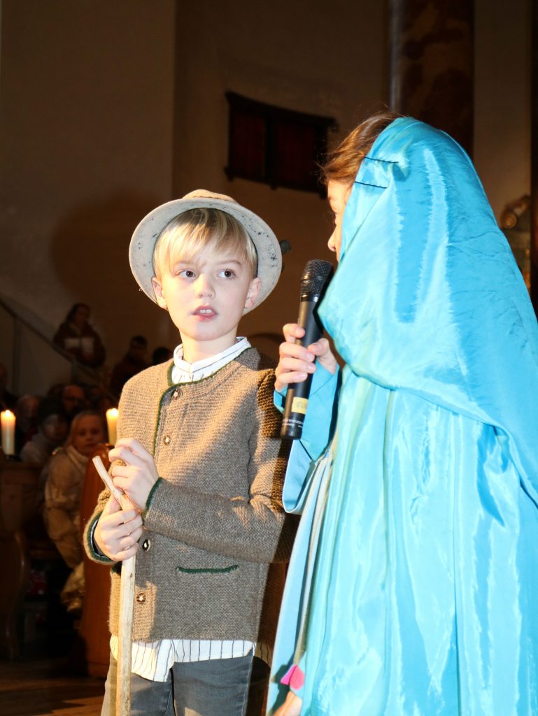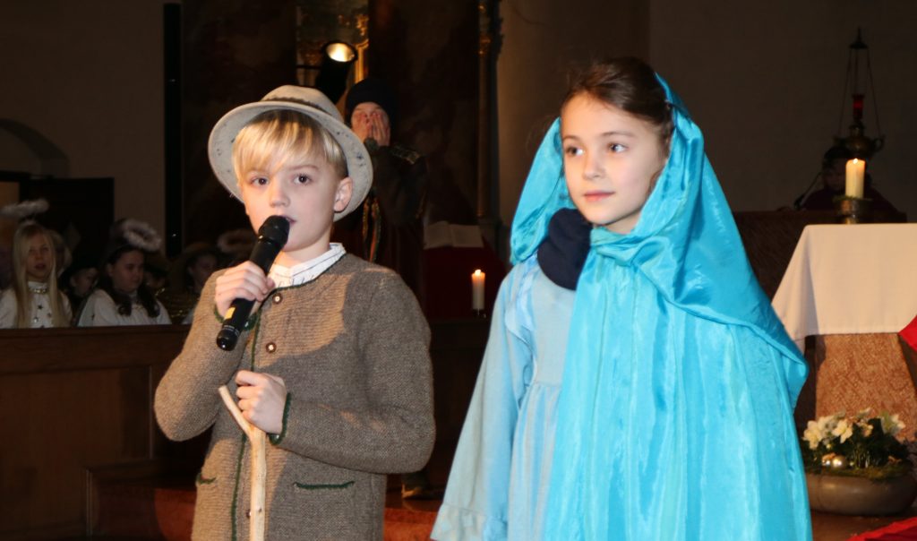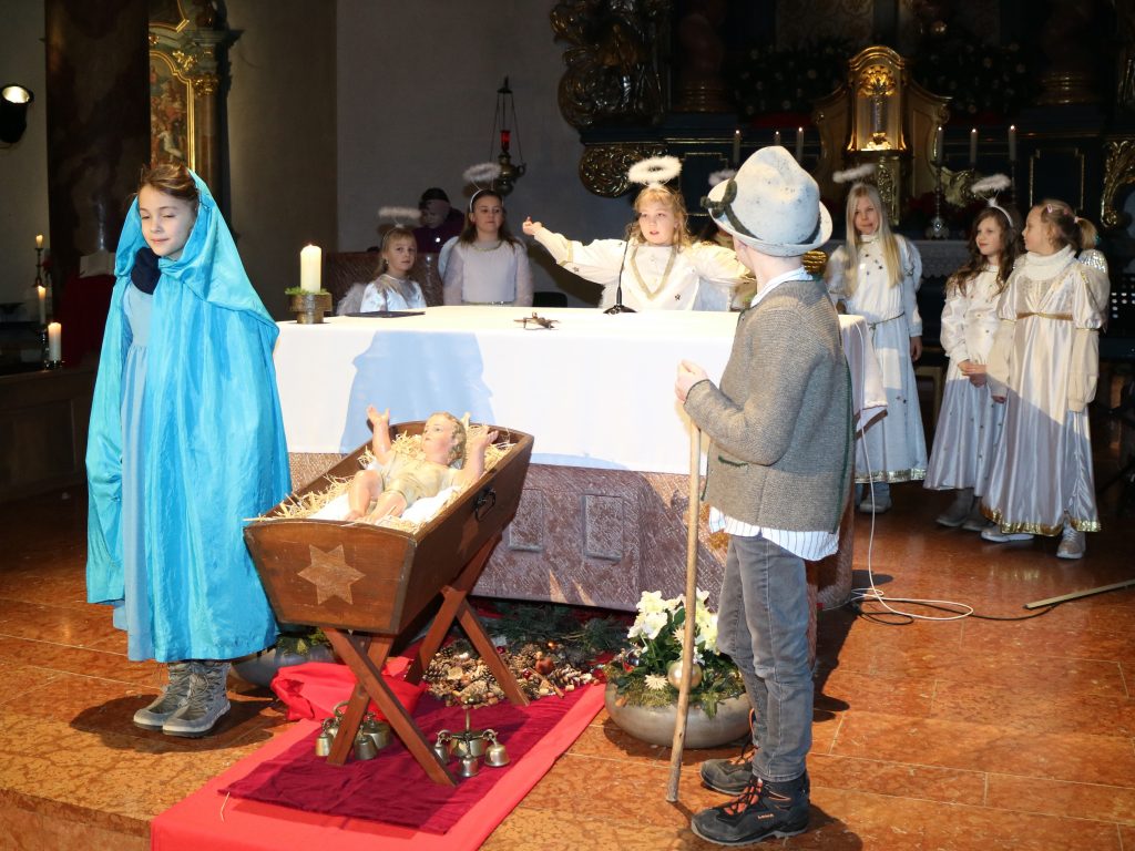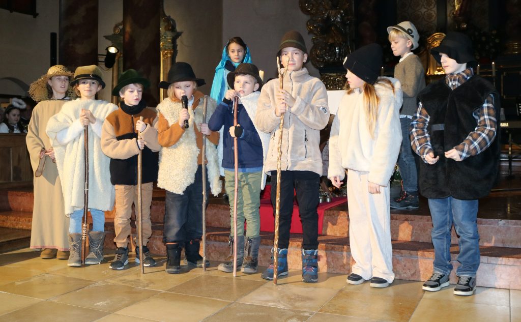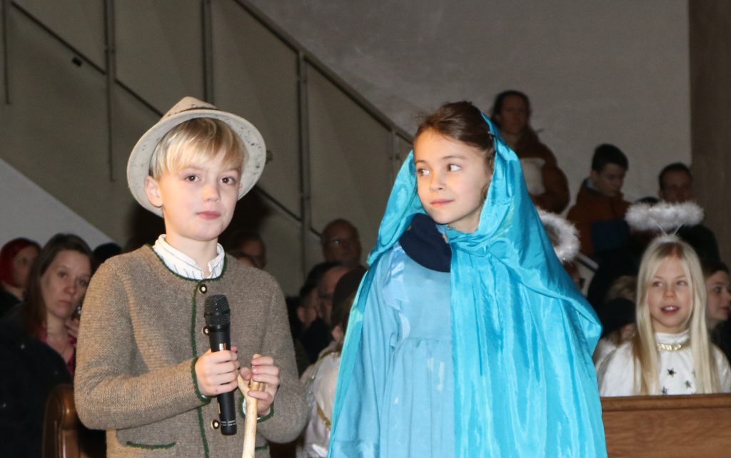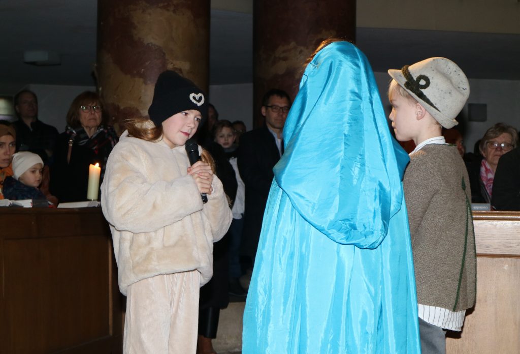 Die Andacht zum Krippenspiel in der Vituskirche richtete sich an Kinder der Grundschule. Vorbereitet wurde die Feier durch Pastoralreferent Konrad Kraus und musikalisch begleitet durch die Kinderchöre St. Vitus unter Leitung von Kirchenmusiker Hubert Zaindl. Die Erstkommunionkinder führten das Krippenspiel auf.