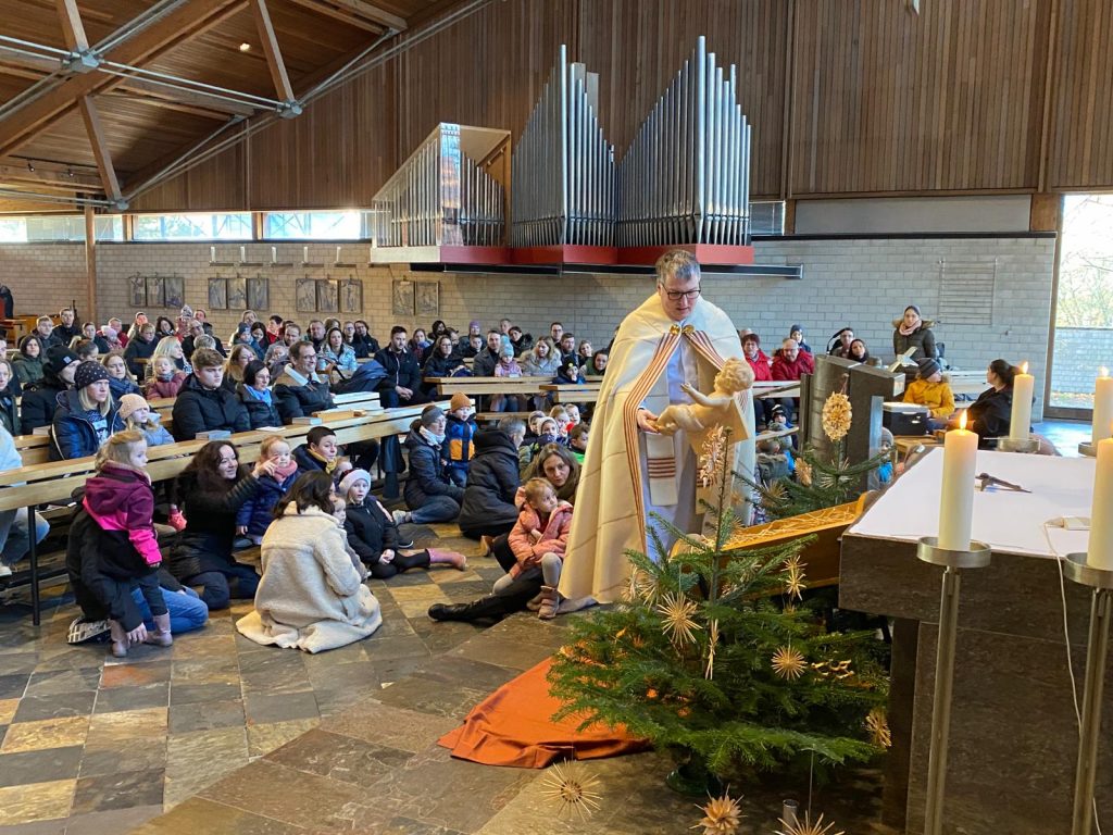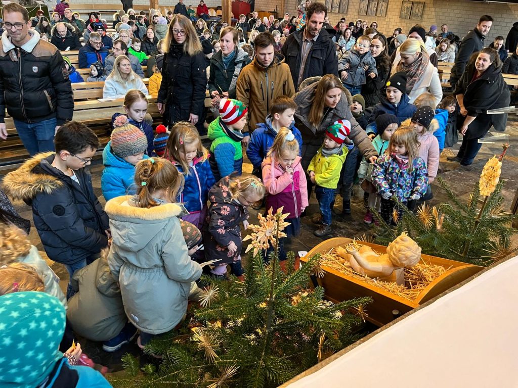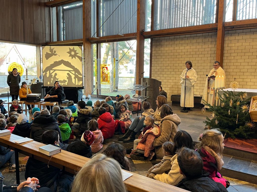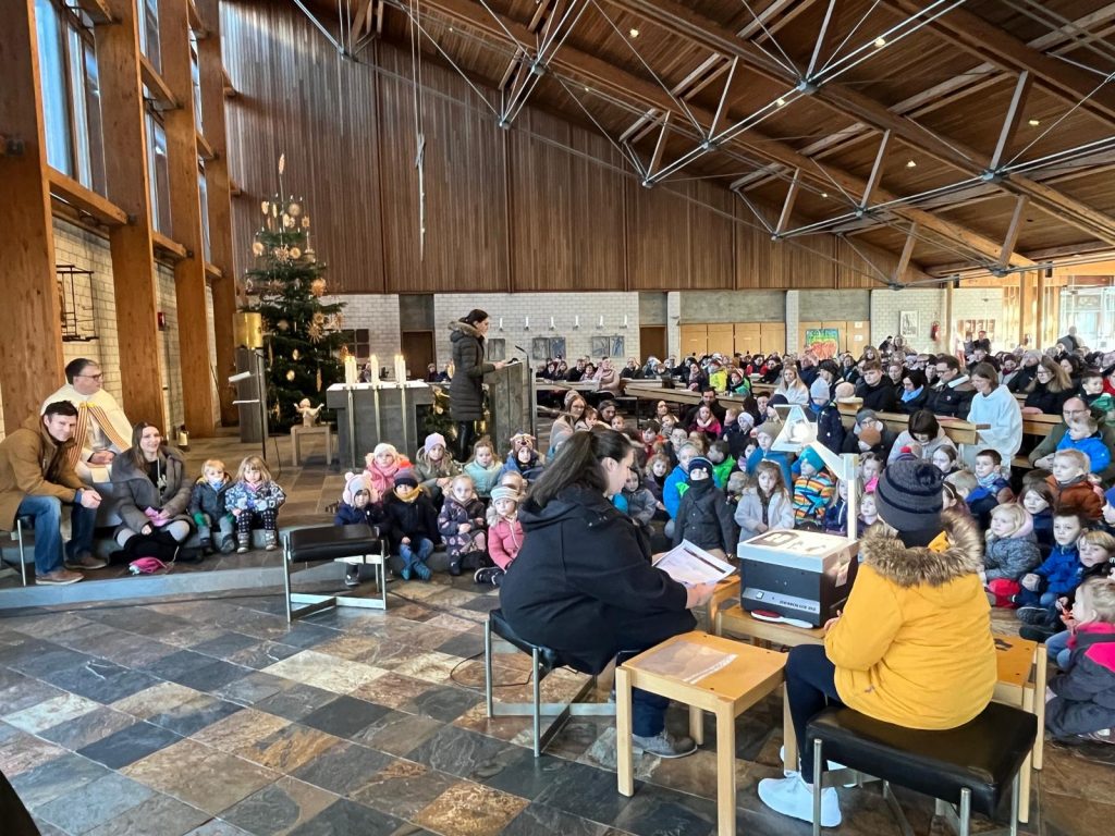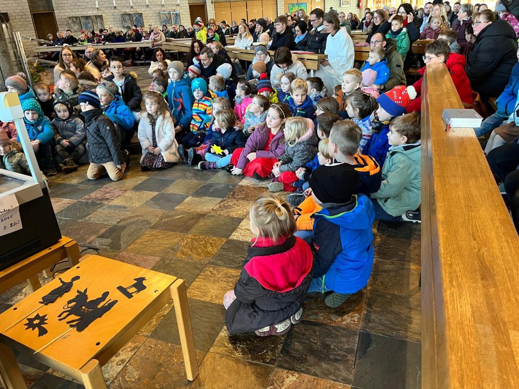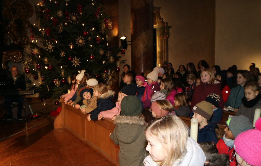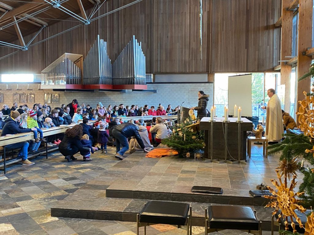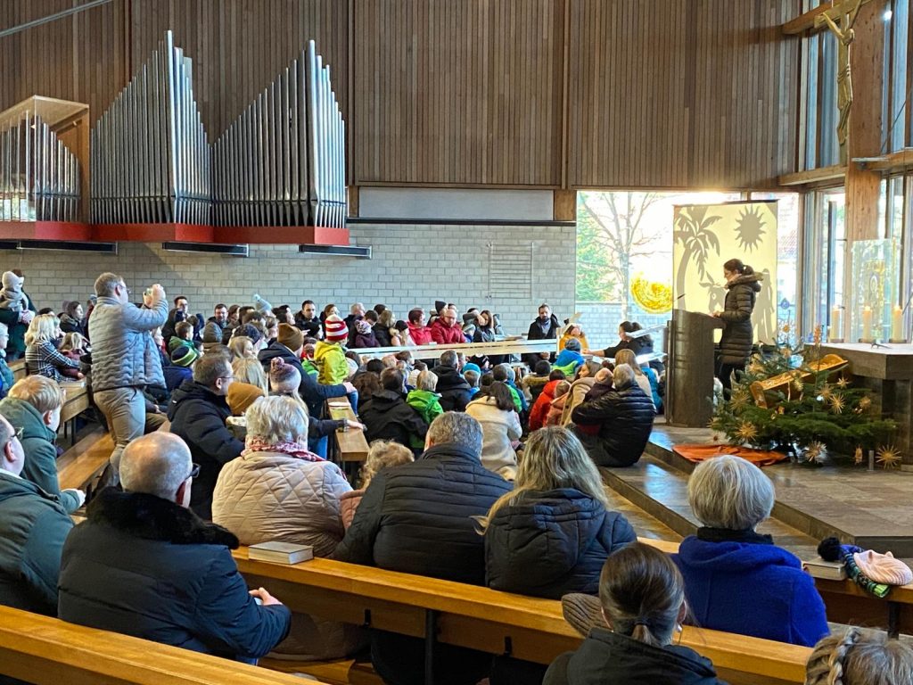 Die Andacht zum Krippenspiel in der Vituskirche richtete sich an Kinder der Grundschule. Vorbereitet wurde die Feier durch Pastoralreferent Konrad Kraus und musikalisch begleitet durch die Kinderchöre St. Vitus unter Leitung von Kirchenmusiker Hubert Zaindl. Die Erstkommunionkinder führten das Krippenspiel auf.