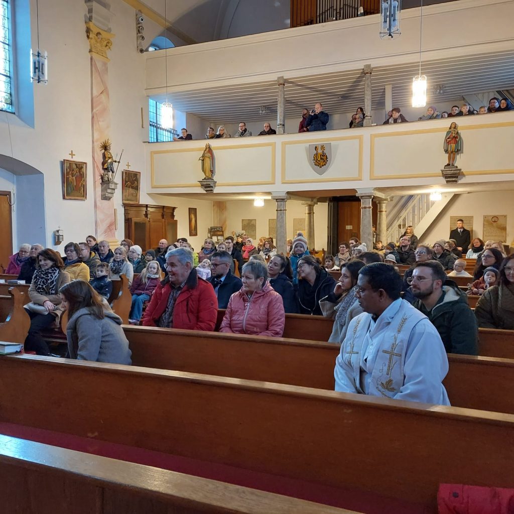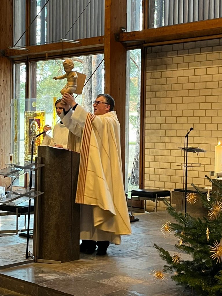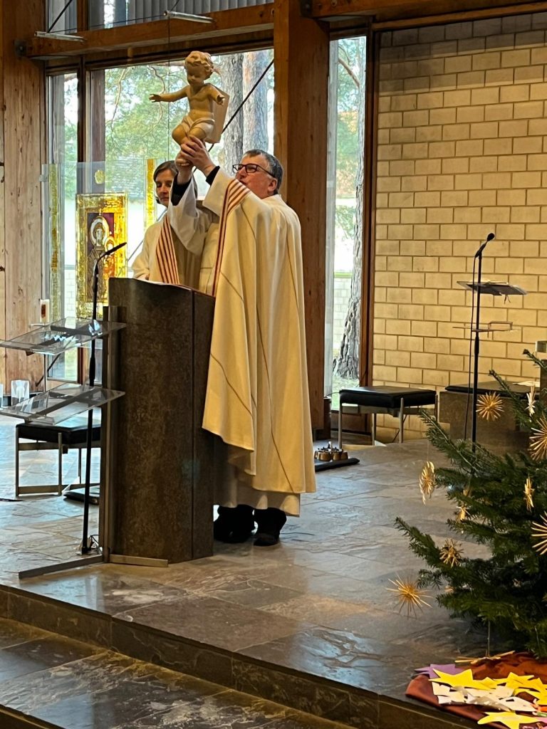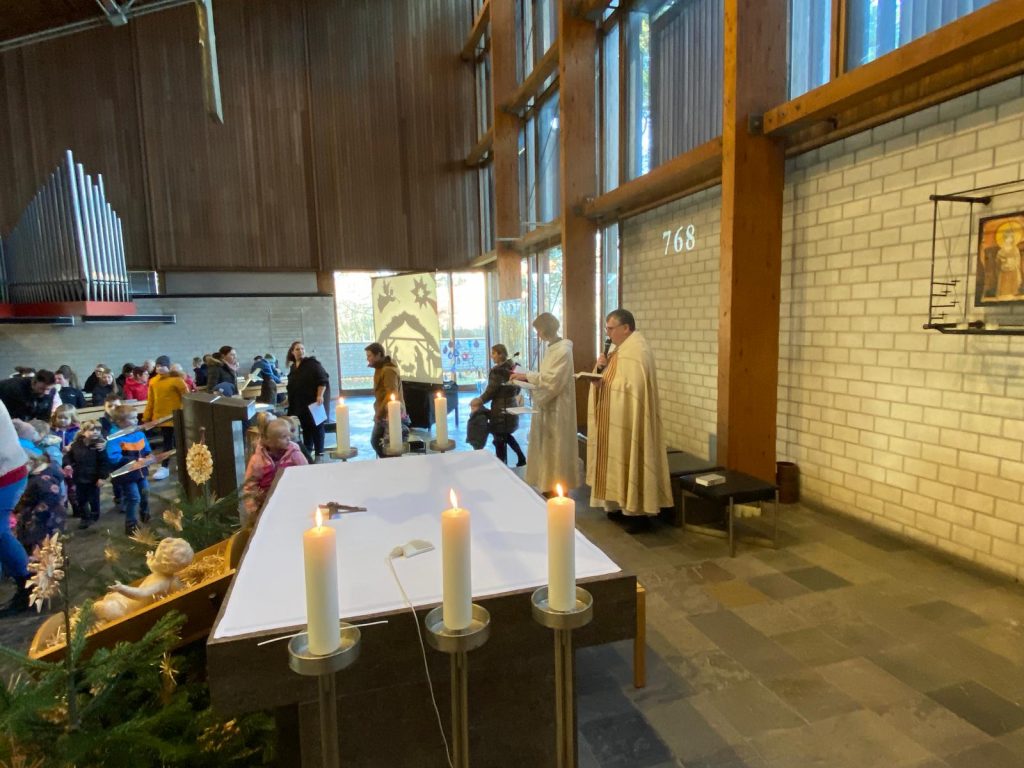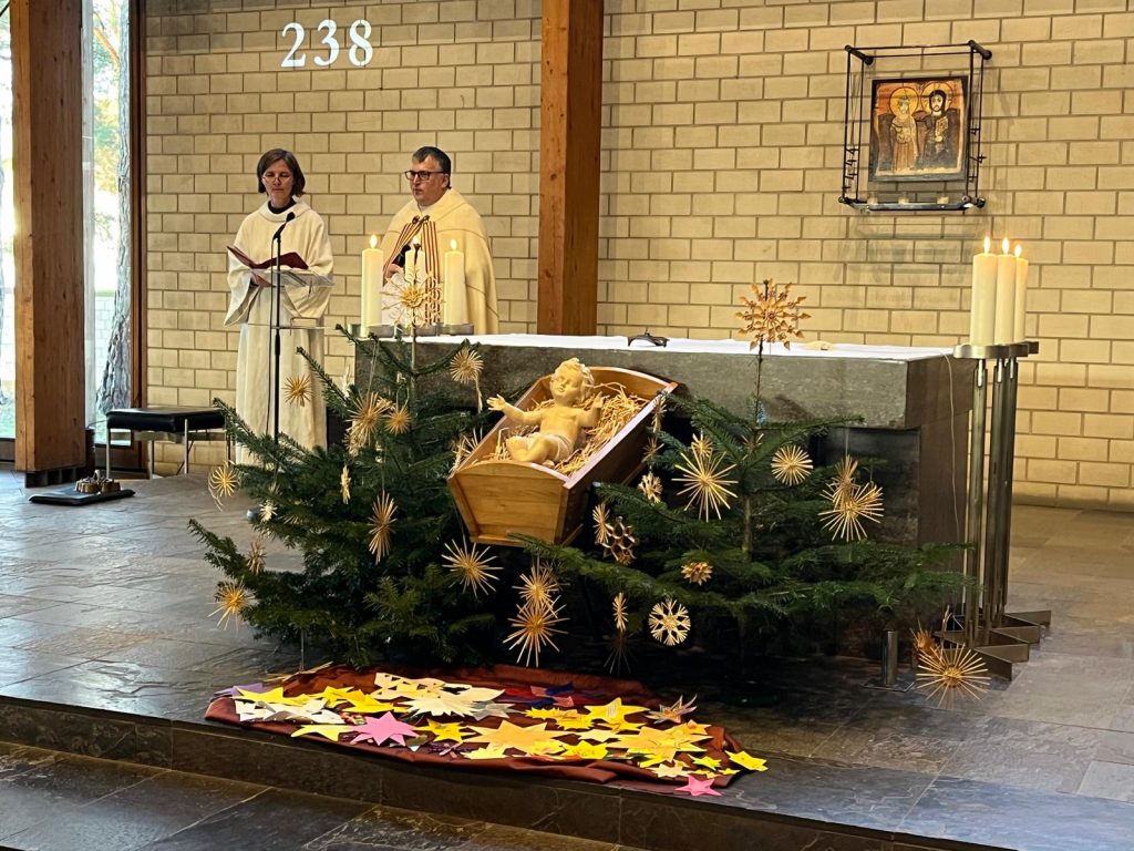 Pfarrvikar Kumar leitete die Andacht mit Krippenspiel in Dietldorf. Dieses wurde vorbereitet durch Christine Kellner.